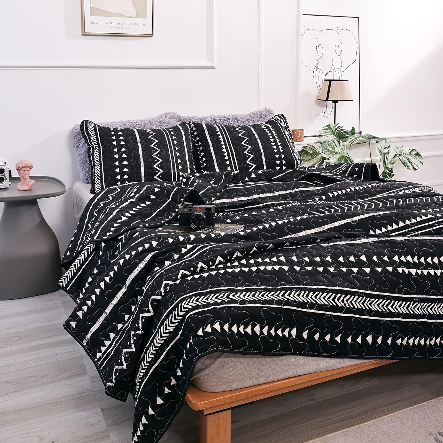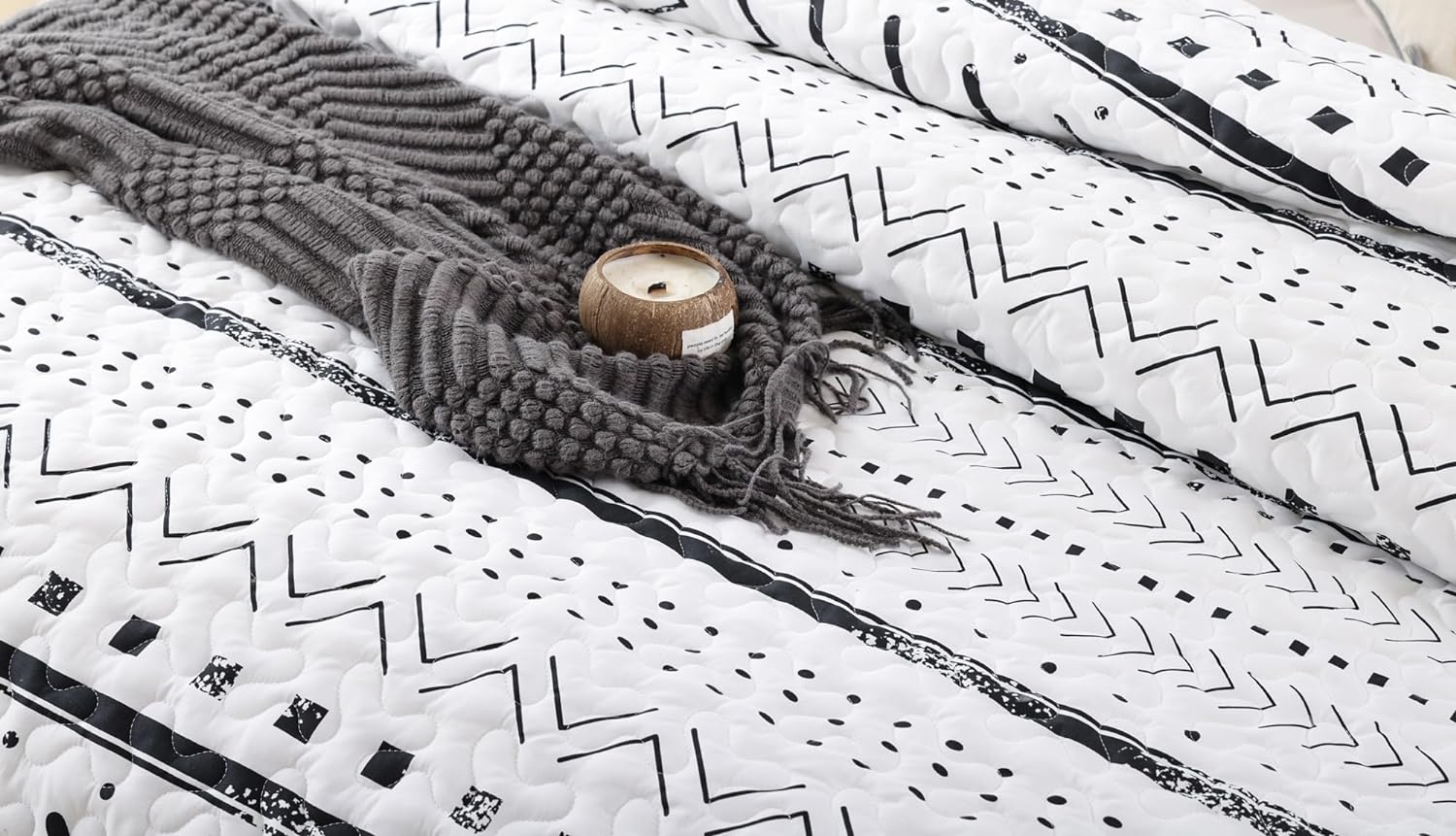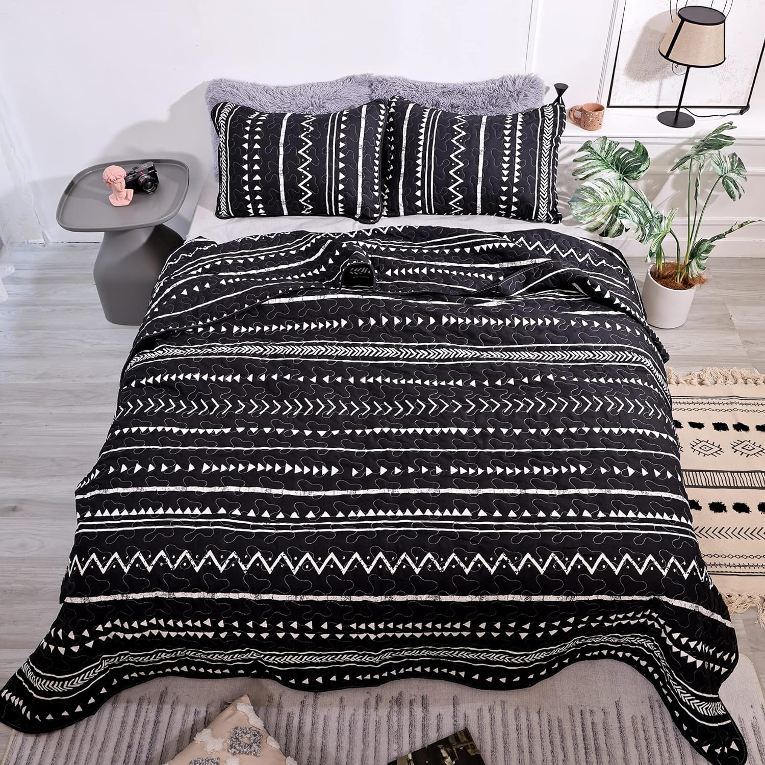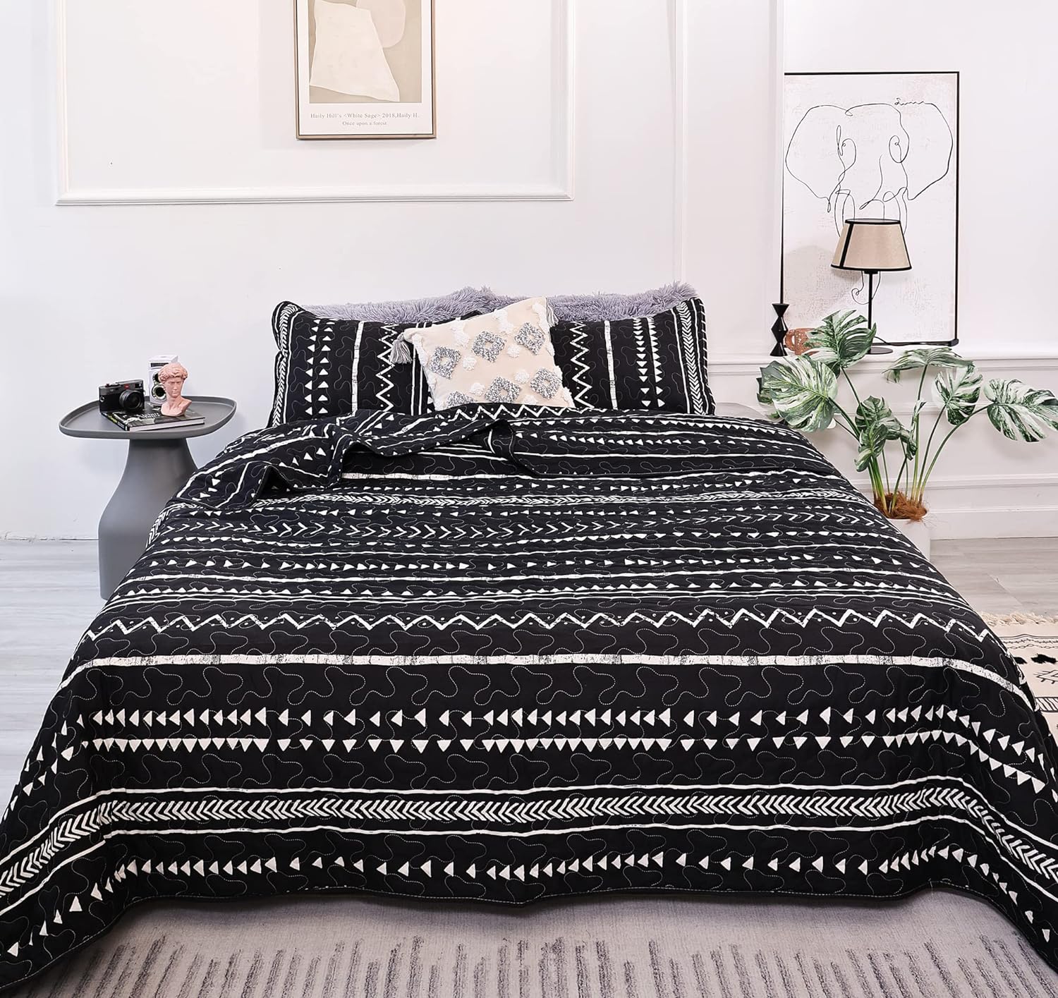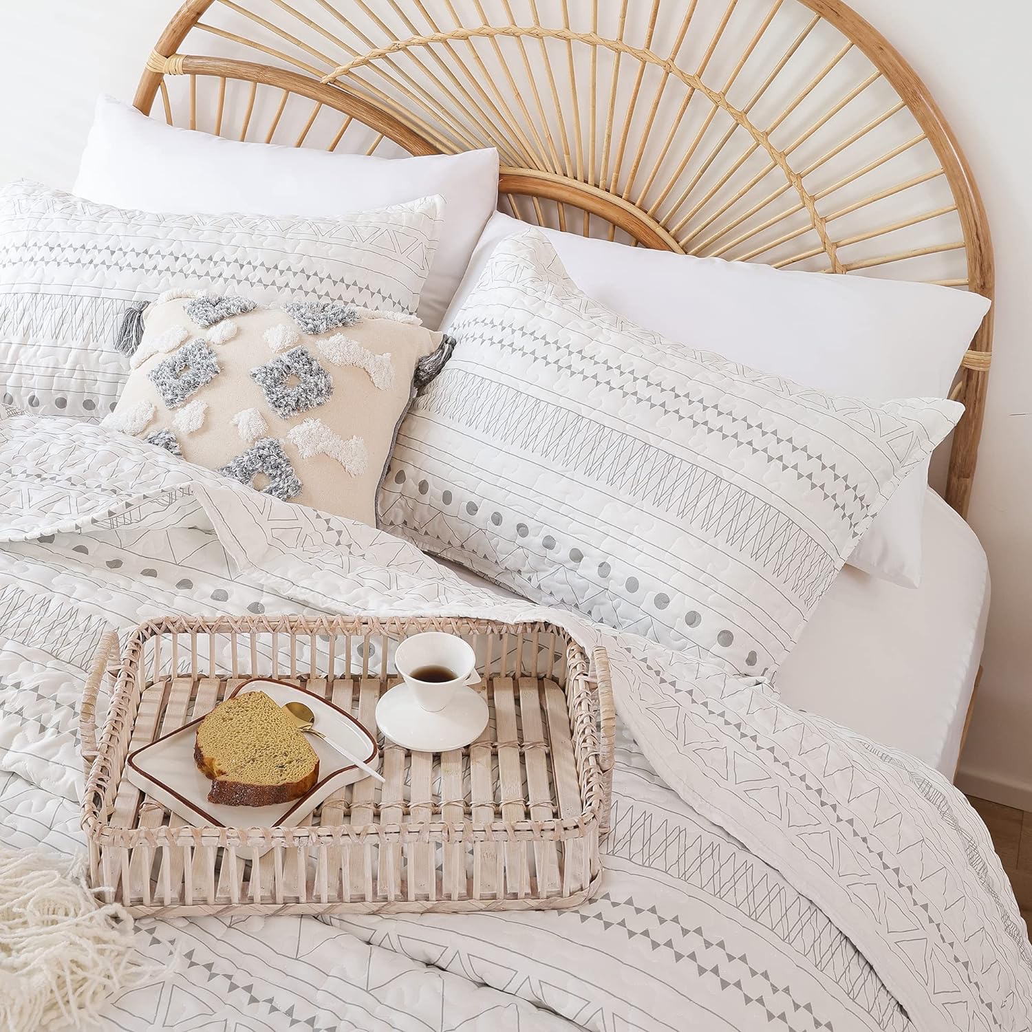 - UNIQUE PATTERN:The quilts queen size design with boho style featuring white geometric printed and multiple elements which perfectly blends fashion and abstract art,add an extra layer of modern style to match your room décor and brighten your rooms,perfect as a great gift idea for men and women at special festival.
