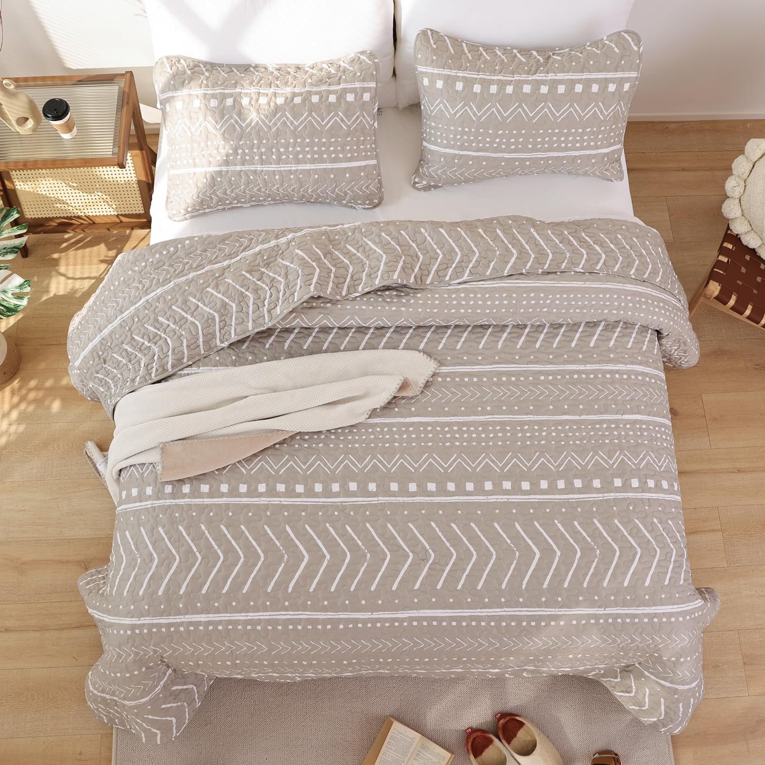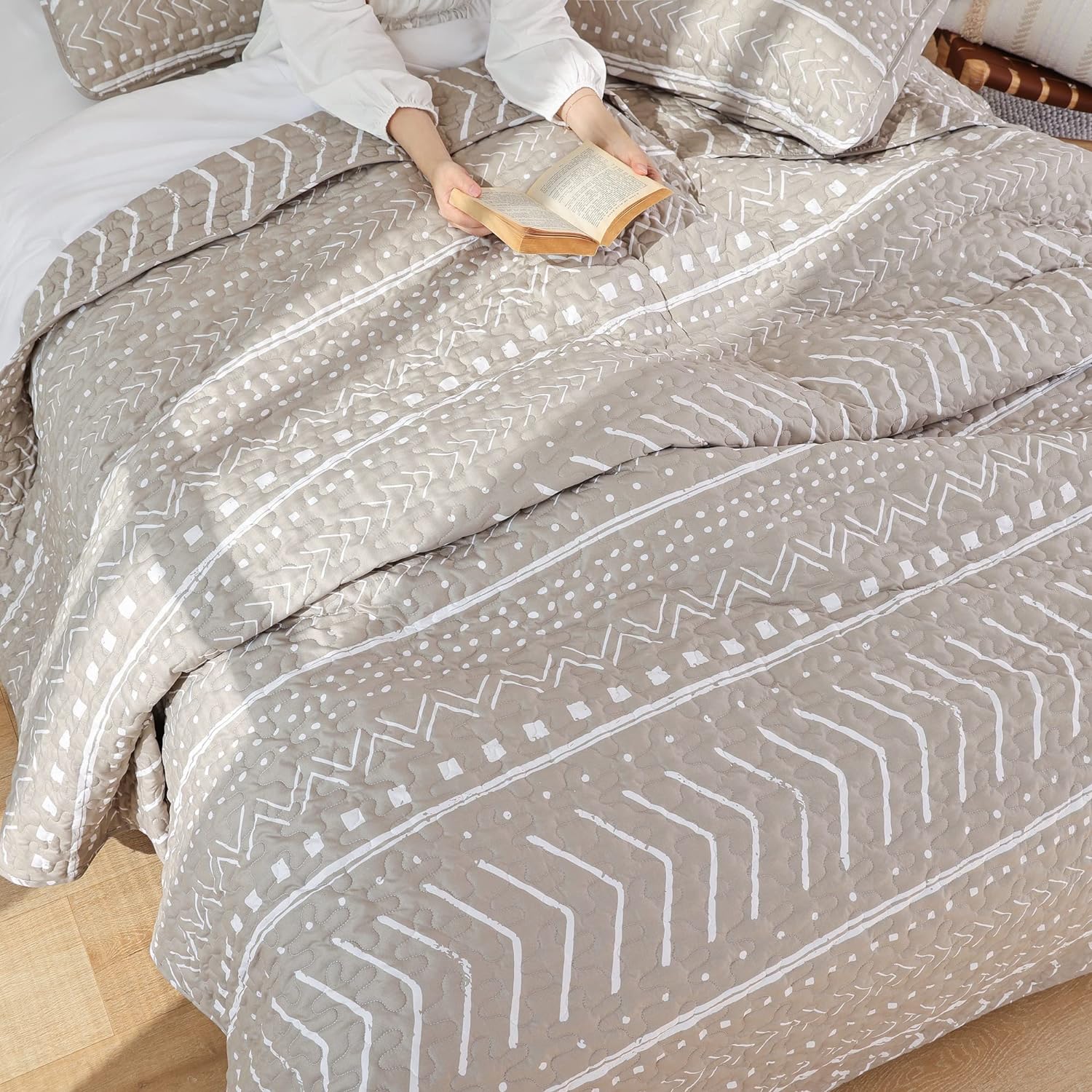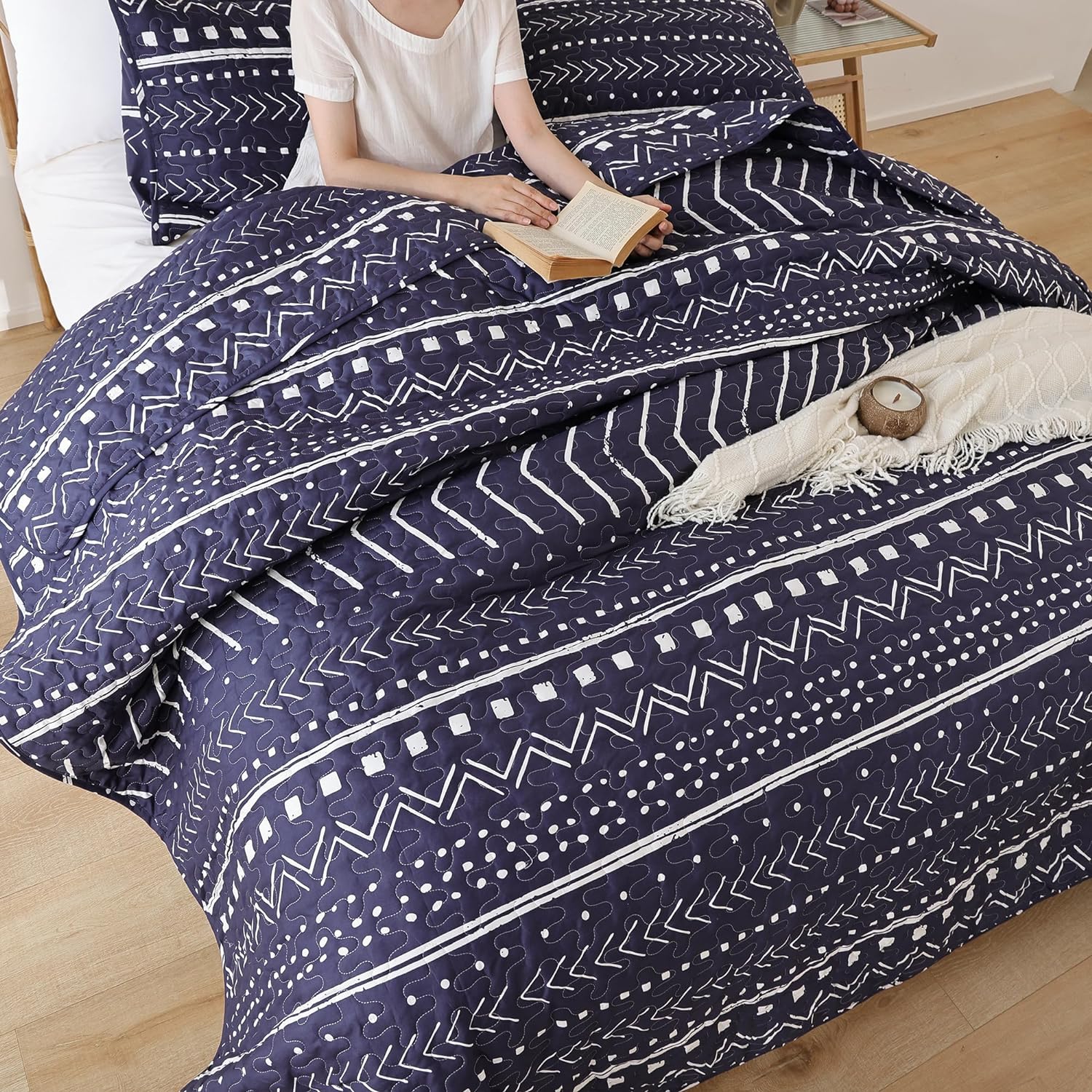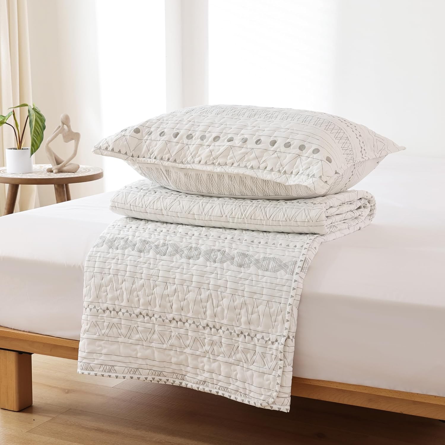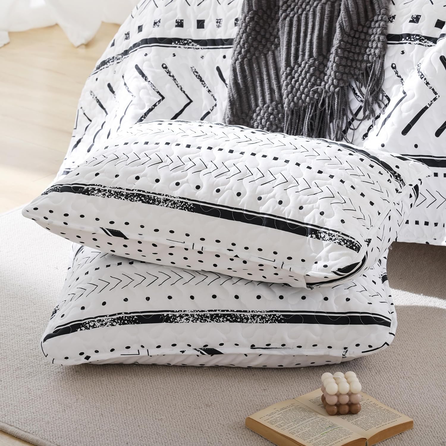- UNIQUE PATTERN:The quilts queen size design with boho style featuring white geometric printed and multiple elements which perfectly blends fashion and abstract art,add an extra layer of modern style to match your room décor and brighten your rooms,perfect as a great gift idea for men and women at special festival.