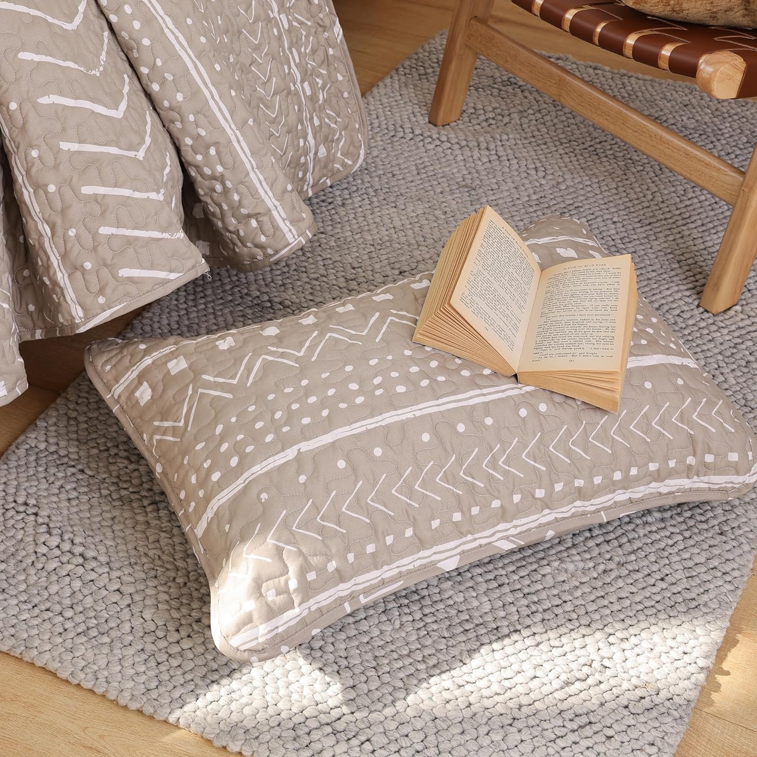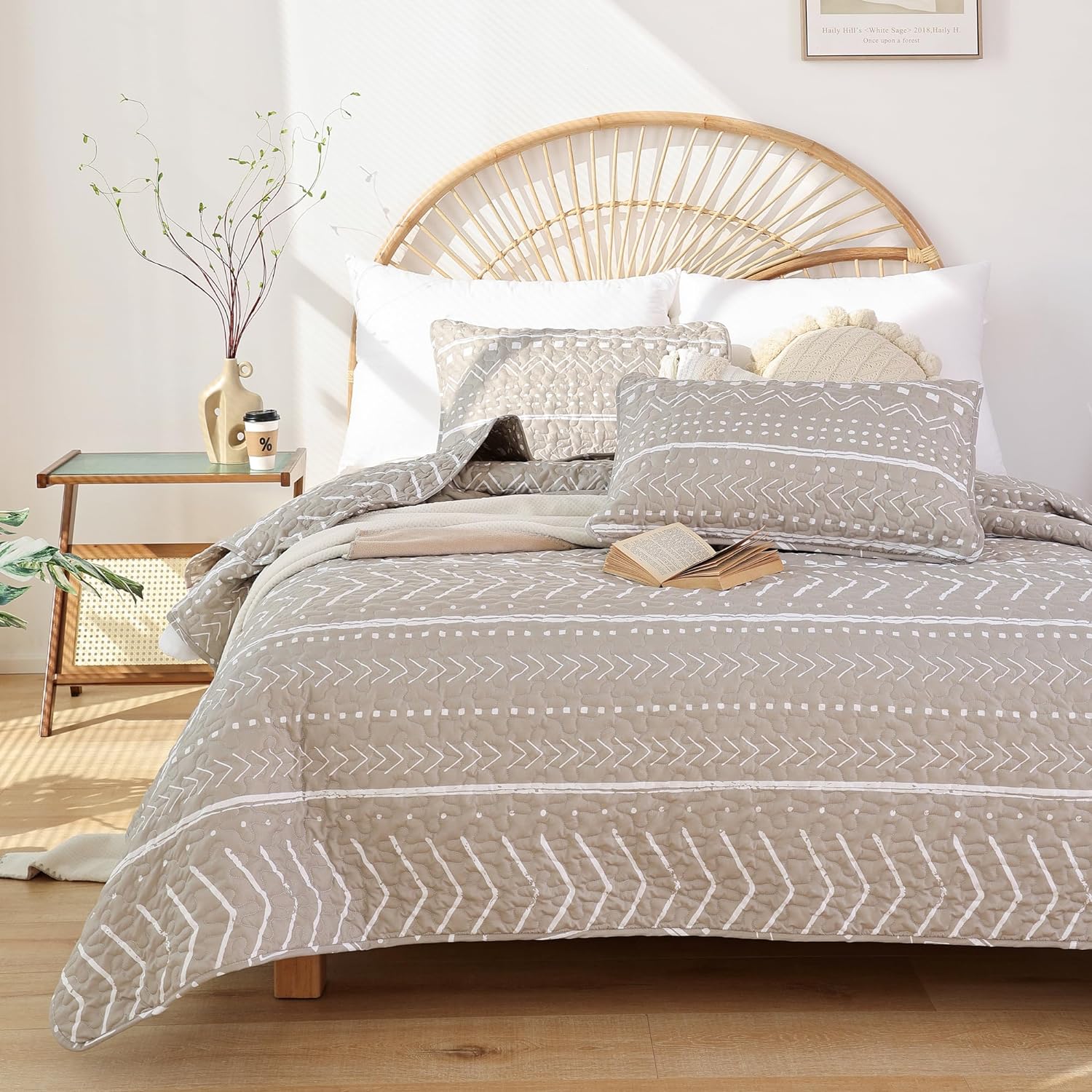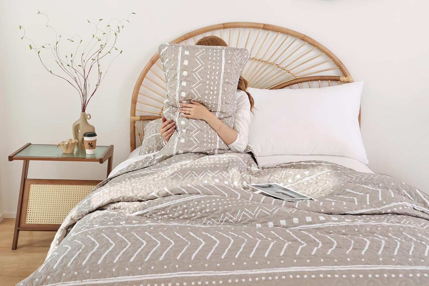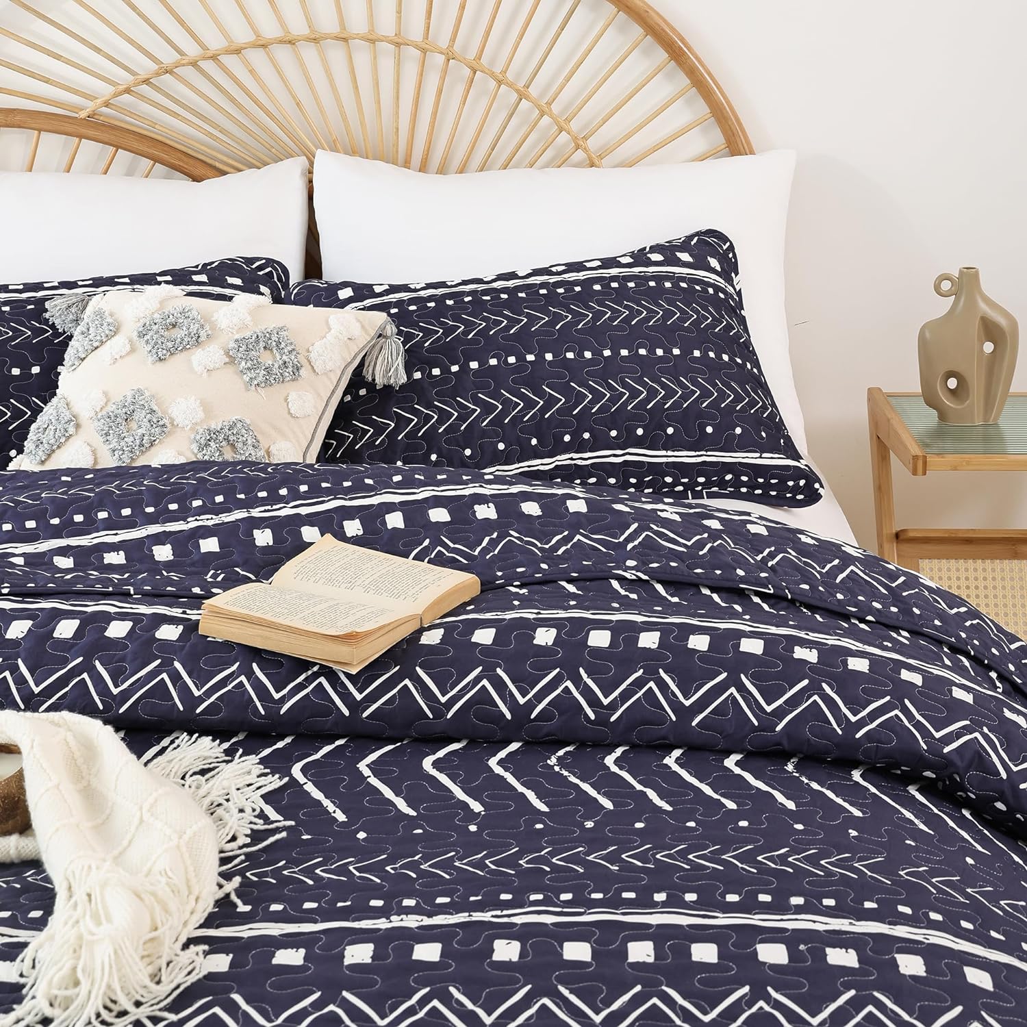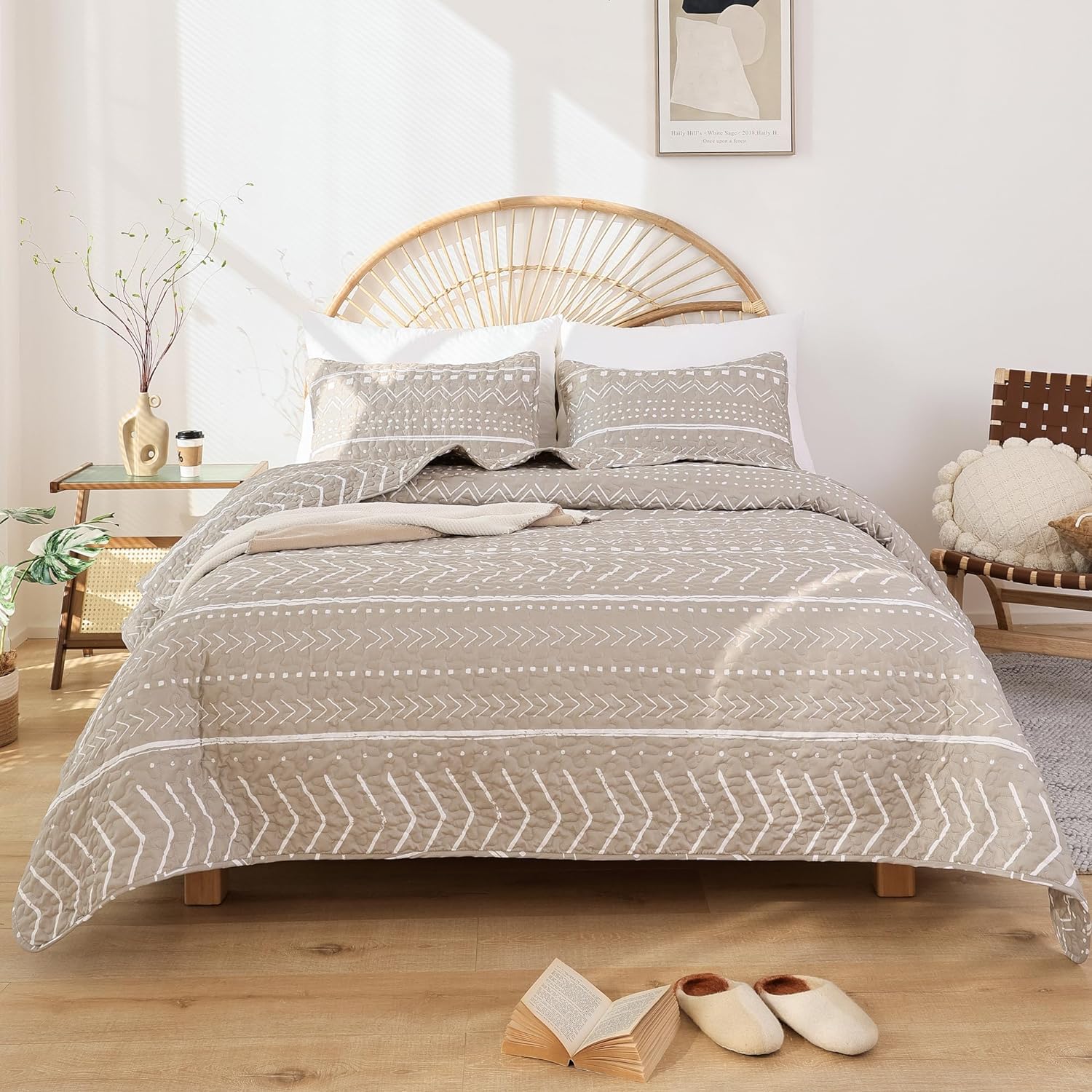 - UNIQUE PATTERN:The quilts queen size design with boho style featuring white geometric printed and multiple elements which perfectly blends fashion and abstract art,add an extra layer of modern style to match your room décor and brighten your rooms,perfect as a great gift idea for men and women at special festival.