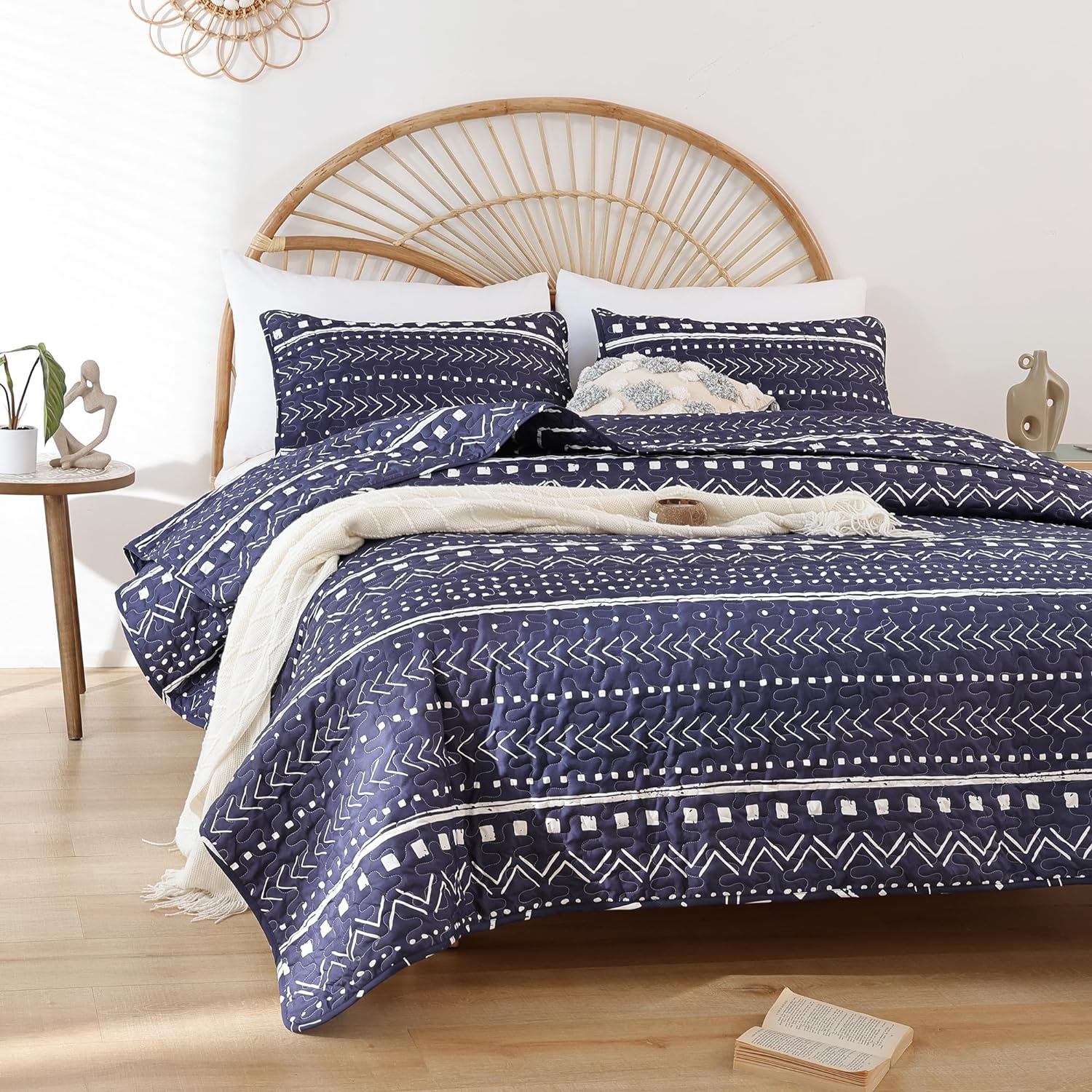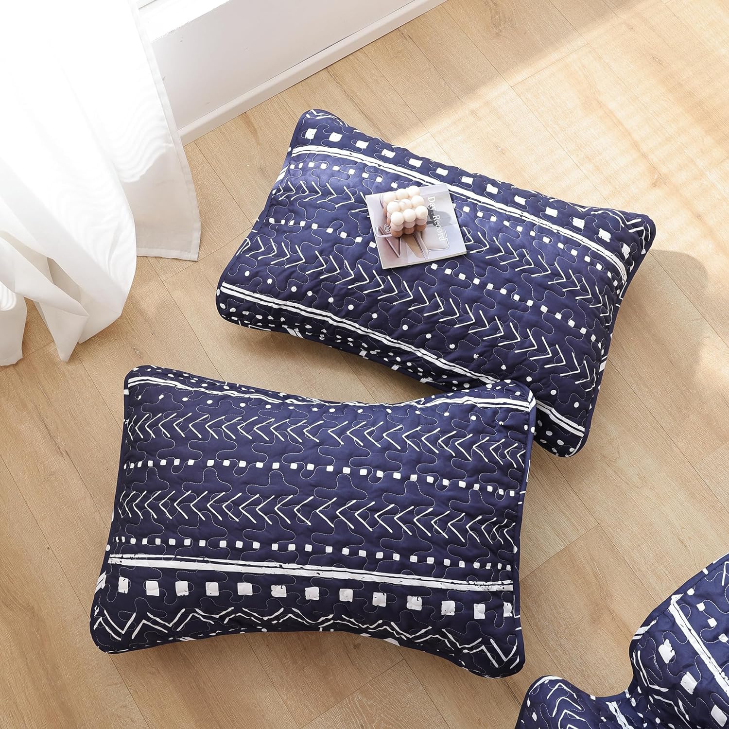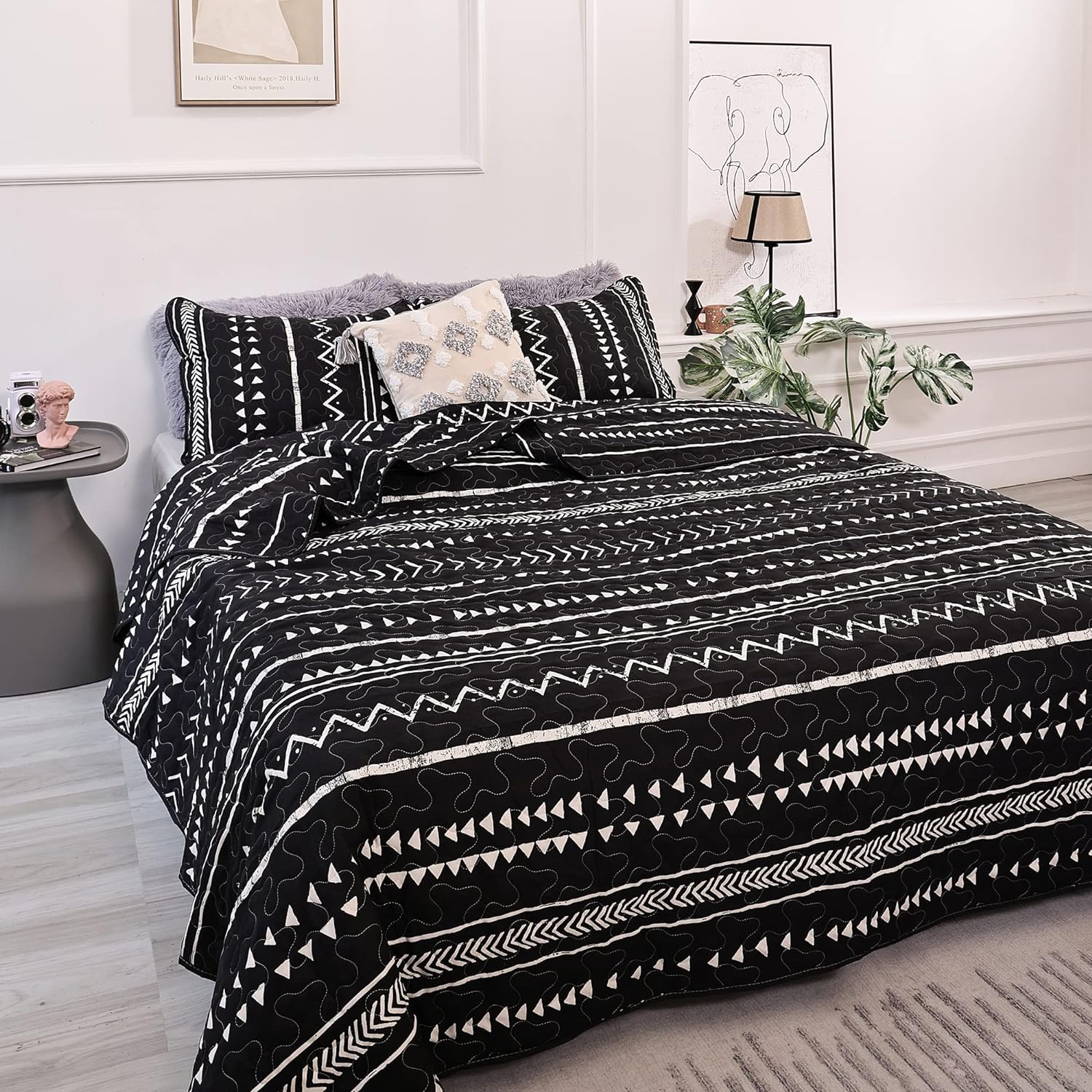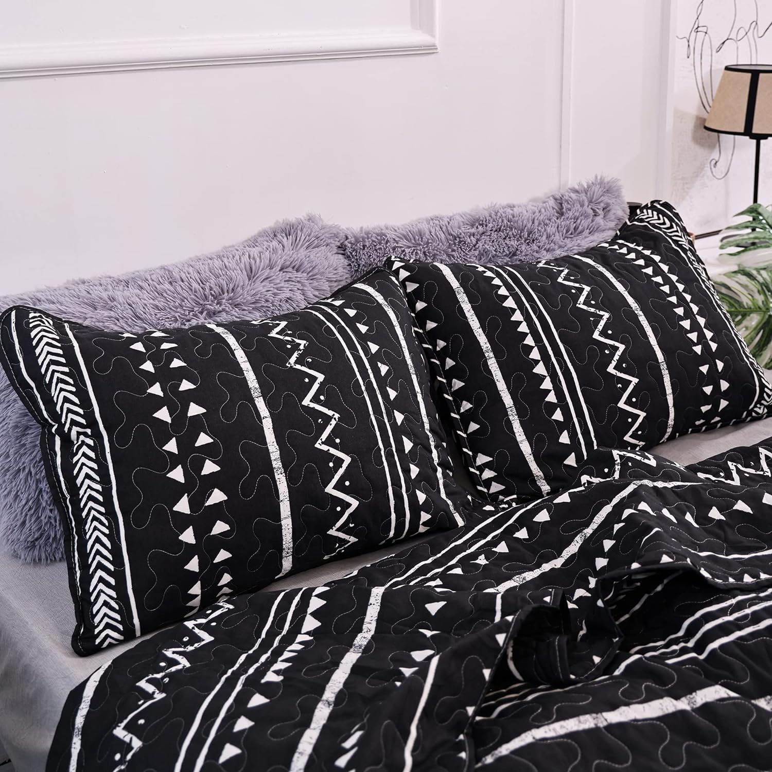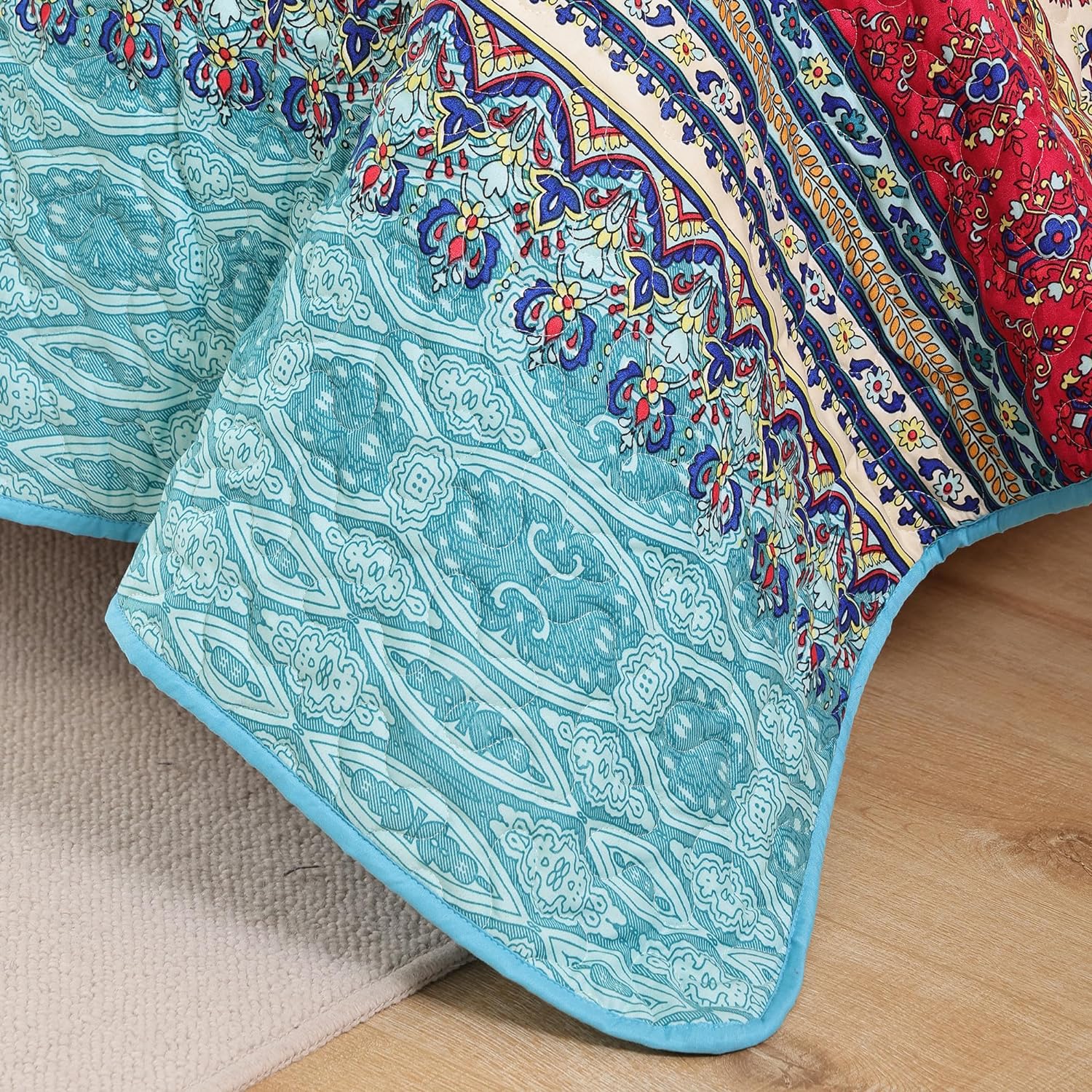 - BOHO QUILTS QUEEN SIZE SET: 3 Piece quilt set include:1*queen quilt (90" x 90"inches) and 2*Pillow Cases (26" x 20"inches). Made of microfiber polyester. Soft,lightweight and durable. High quality material has the features of non-fading, anti - pilling and stains resistant for increasing using longevity.(Notice: Two Pillow cases is randomly tailored from the whole fabric to match the duvet cover, maybe not totally same as the pictures.Please kindly understand two pillow cases design are different.)