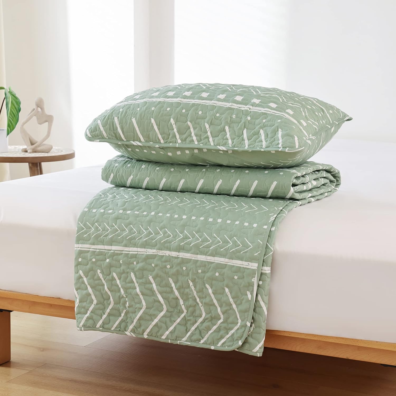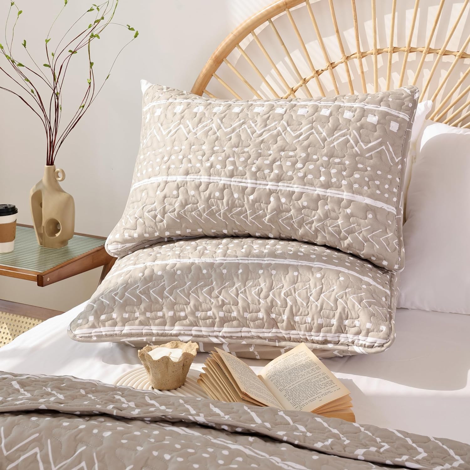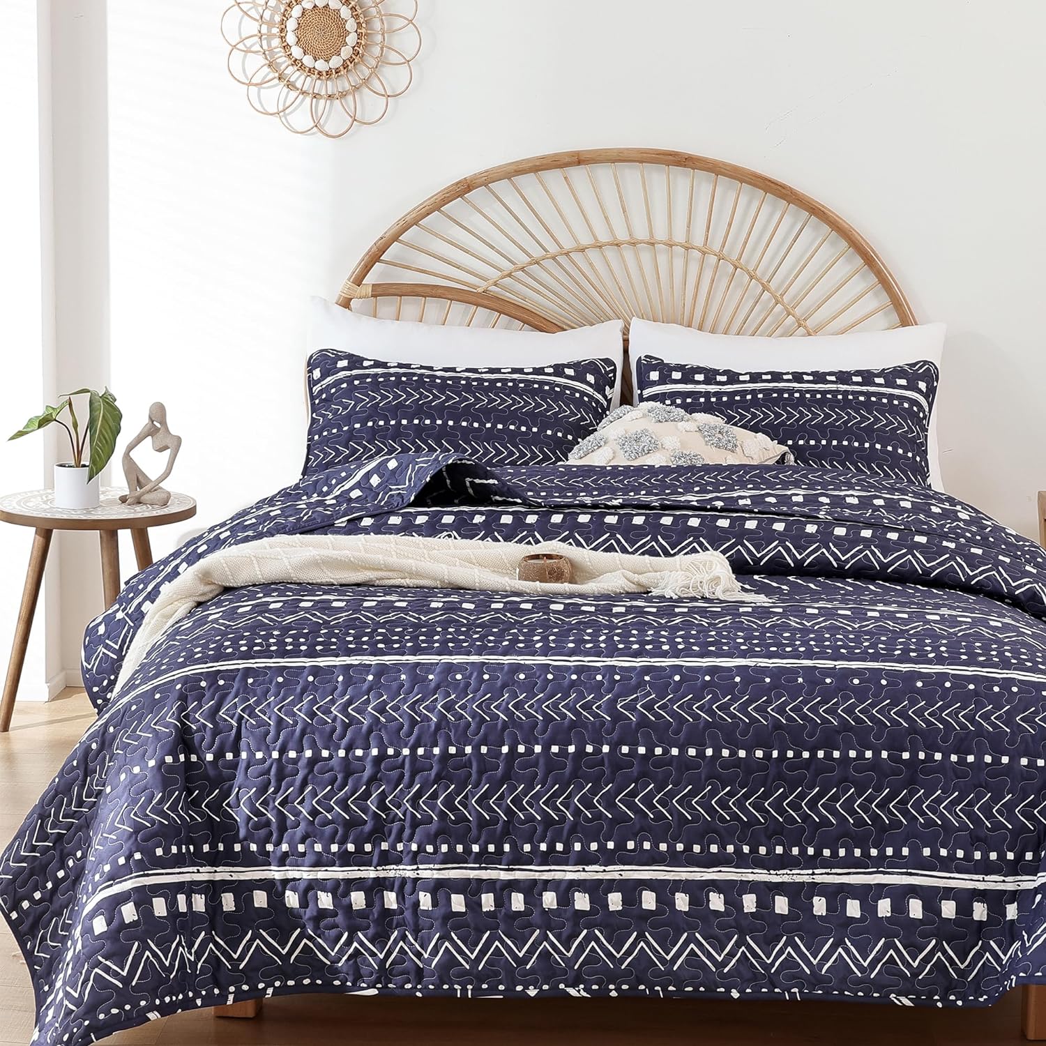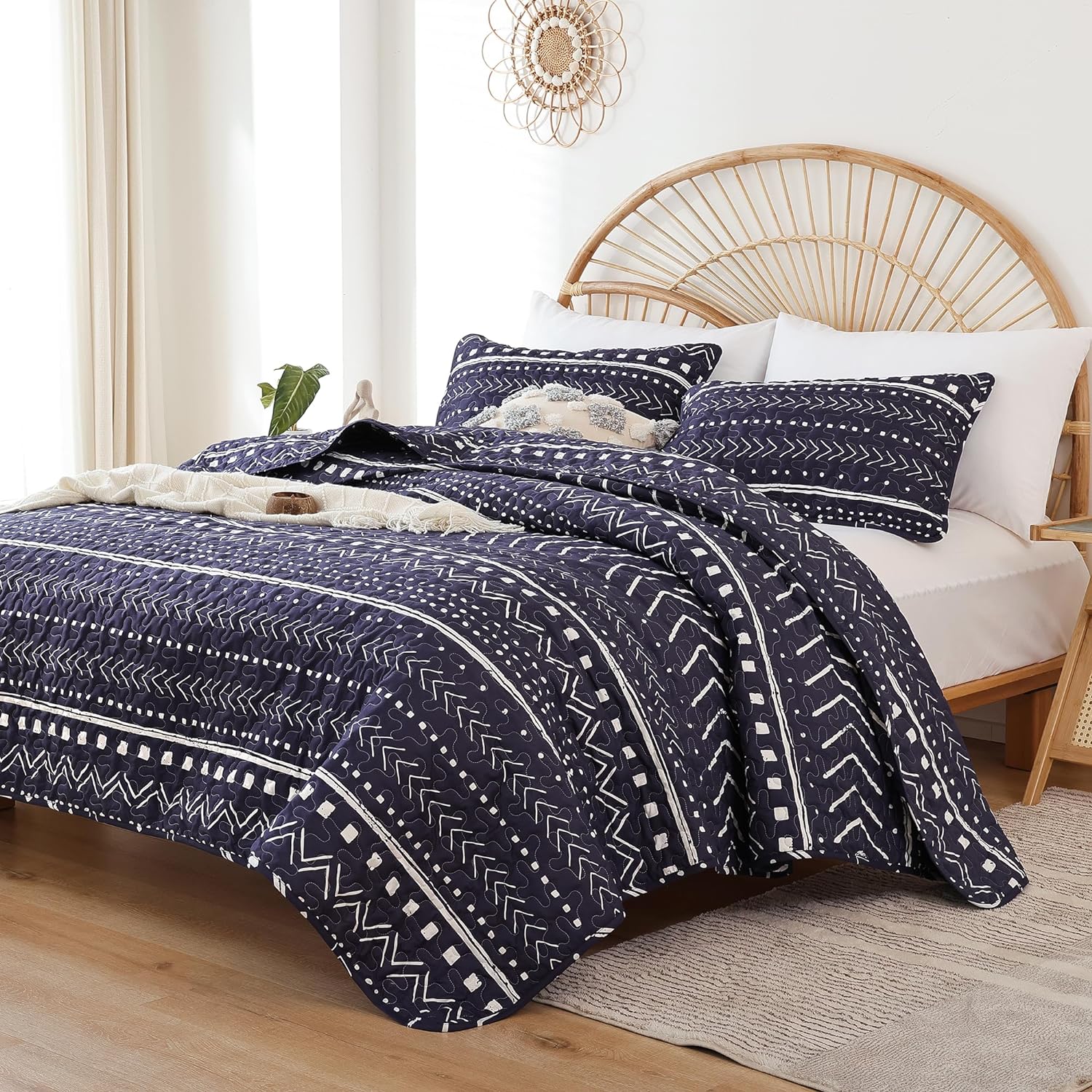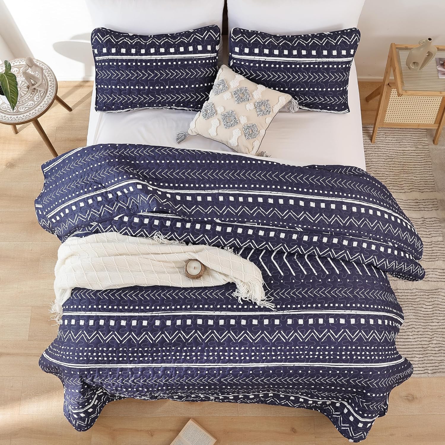 - BOHO QUILTS QUEEN SIZE SET: 3 Piece quilt set include:1*queen quilt (90" x 90"inches) and 2*Pillow Cases (26" x 20"inches). Made of microfiber polyester. Soft,lightweight and durable. High quality material has the features of non-fading, anti - pilling and stains resistant for increasing using longevity.(Notice: Two Pillow cases is randomly tailored from the whole fabric to match the duvet cover, maybe not totally same as the pictures.Please kindly understand two pillow cases design are different.)