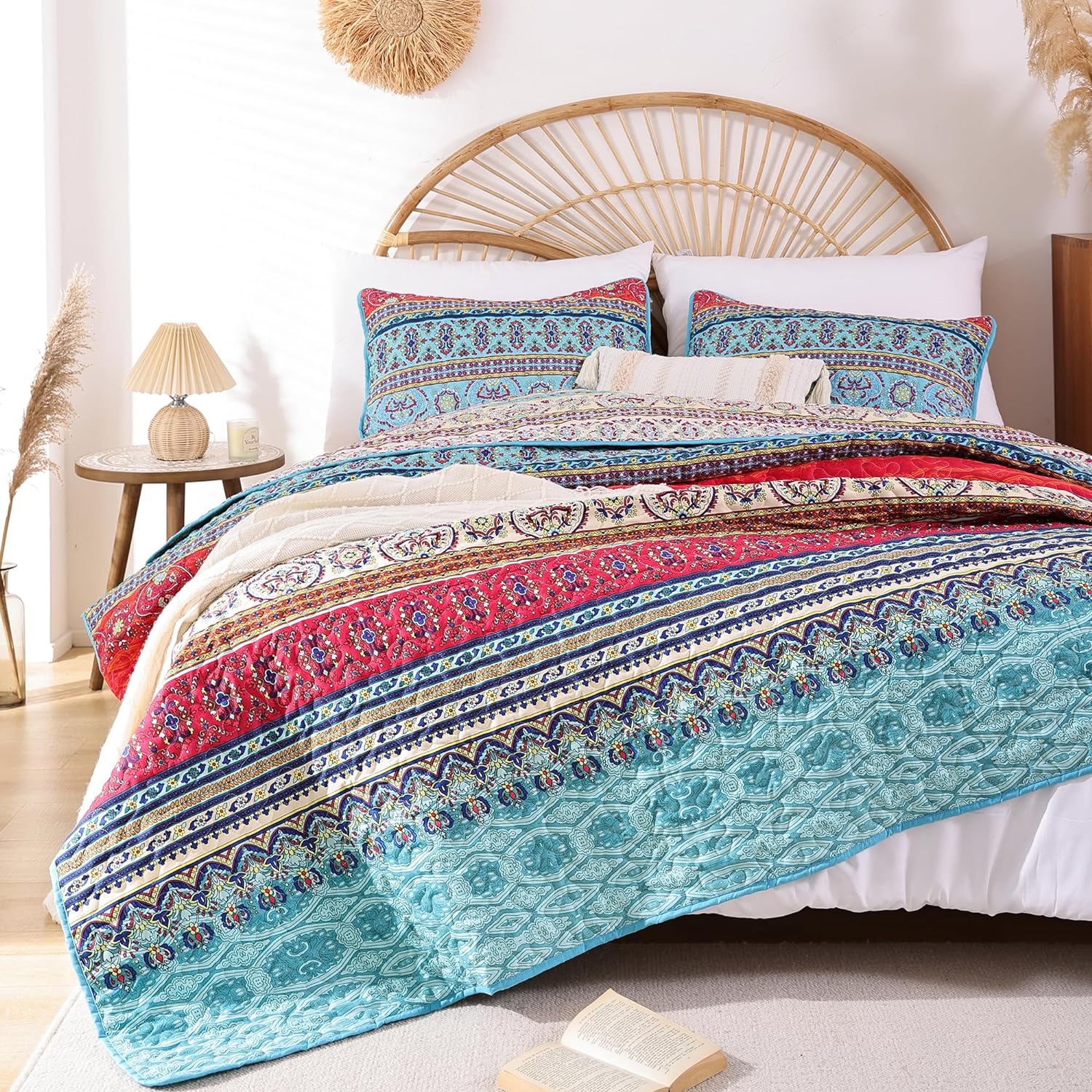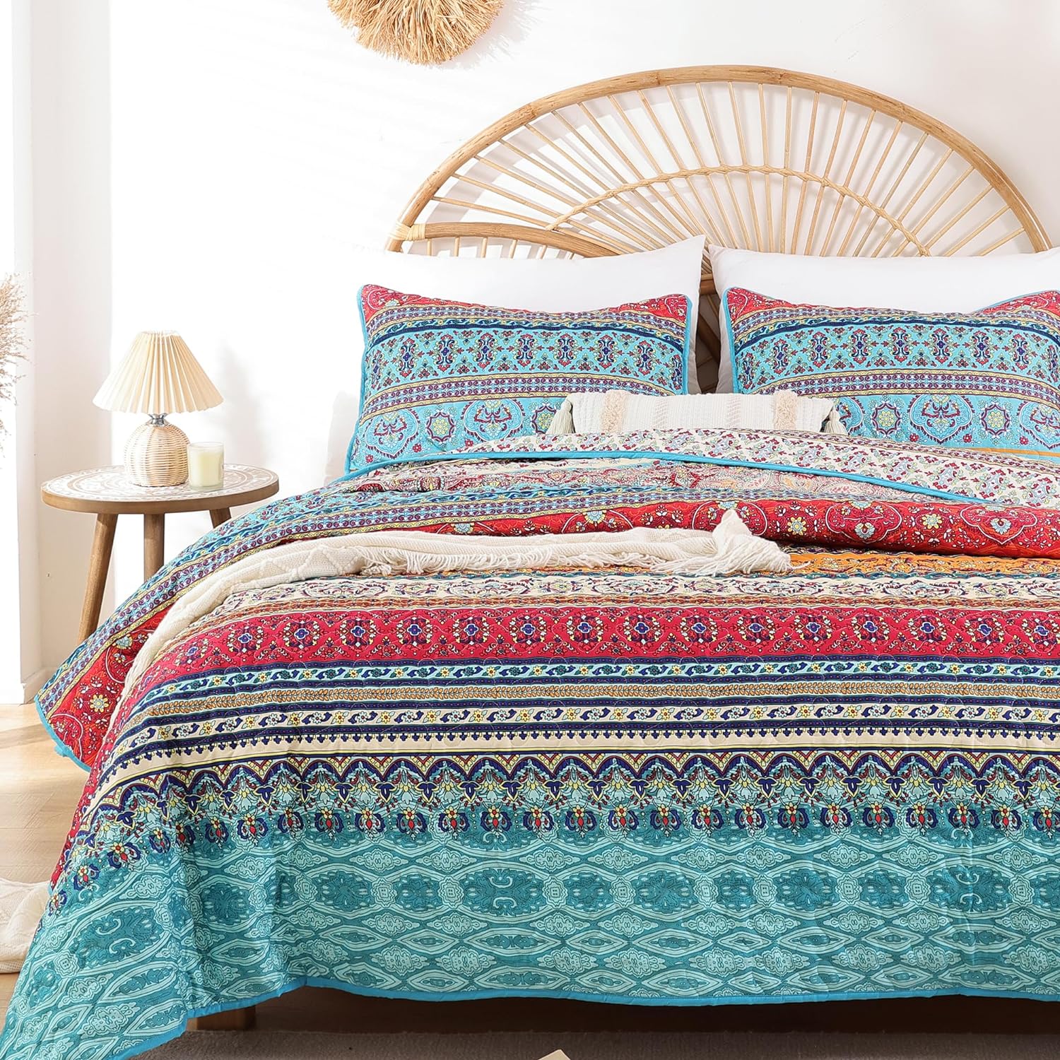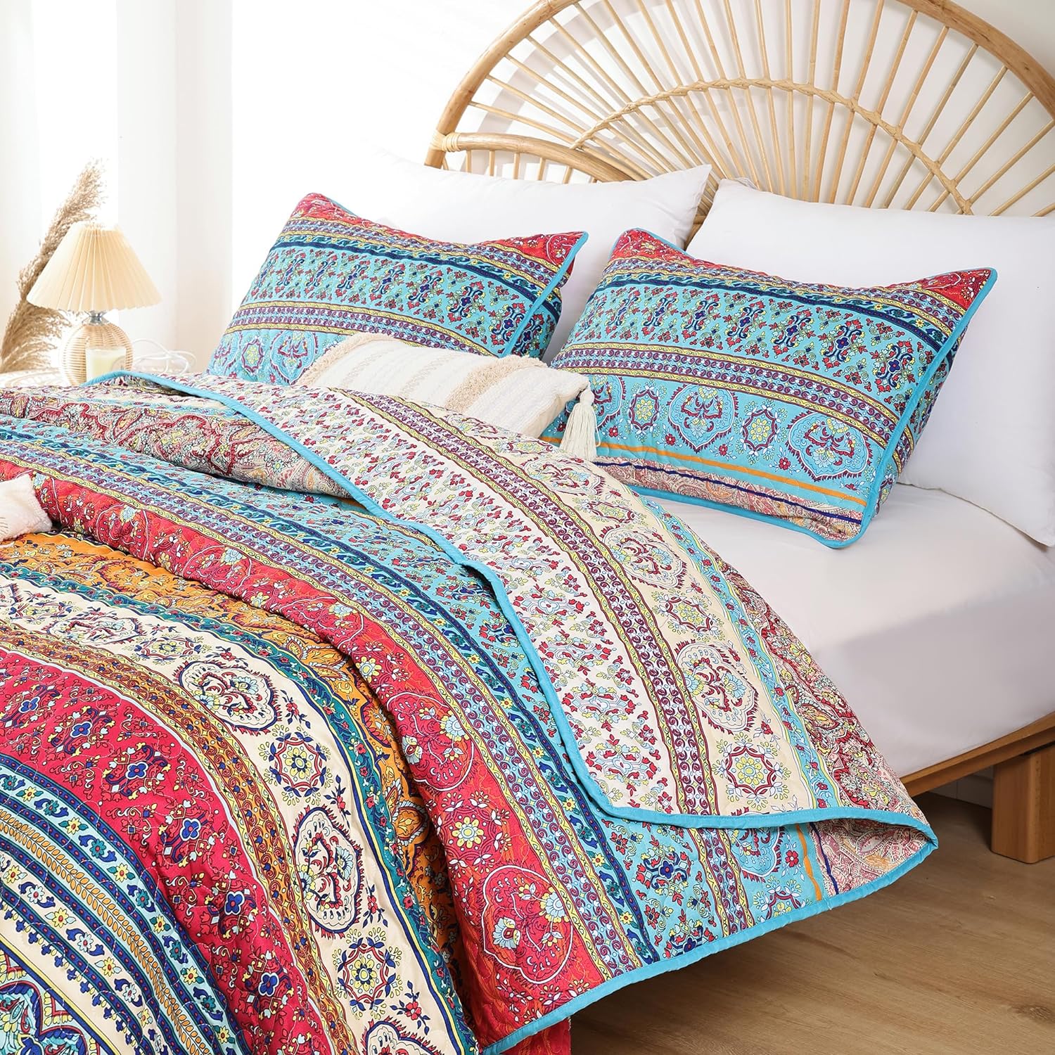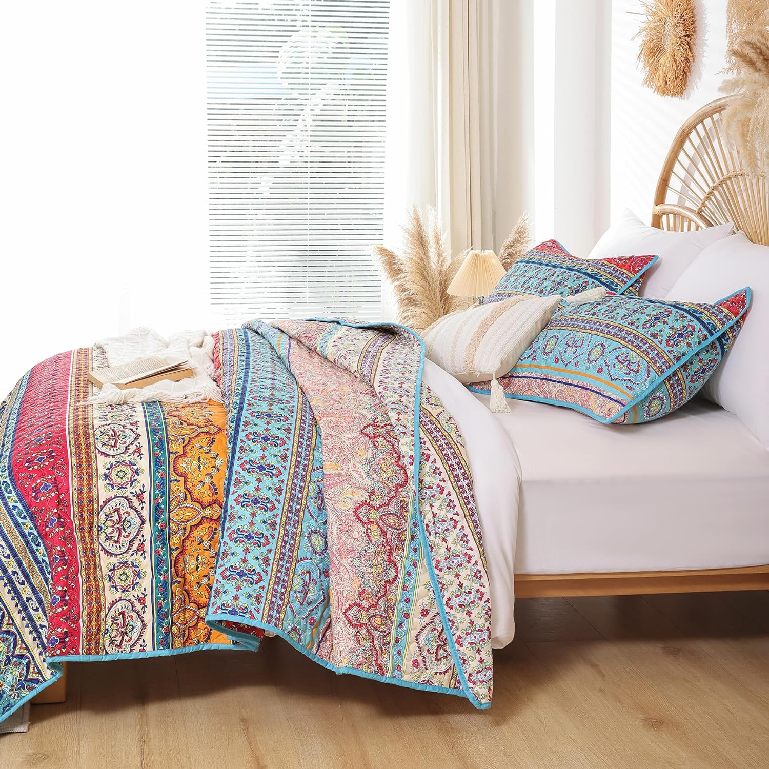 - SOFT WARM & COMFORTABLE DESIGN: The boho quilts queen size is reversible, both sides could be used individually. cozy and breathable to keep you extremely comfortable all night long. Durable bed cover provide warmth and softness for you and your family. Beautiful summer bedding creats a comfortable sleeping environment for good night rest.