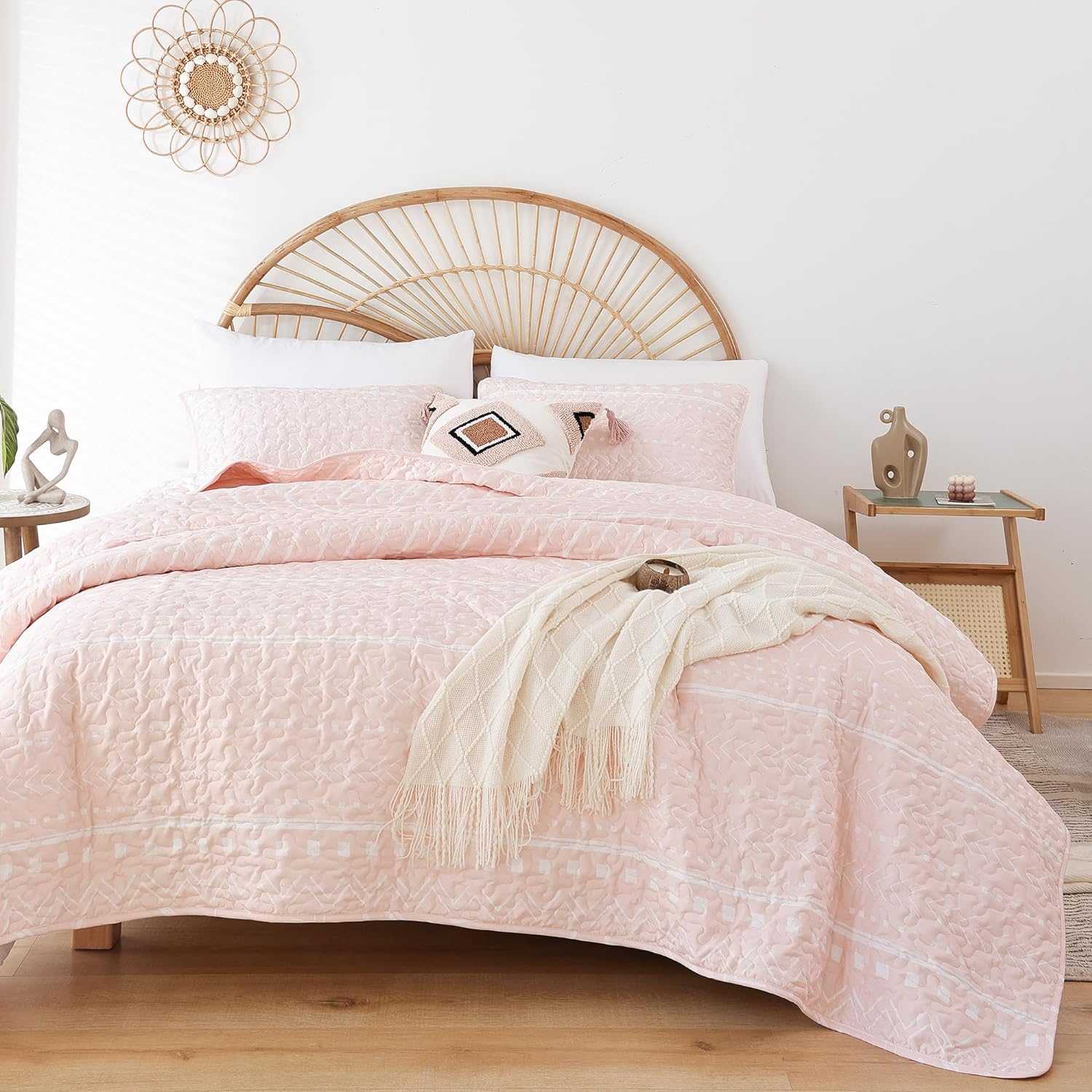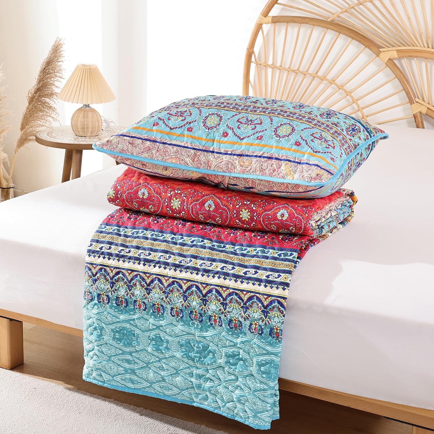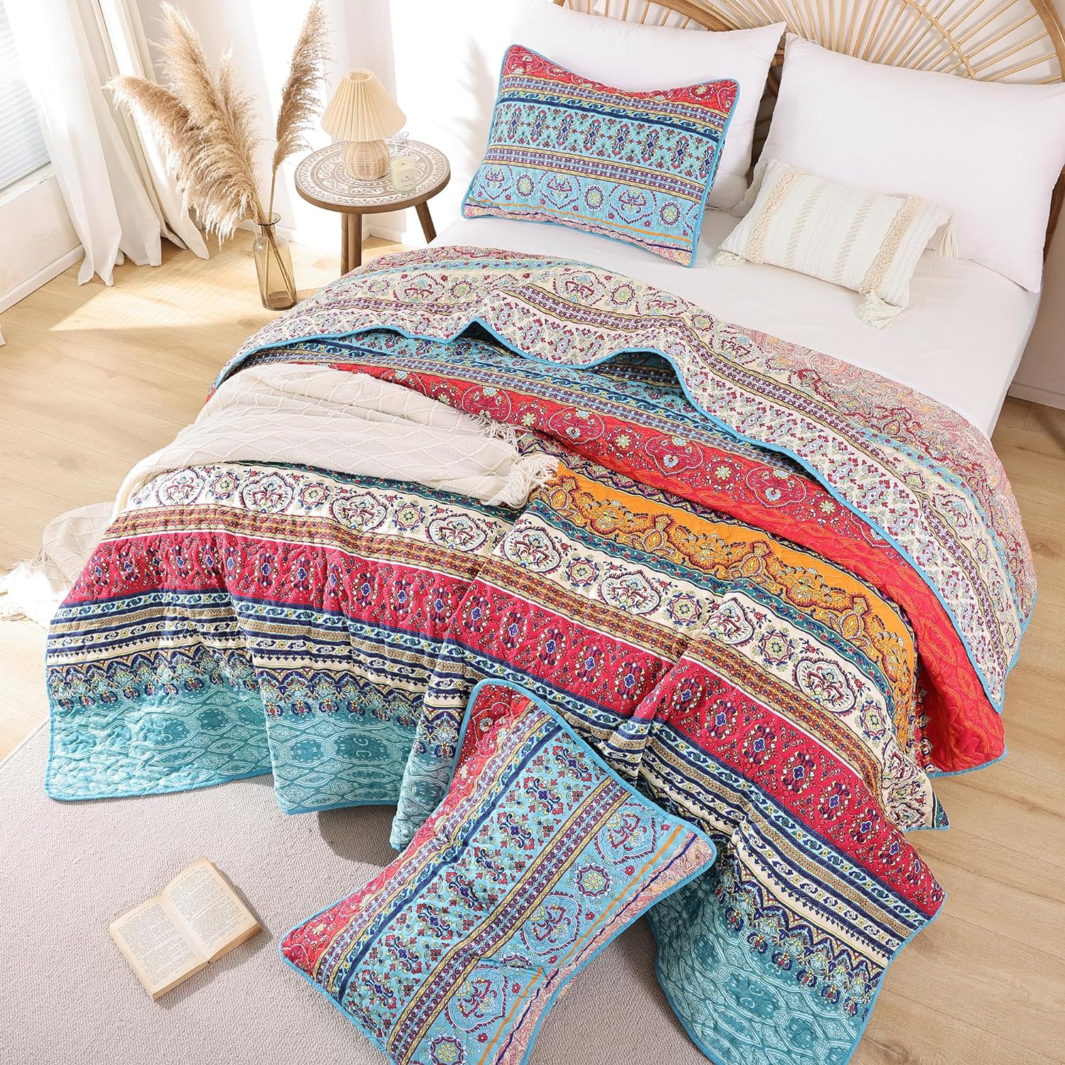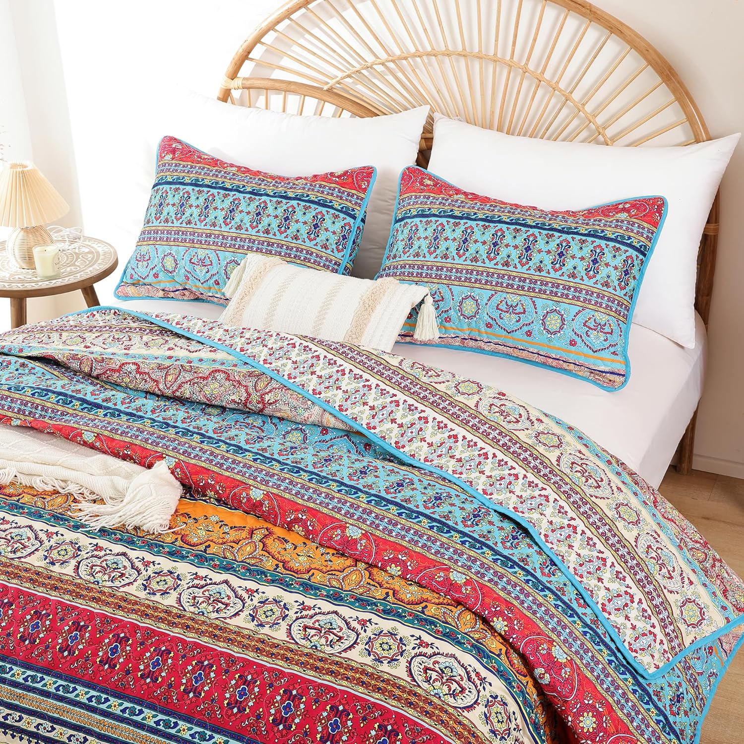 - SOFT WARM & COMFORTABLE DESIGN: The boho quilts queen size is reversible, both sides could be used individually. cozy and breathable to keep you extremely comfortable all night long. Durable bed cover provide warmth and softness for you and your family. Beautiful summer bedding creats a comfortable sleeping environment for good night rest.