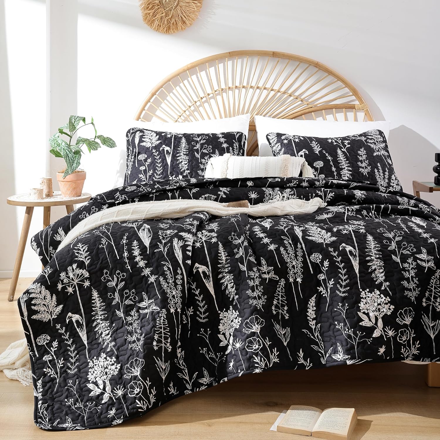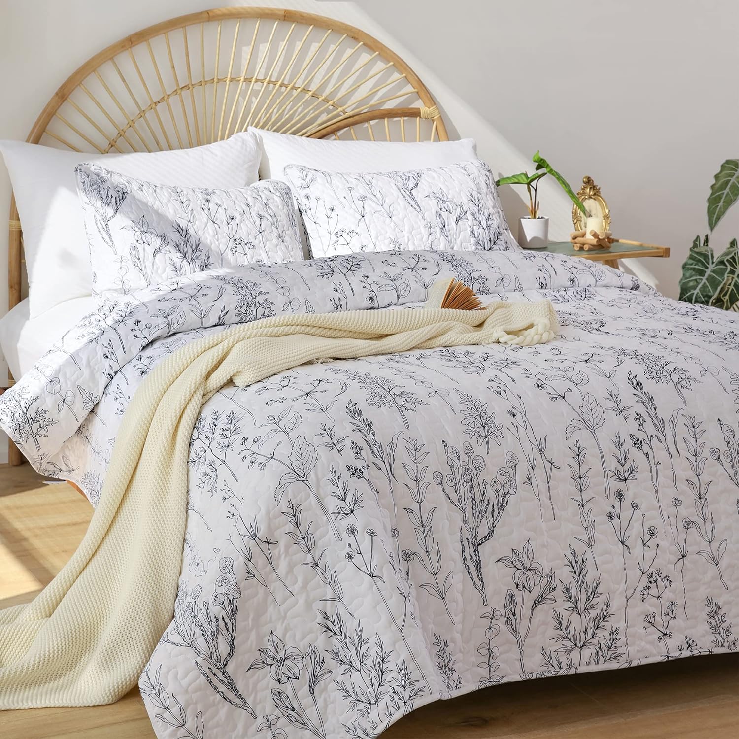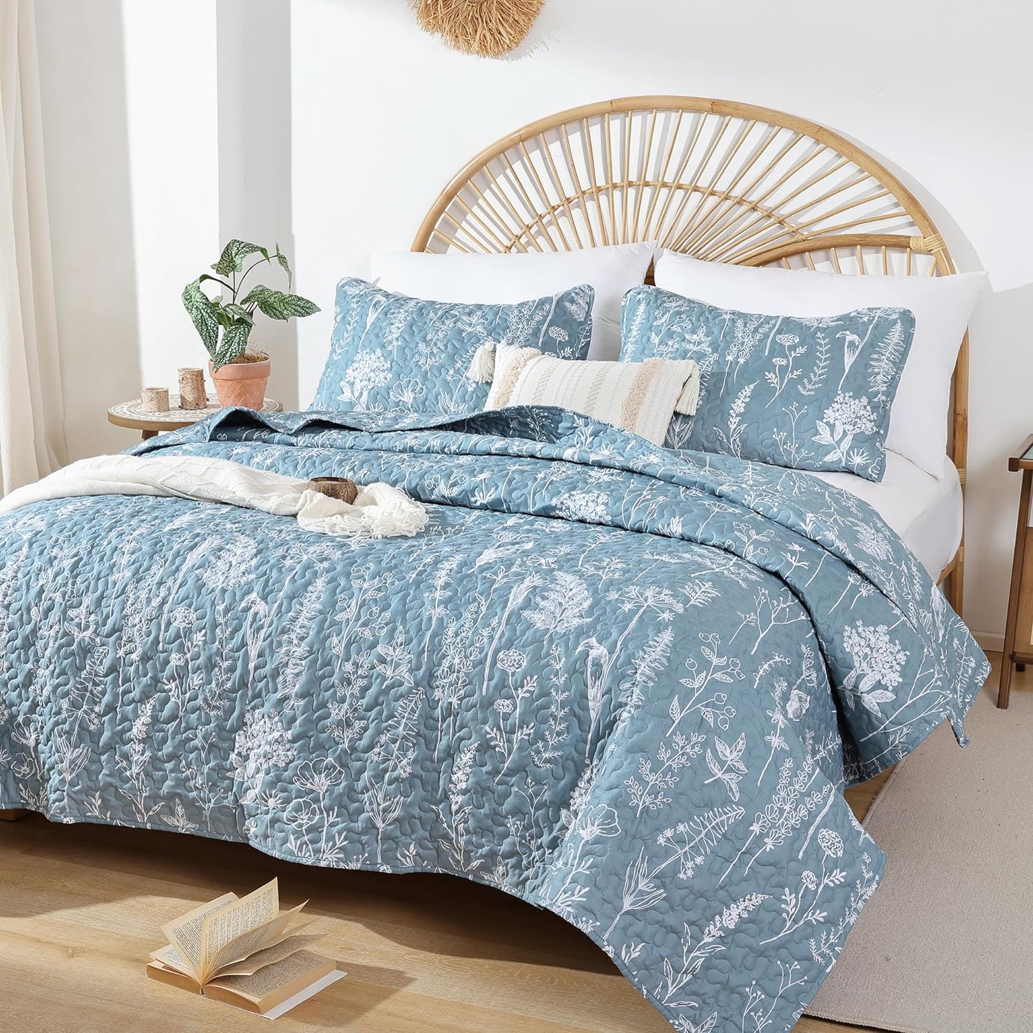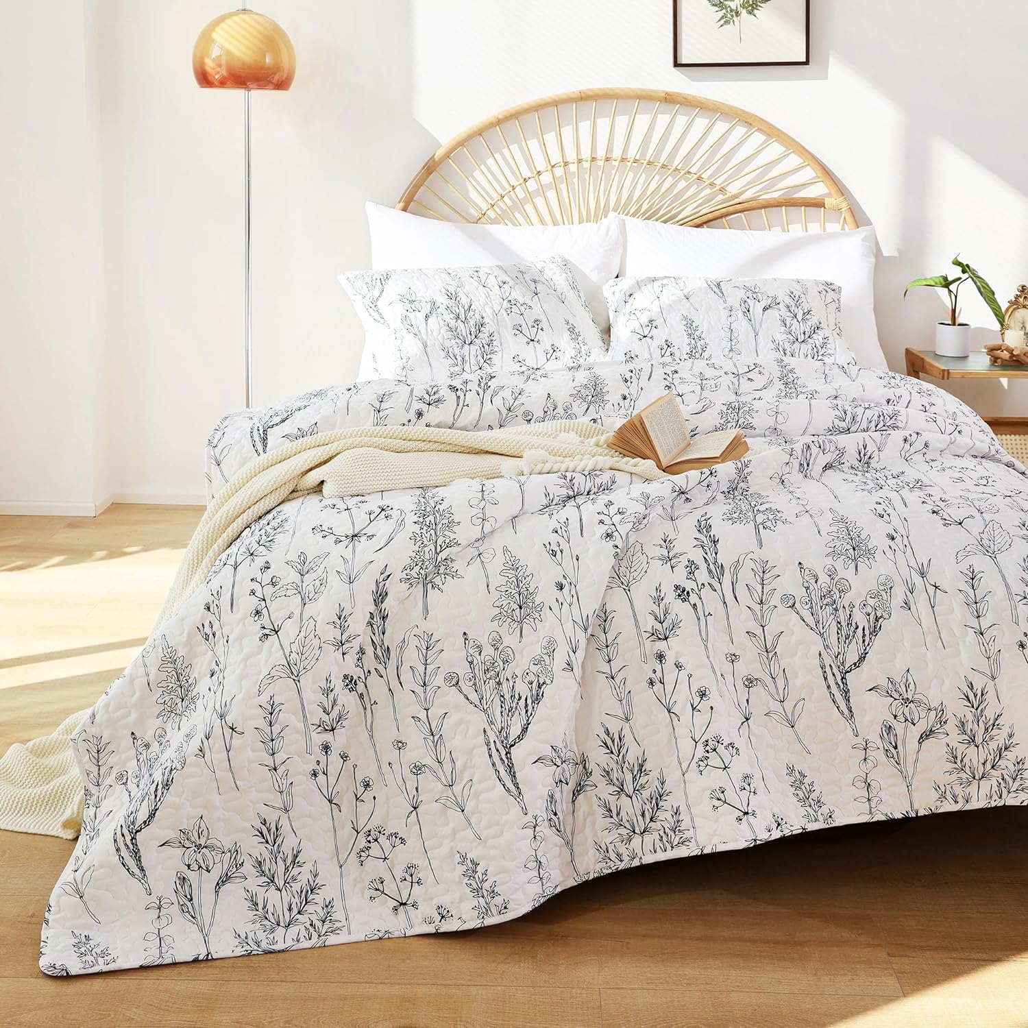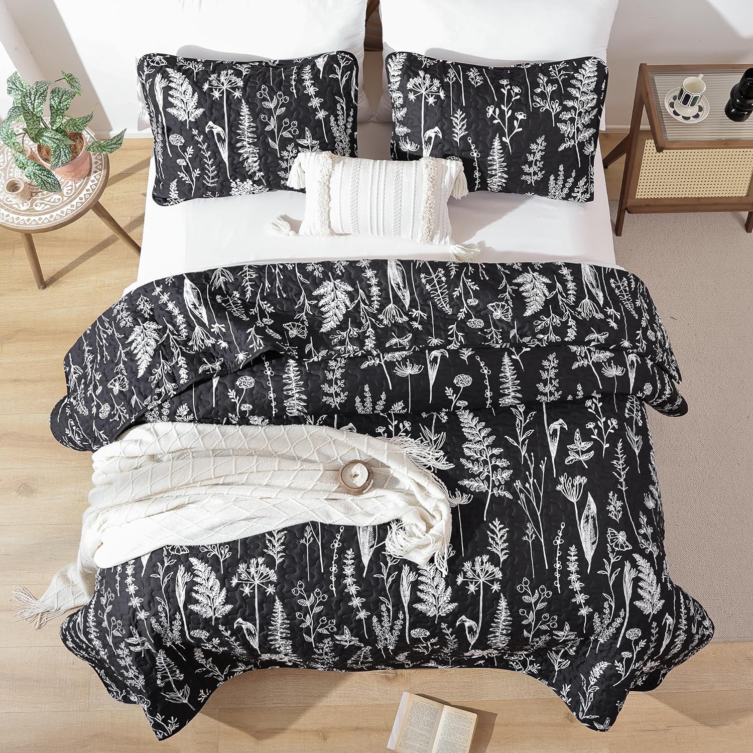 - 【UNIQUE DESIGN】: The quilts queen size is a double sided design with botanical style garden floral and leaves pattern printed on. The queen quilt set is reversible, you can change the side as you want. Vibrant floral quilt not only brighten your rooms, but also add stylish and modern elements to your room.