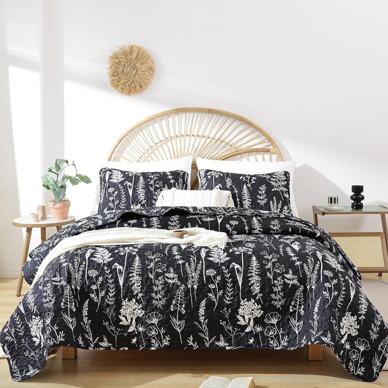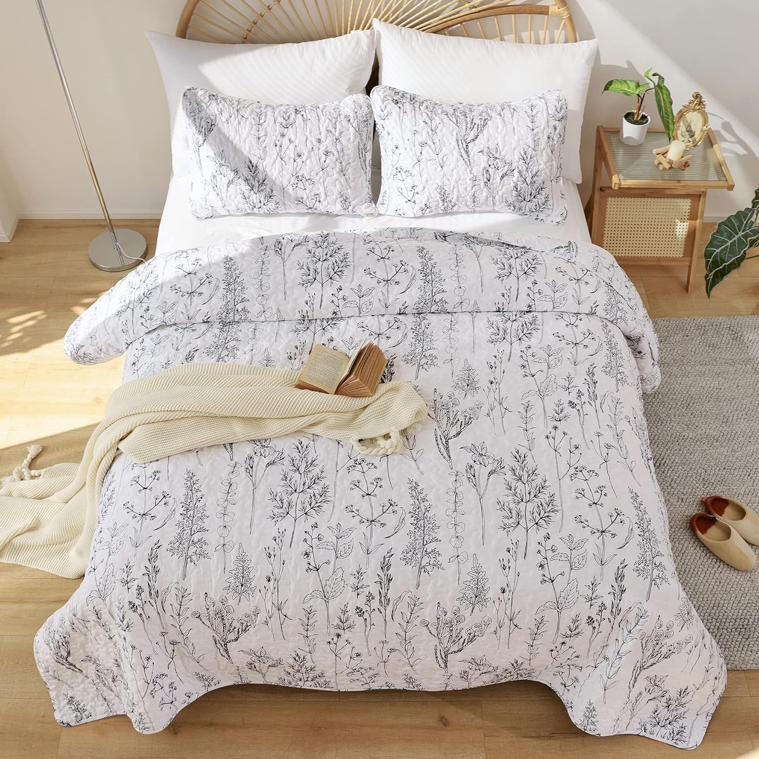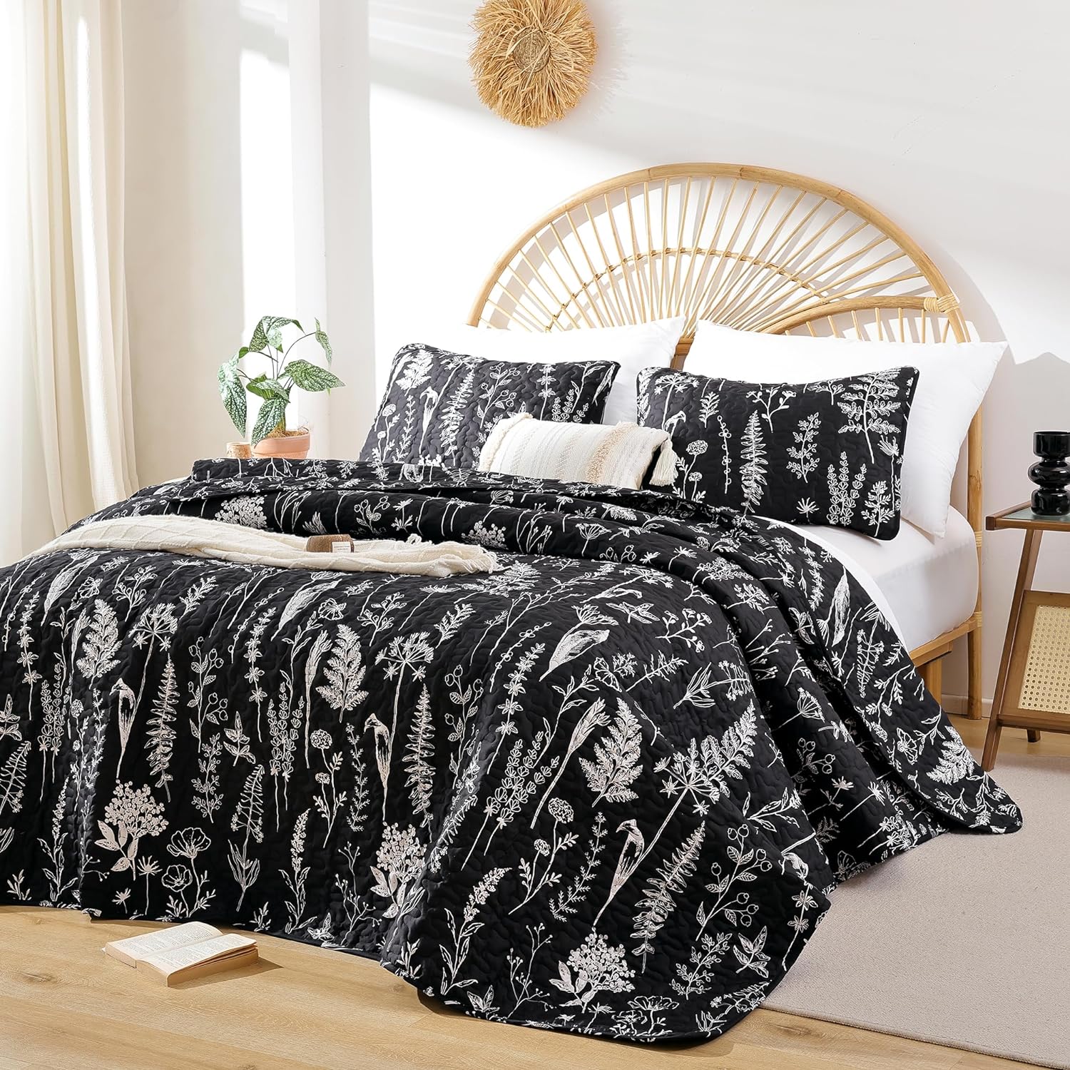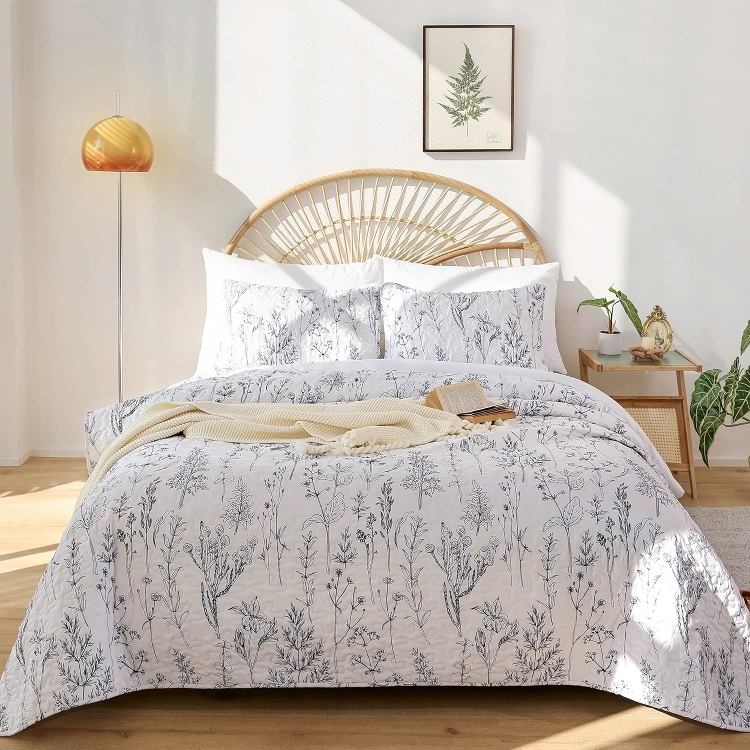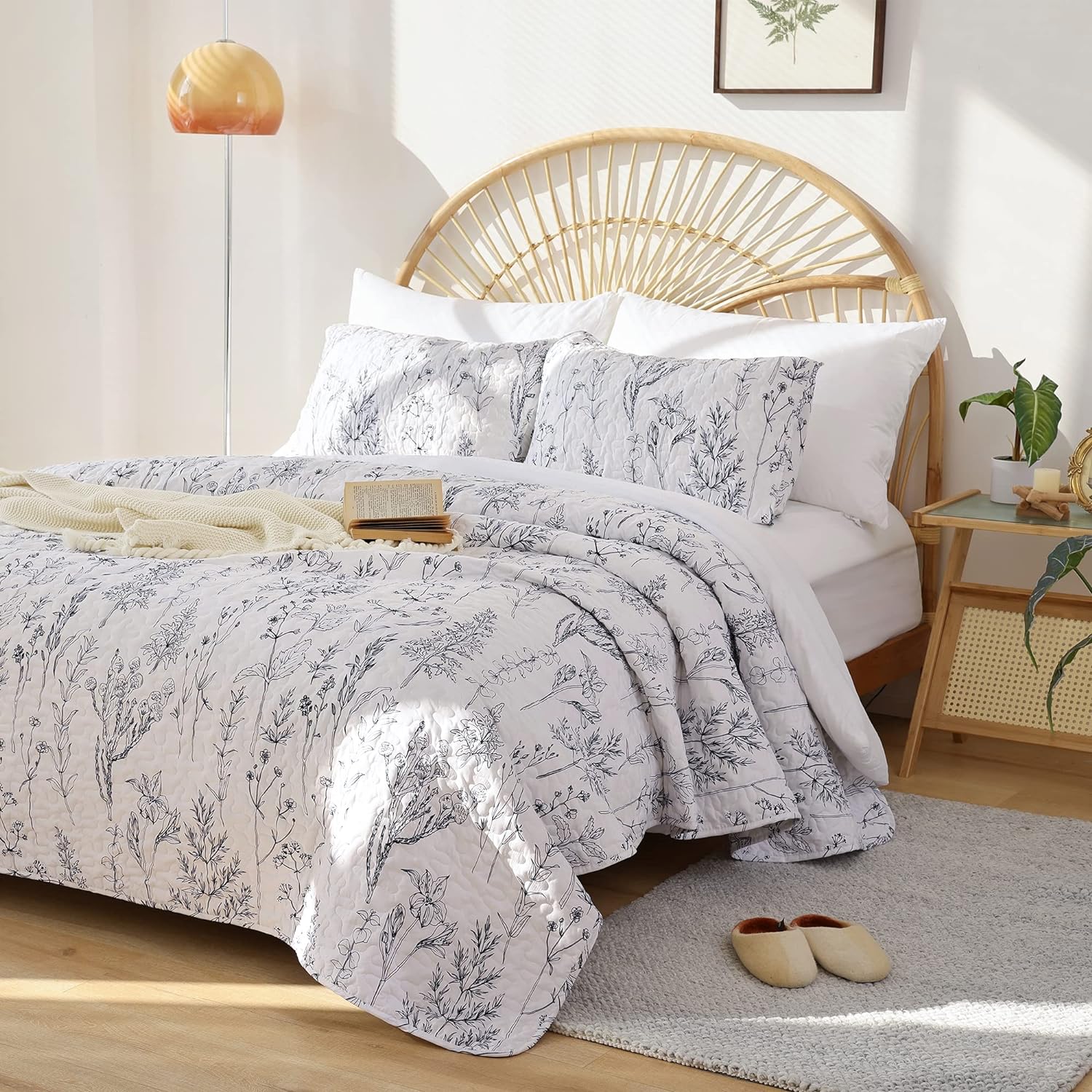 - 【UNIQUE DESIGN】: The quilts queen size is a double sided design with botanical style garden floral and leaves pattern printed on. The queen quilt set is reversible, you can change the side as you want. Vibrant floral quilt not only brighten your rooms, but also add stylish and modern elements to your room.