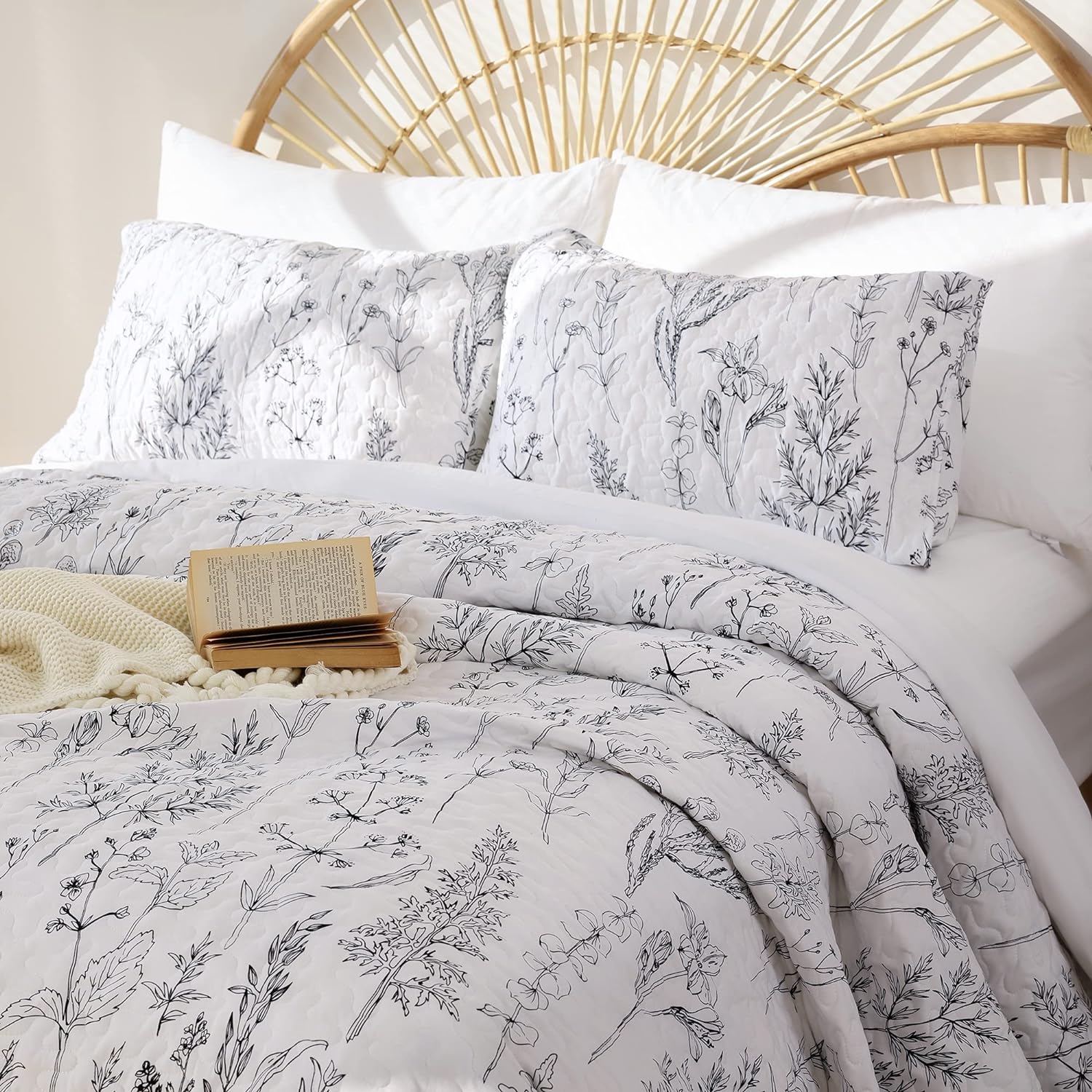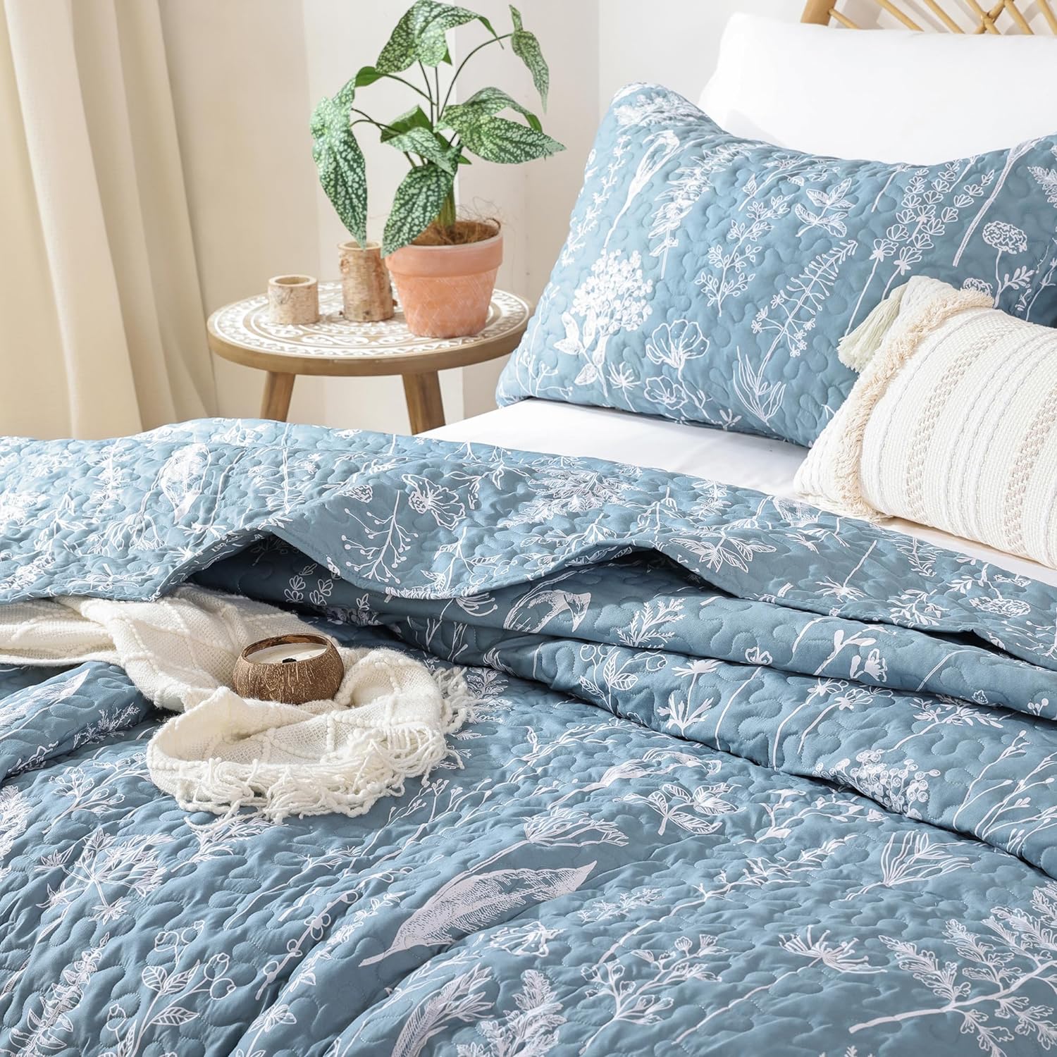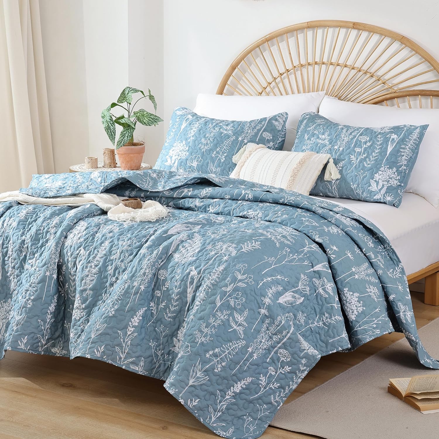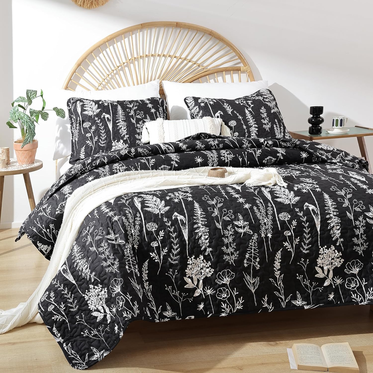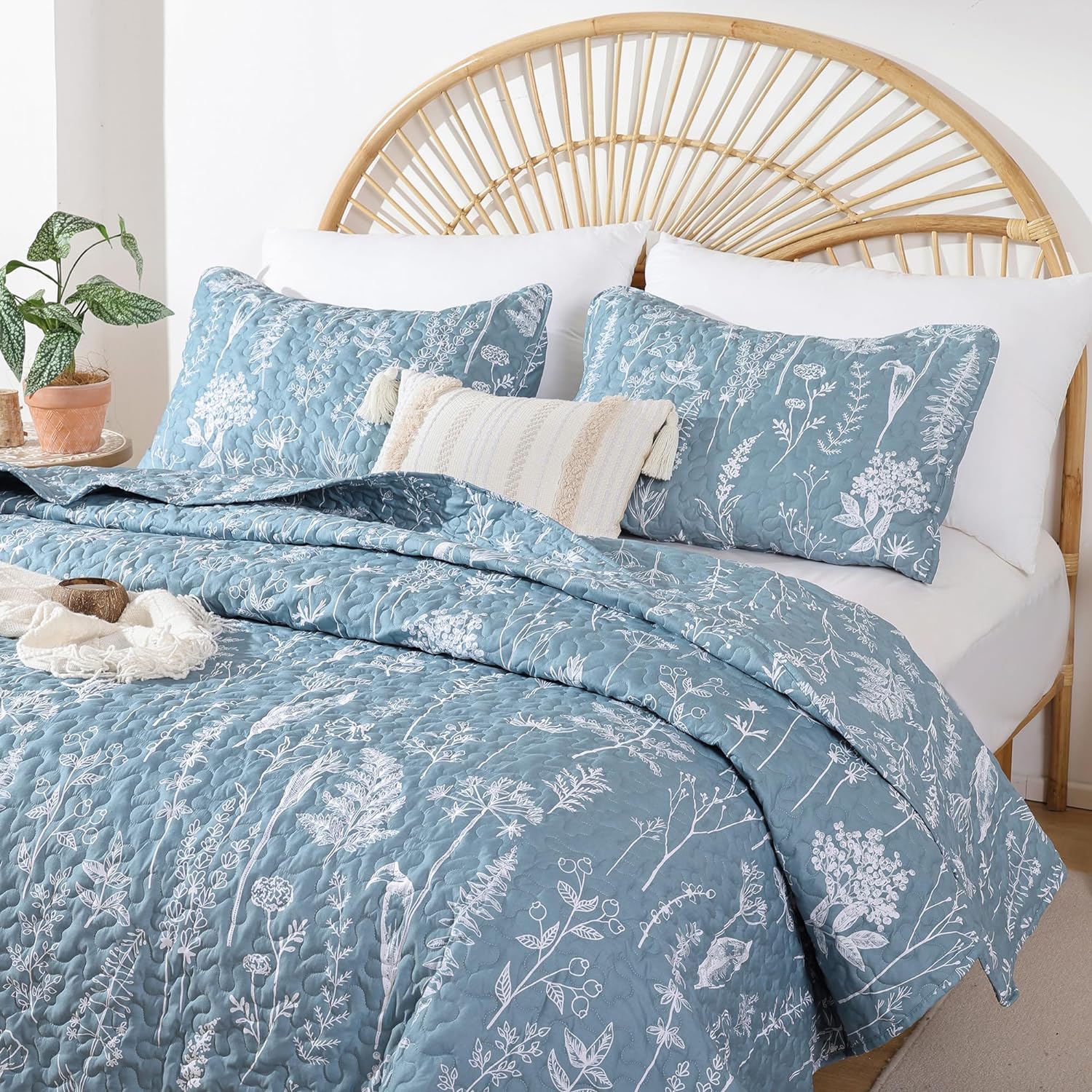 - 【UNIQUE DESIGN】: The quilts queen size is a double sided design with botanical style garden floral and leaves pattern printed on. The queen quilt set is reversible, you can change the side as you want. Vibrant floral quilt not only brighten your rooms, but also add stylish and modern elements to your room.