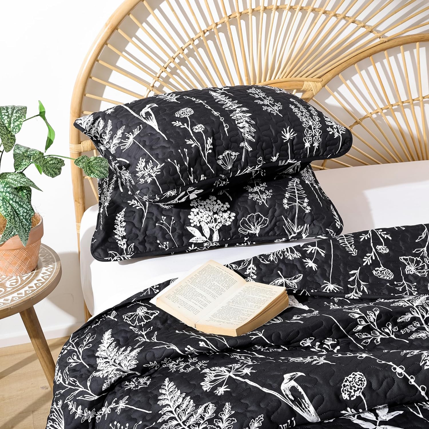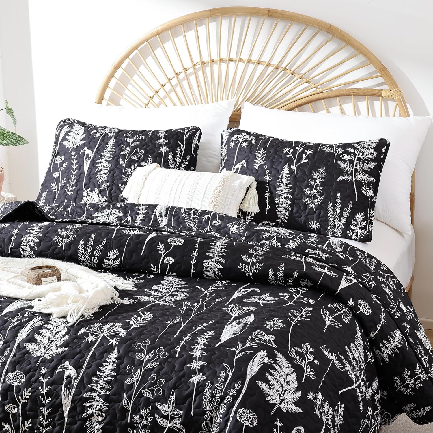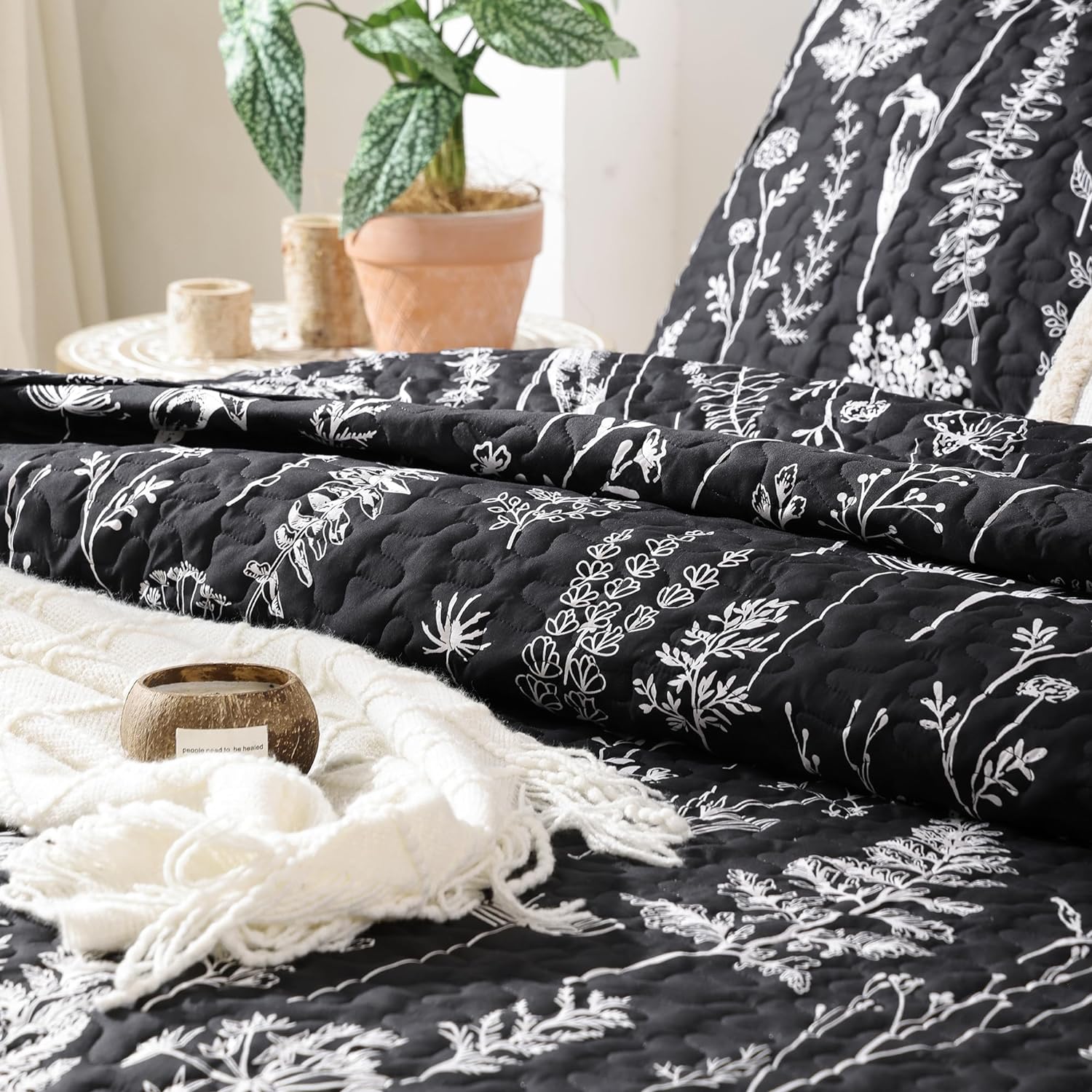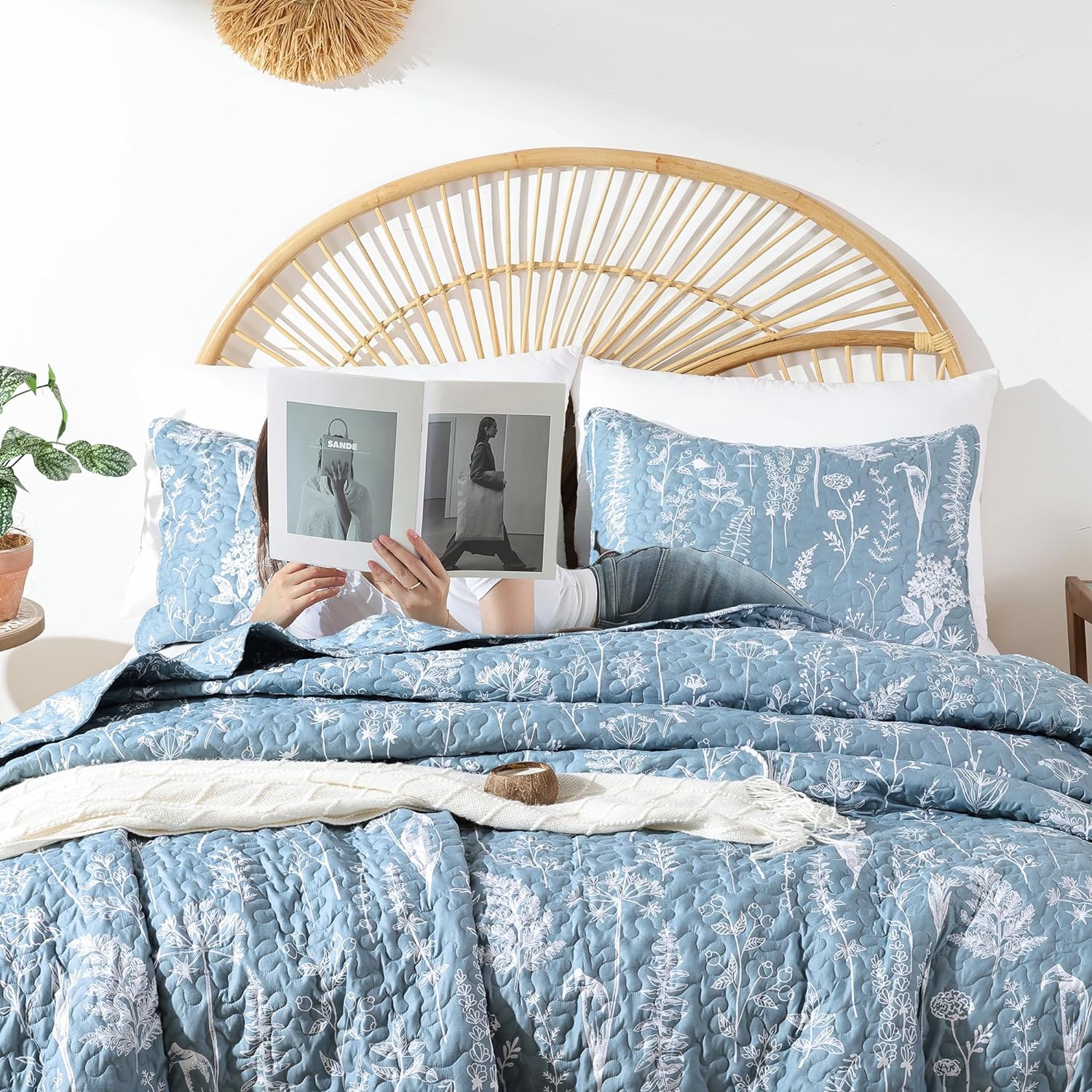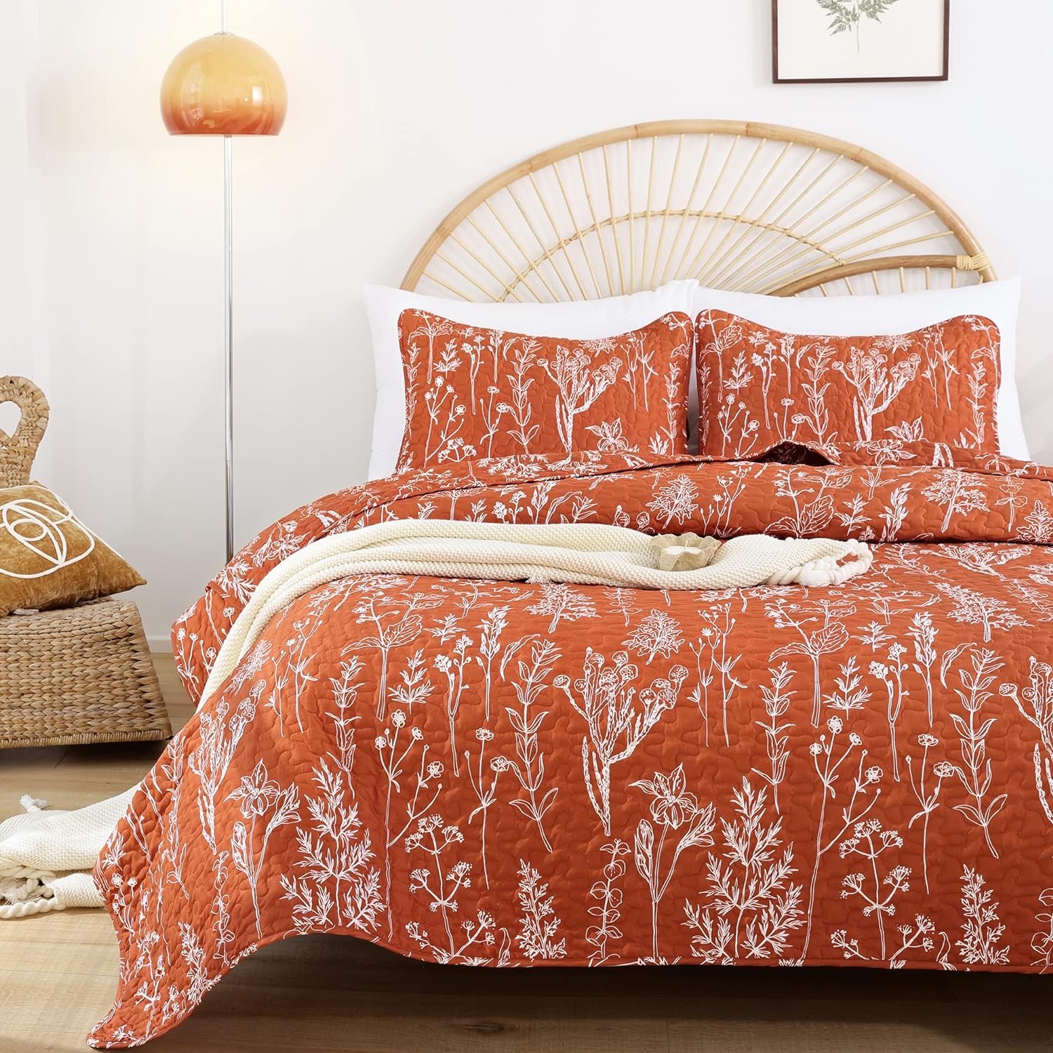 - 【UNIQUE DESIGN】: The quilts queen size is a double sided design with botanical style garden floral and leaves pattern printed on. The queen quilt set is reversible, you can change the side as you want. Vibrant floral quilt not only brighten your rooms, but also add stylish and modern elements to your room.