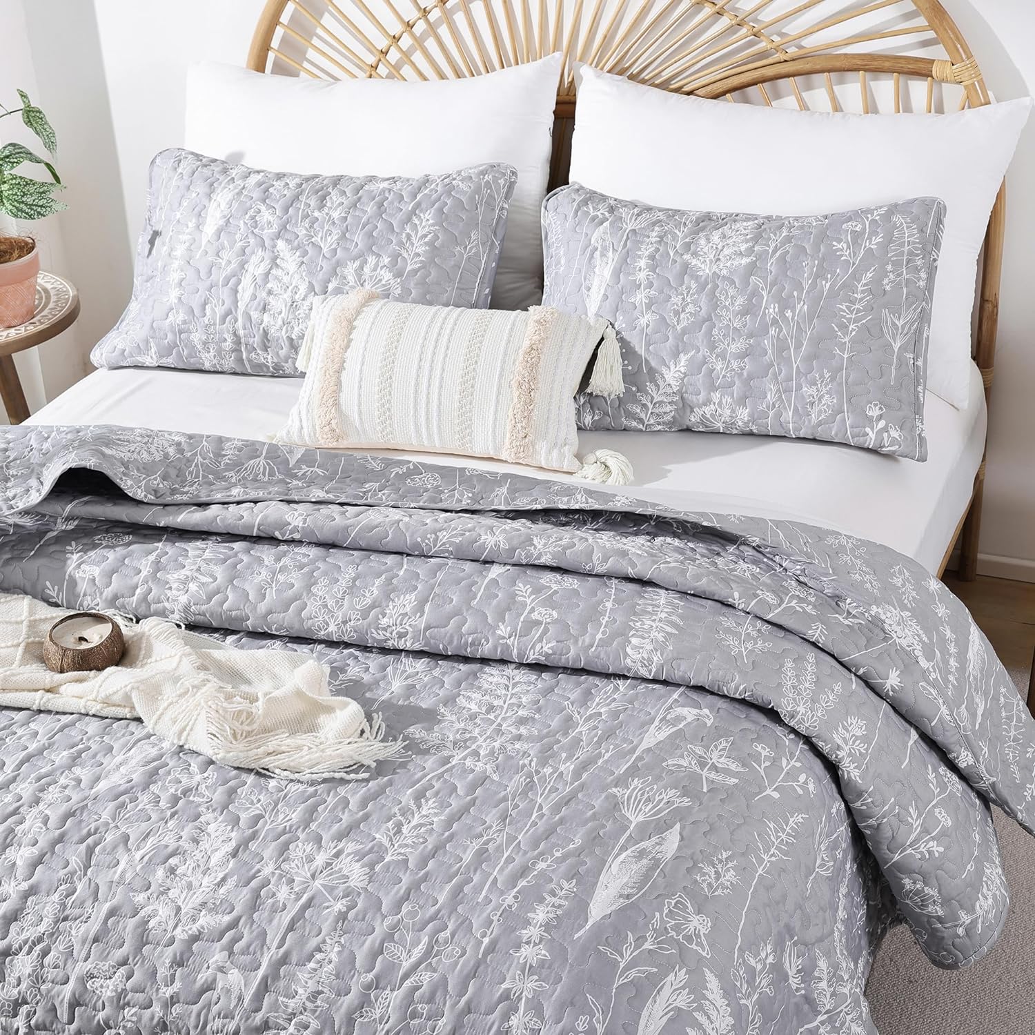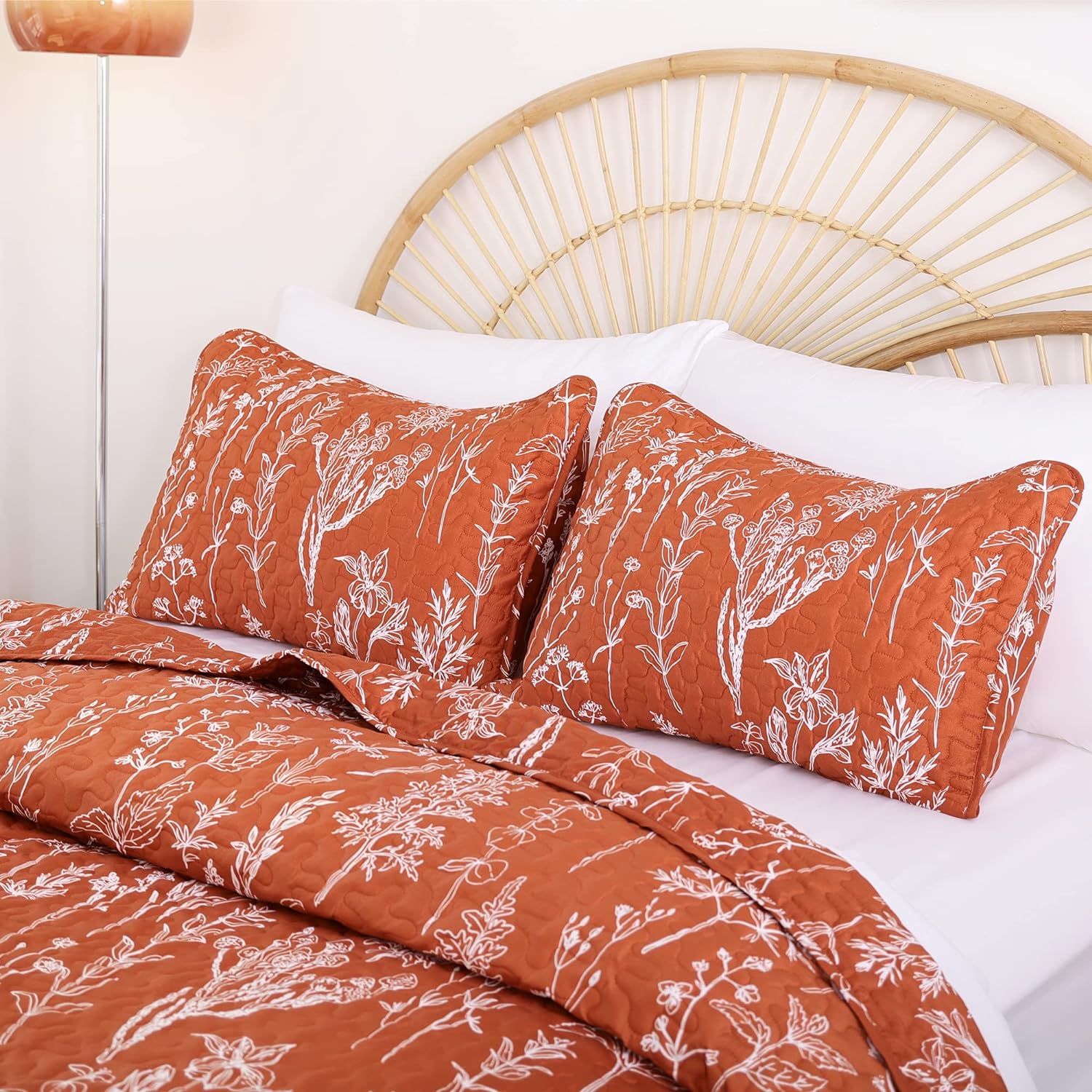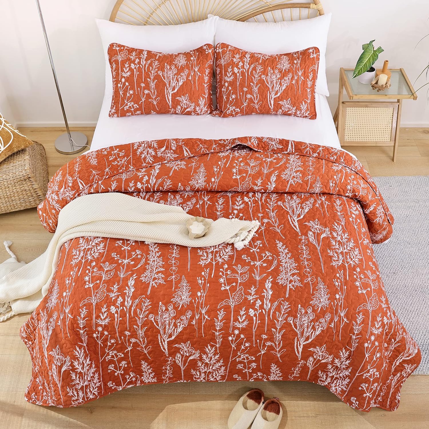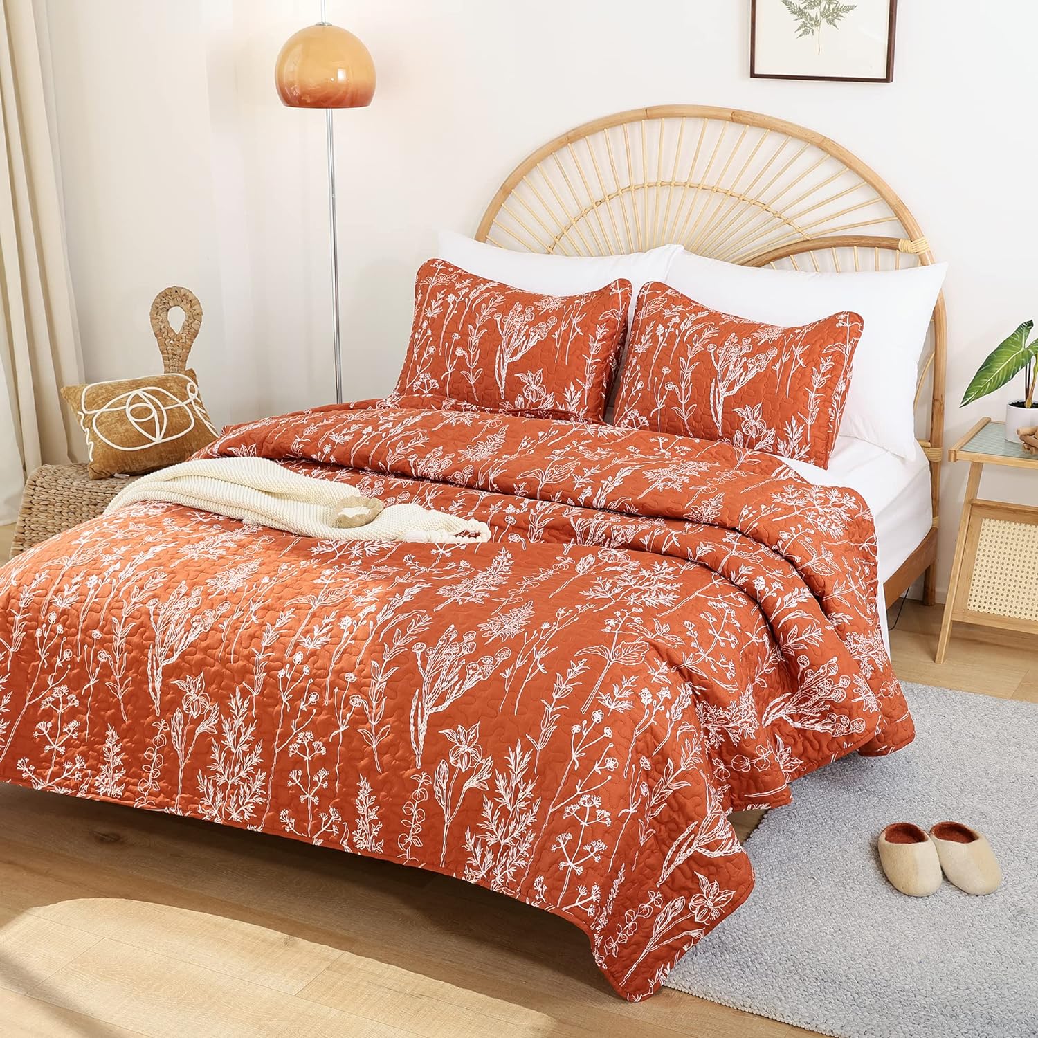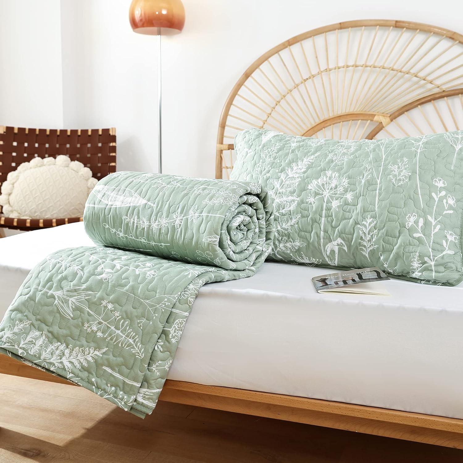 - 【UNIQUE DESIGN】: The quilts queen size is a double sided design with botanical style garden floral and leaves pattern printed on. The queen quilt set is reversible, you can change the side as you want. Vibrant floral quilt not only brighten your rooms, but also add stylish and modern elements to your room.
