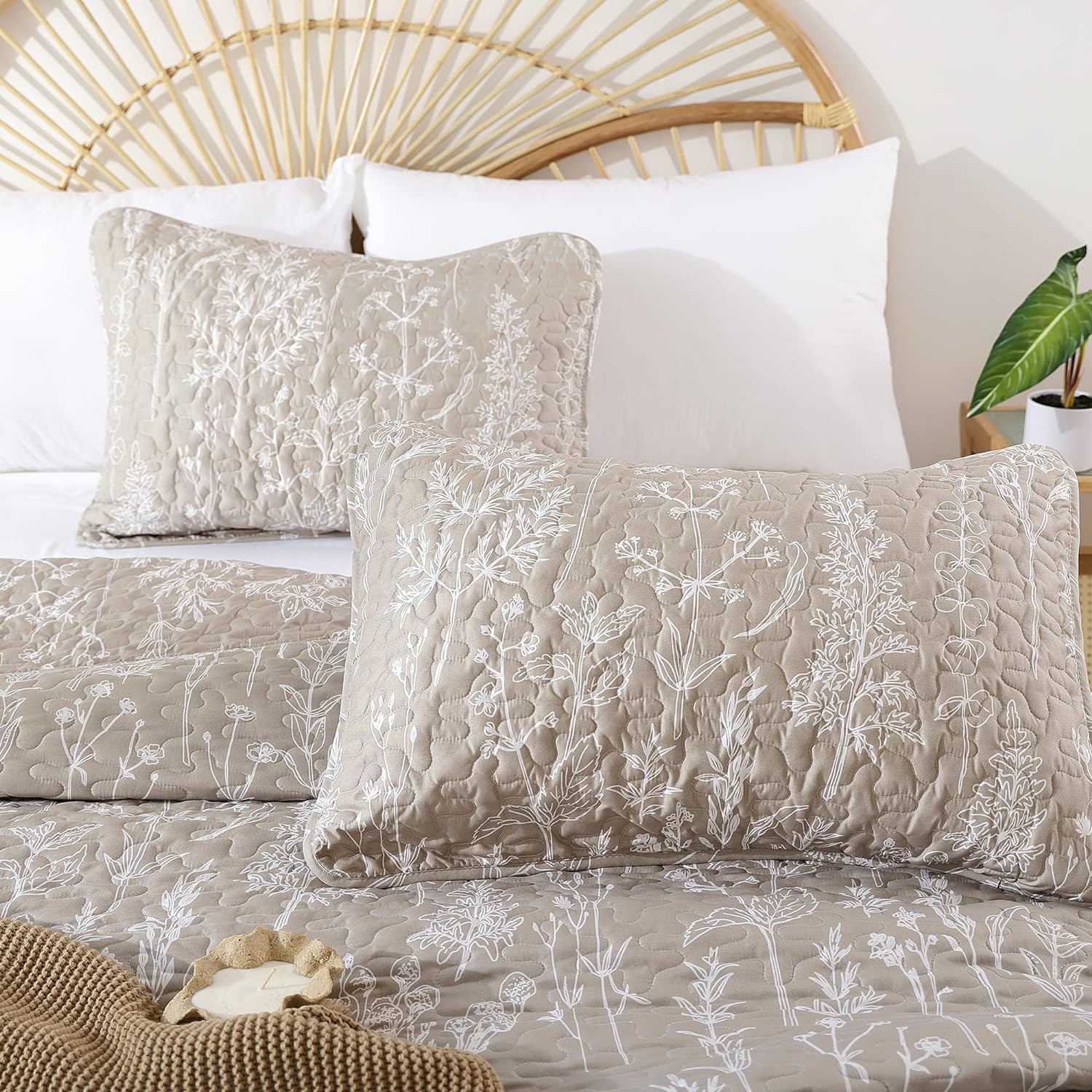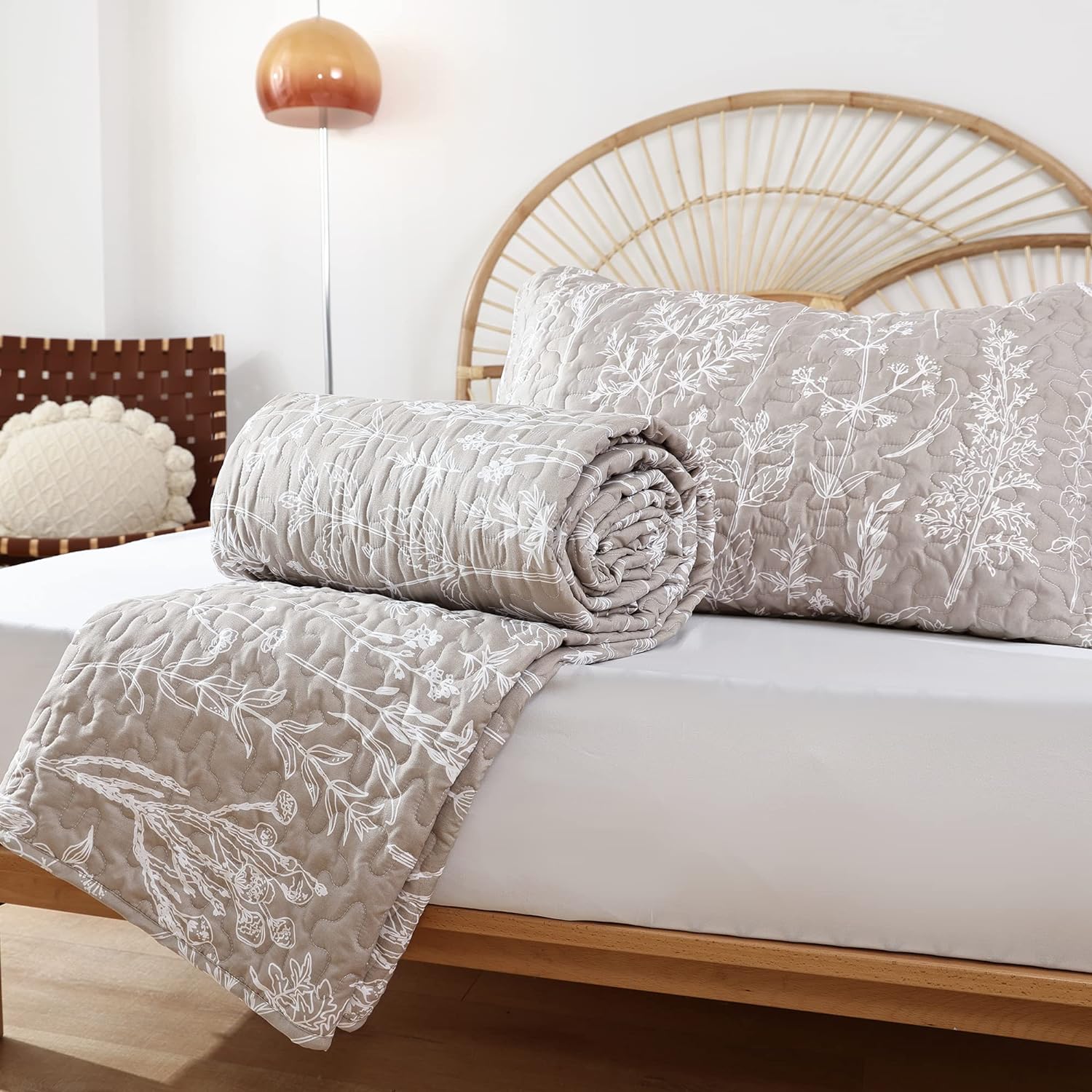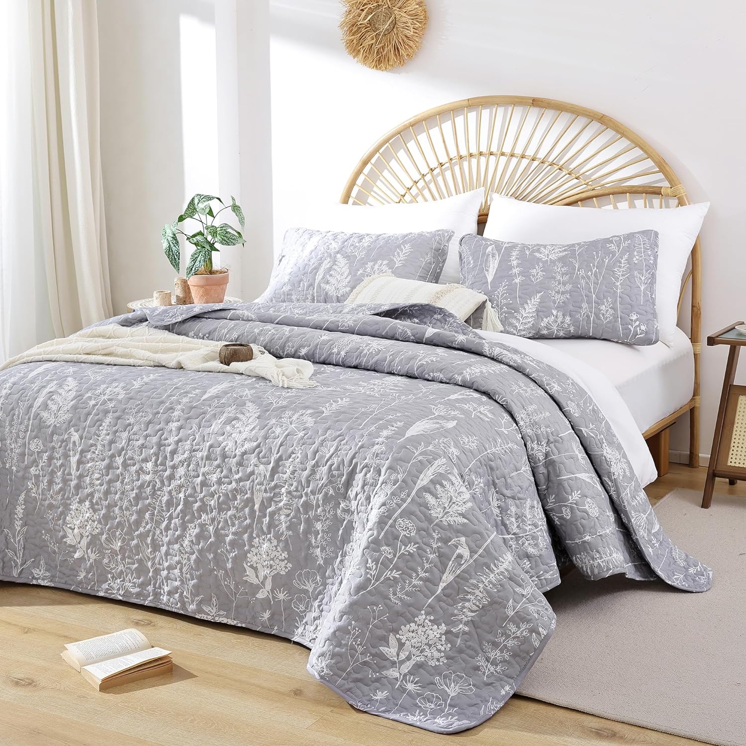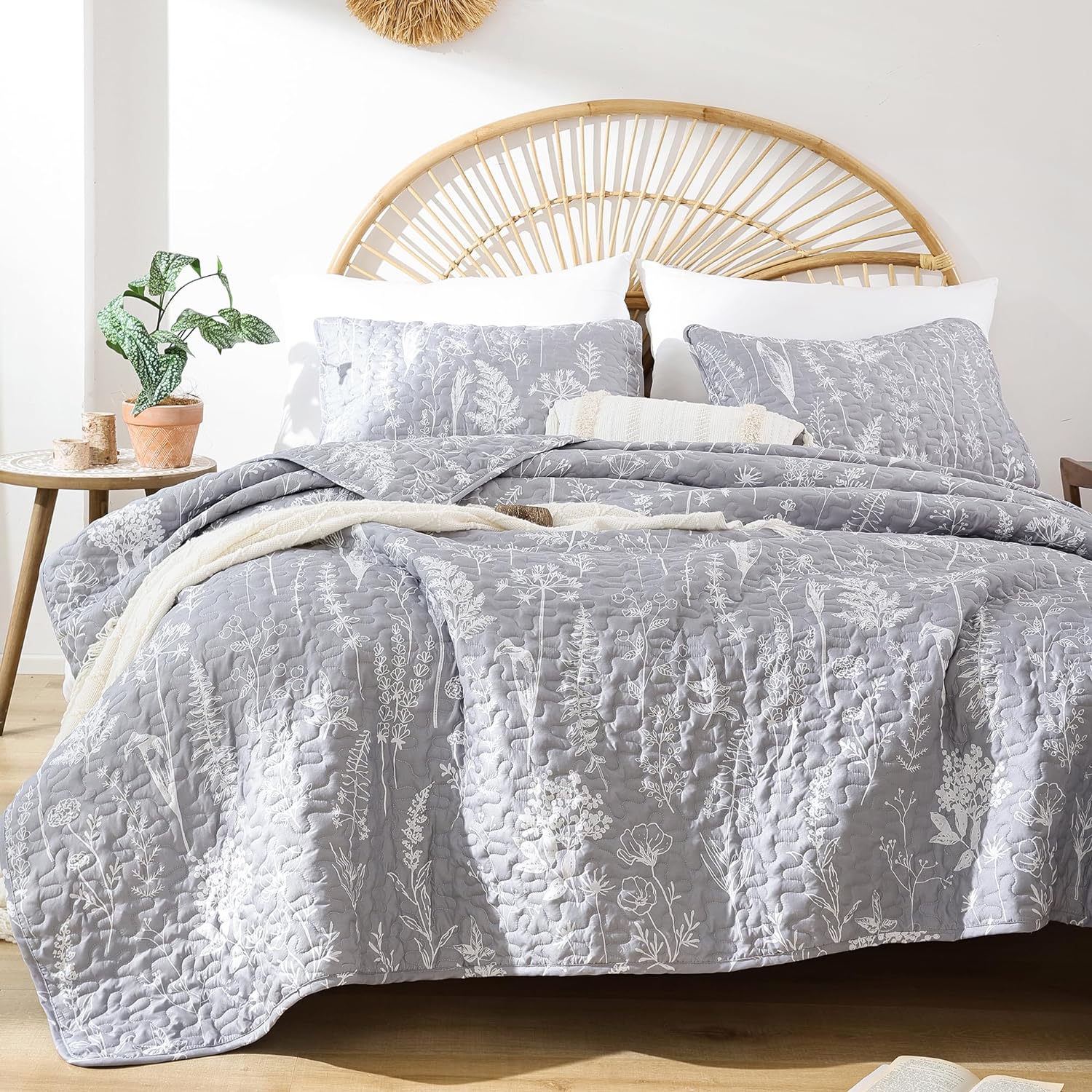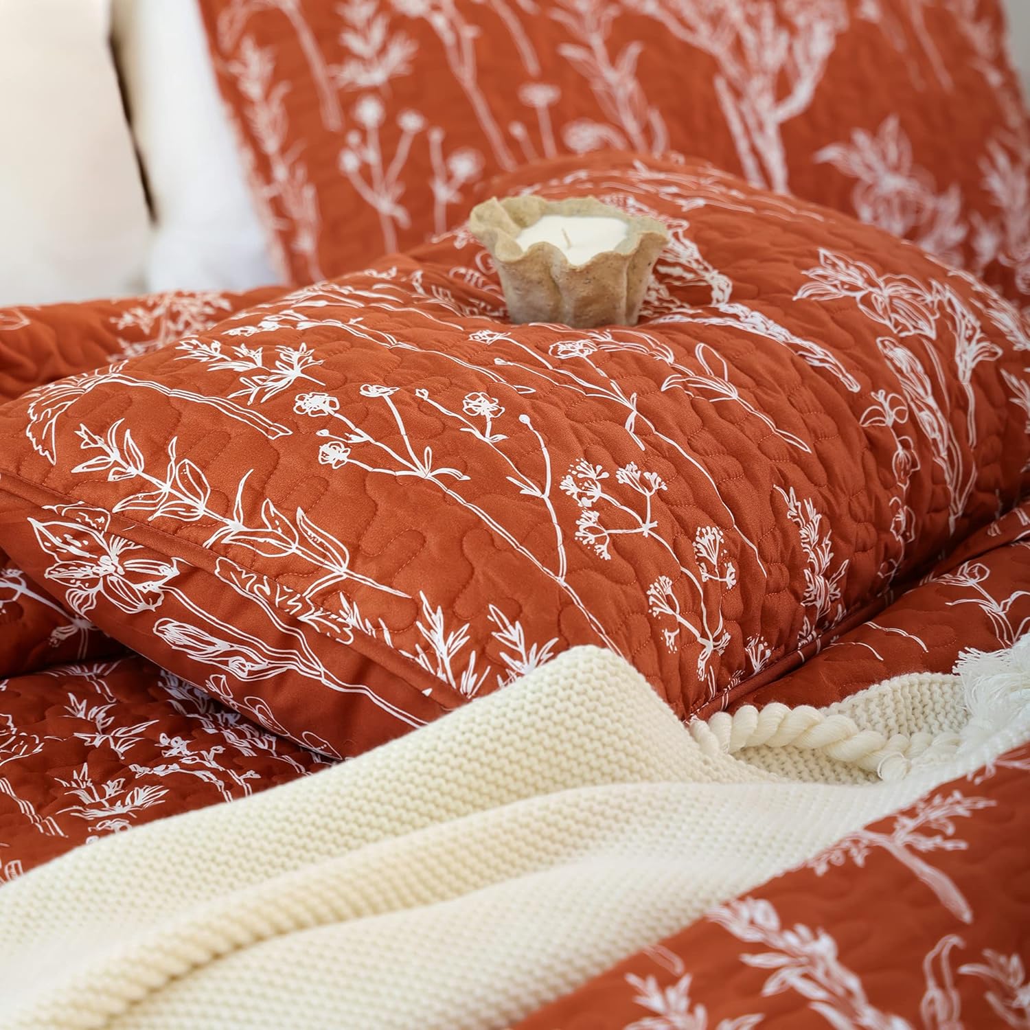 - 【UNIQUE DESIGN】: The quilts queen size is a double sided design with botanical style garden floral and leaves pattern printed on. The queen quilt set is reversible, you can change the side as you want. Vibrant floral quilt not only brighten your rooms, but also add stylish and modern elements to your room.