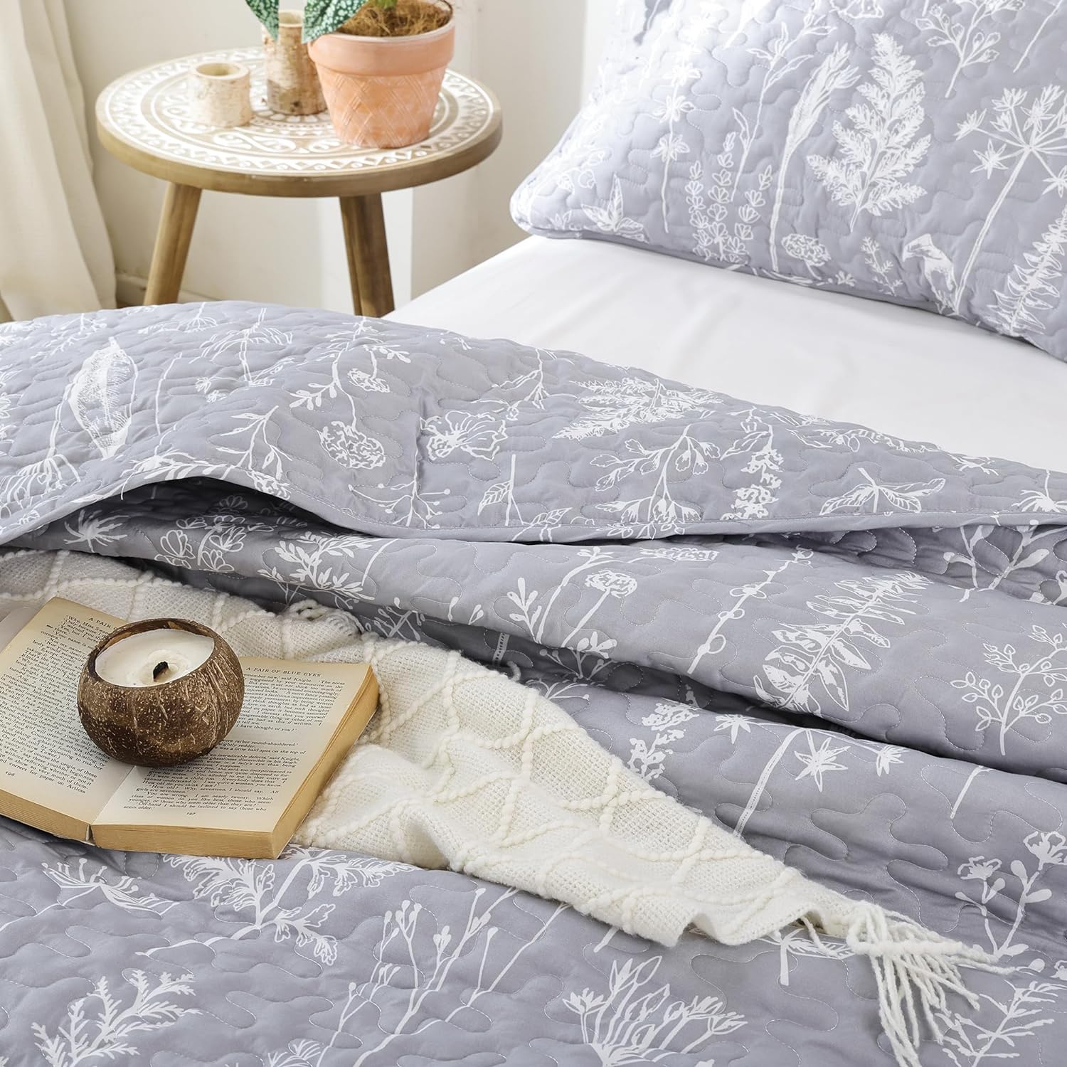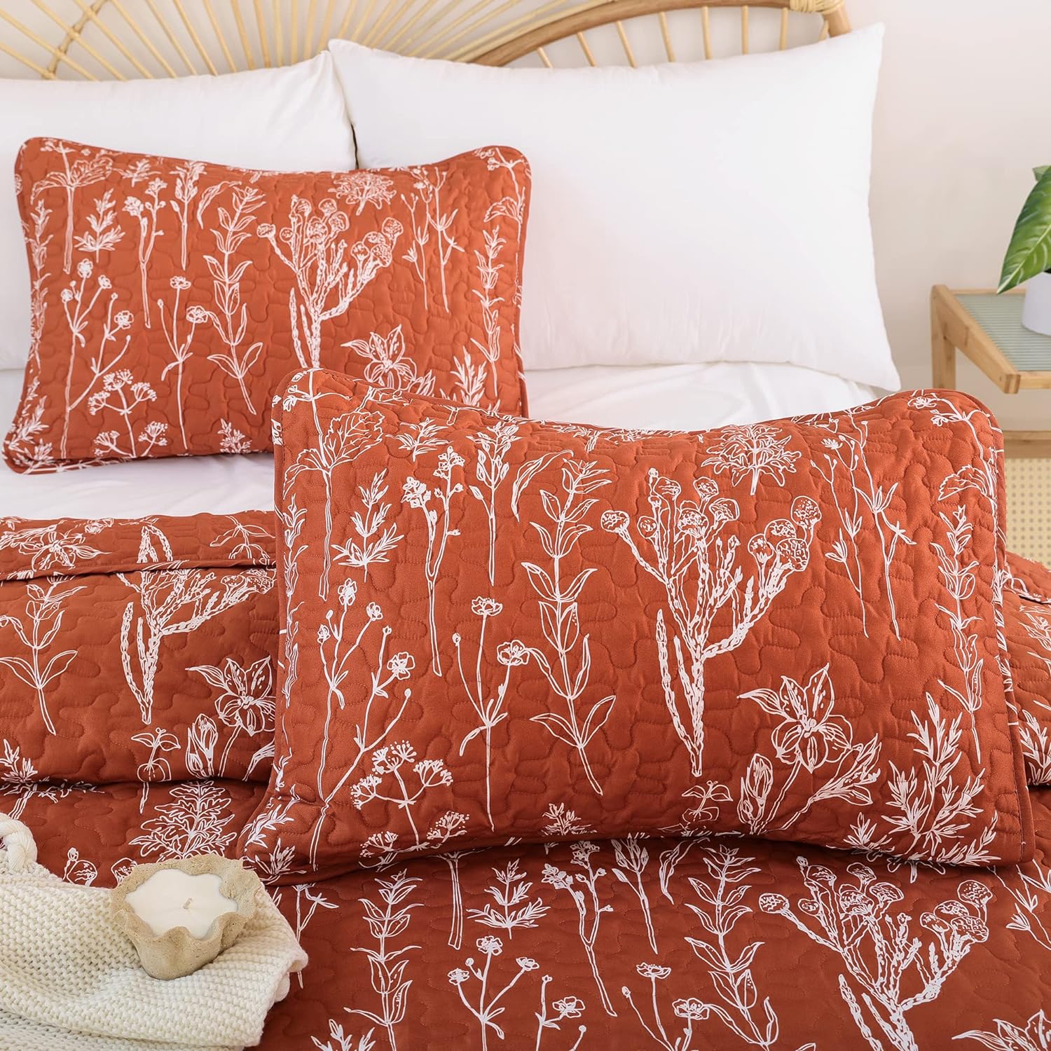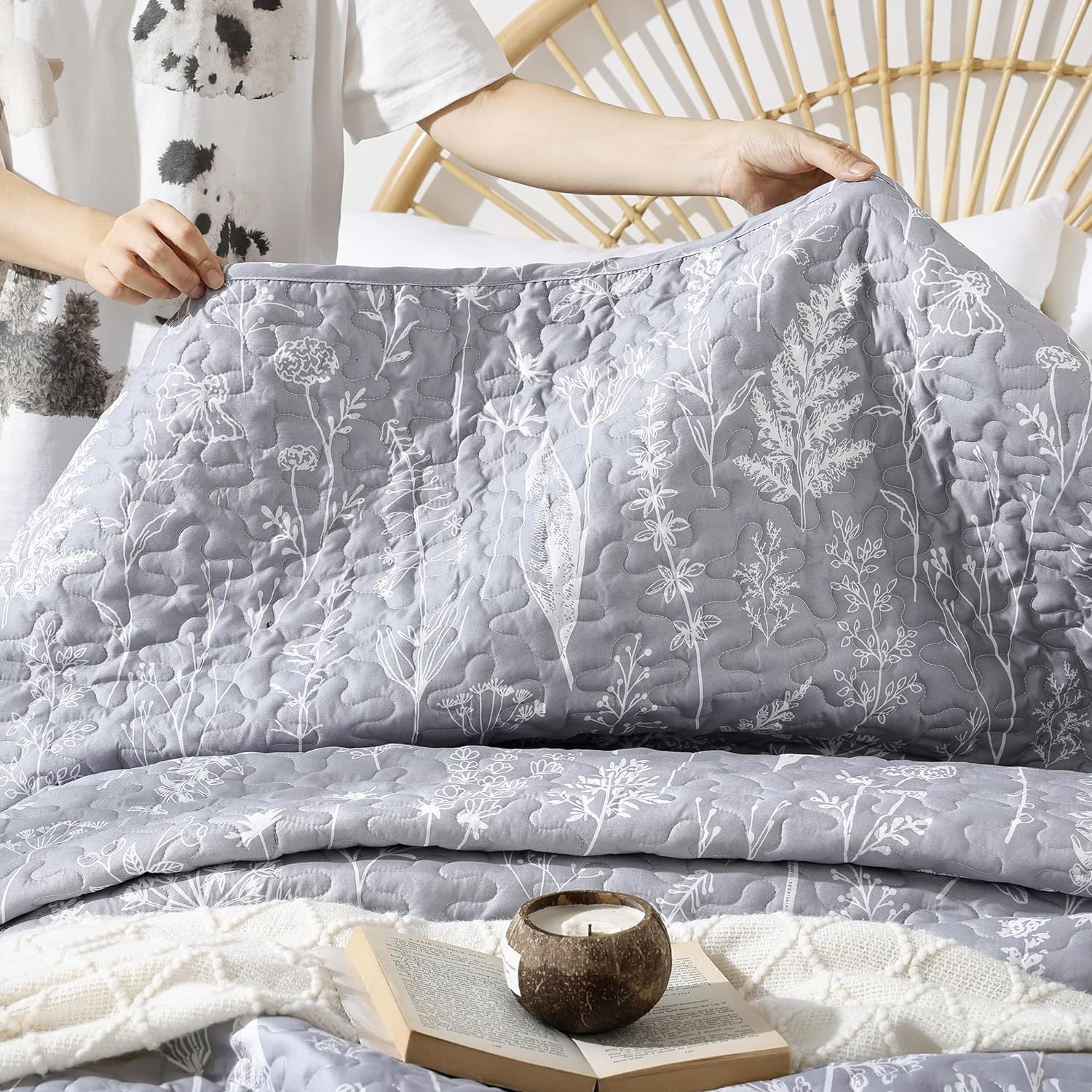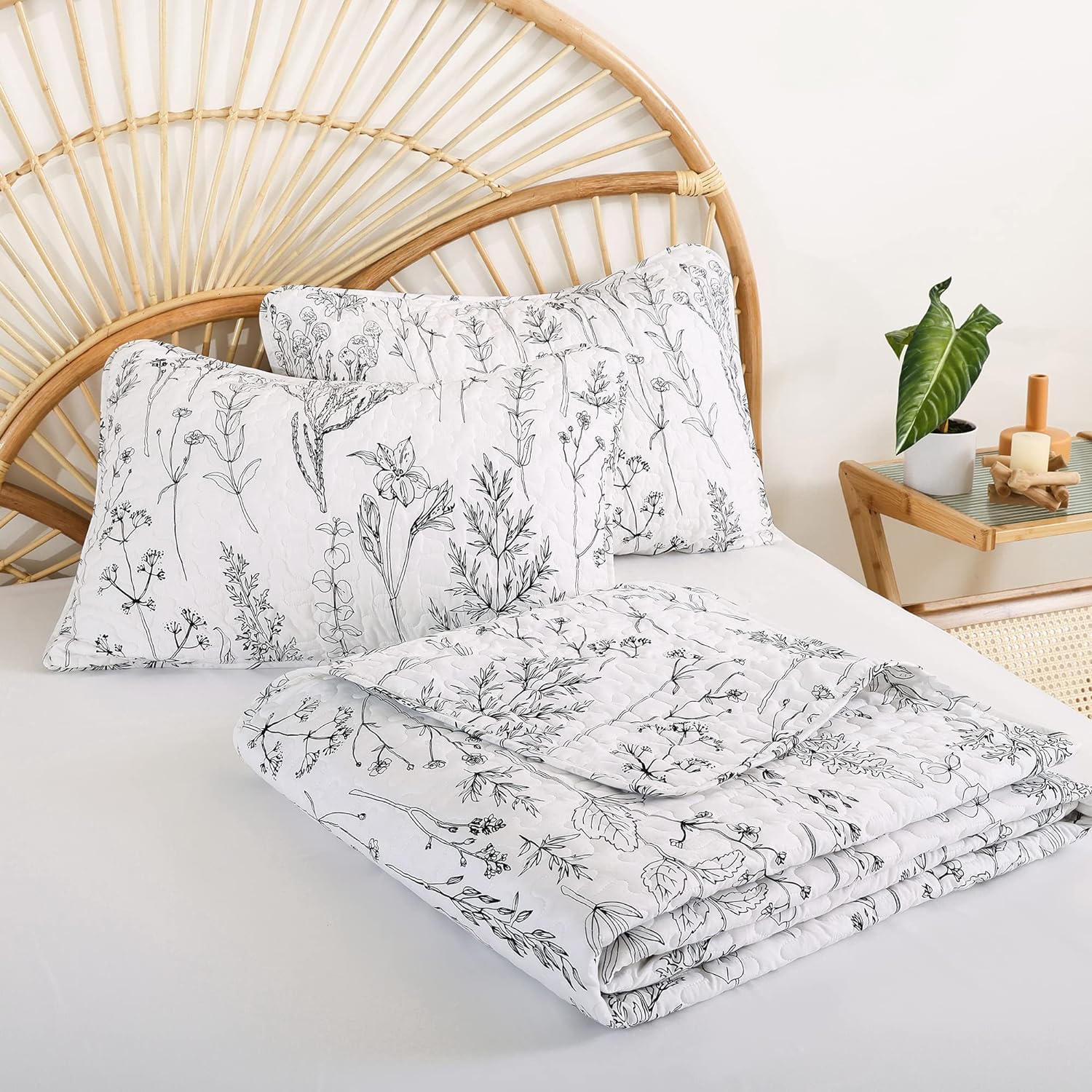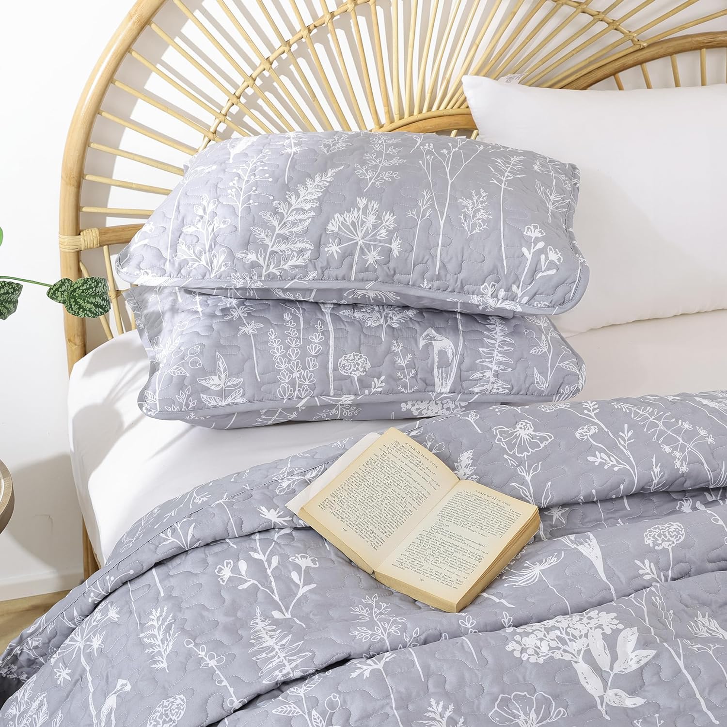 - 【SOFT & COMFORTABLE】: This floral quilt set is made with brushed microfiber material which is skin-friendly. The polyester quilt set is lightweight and you can feel the cloudy-like smooth. Our premium quilt set will greatly improve your sleep quality. The ultra softness ensure you relax after all day long work/study, make you enjoy your life.