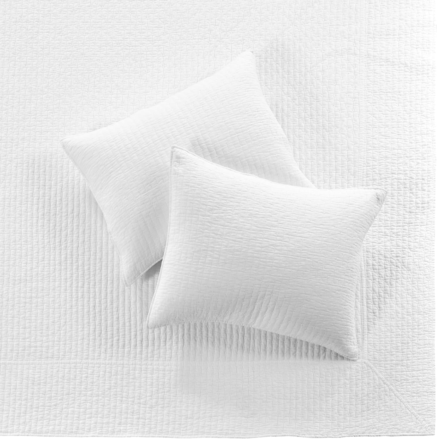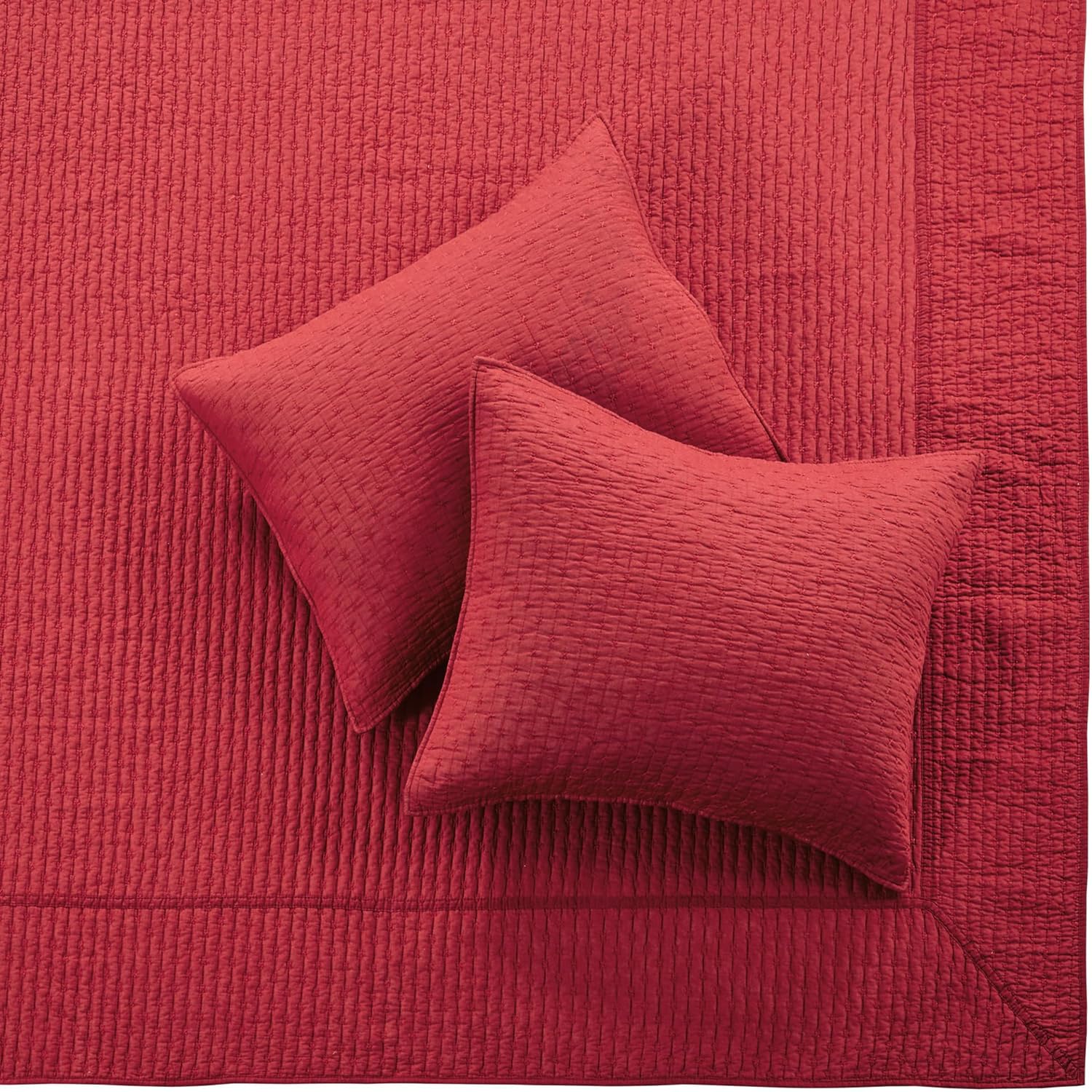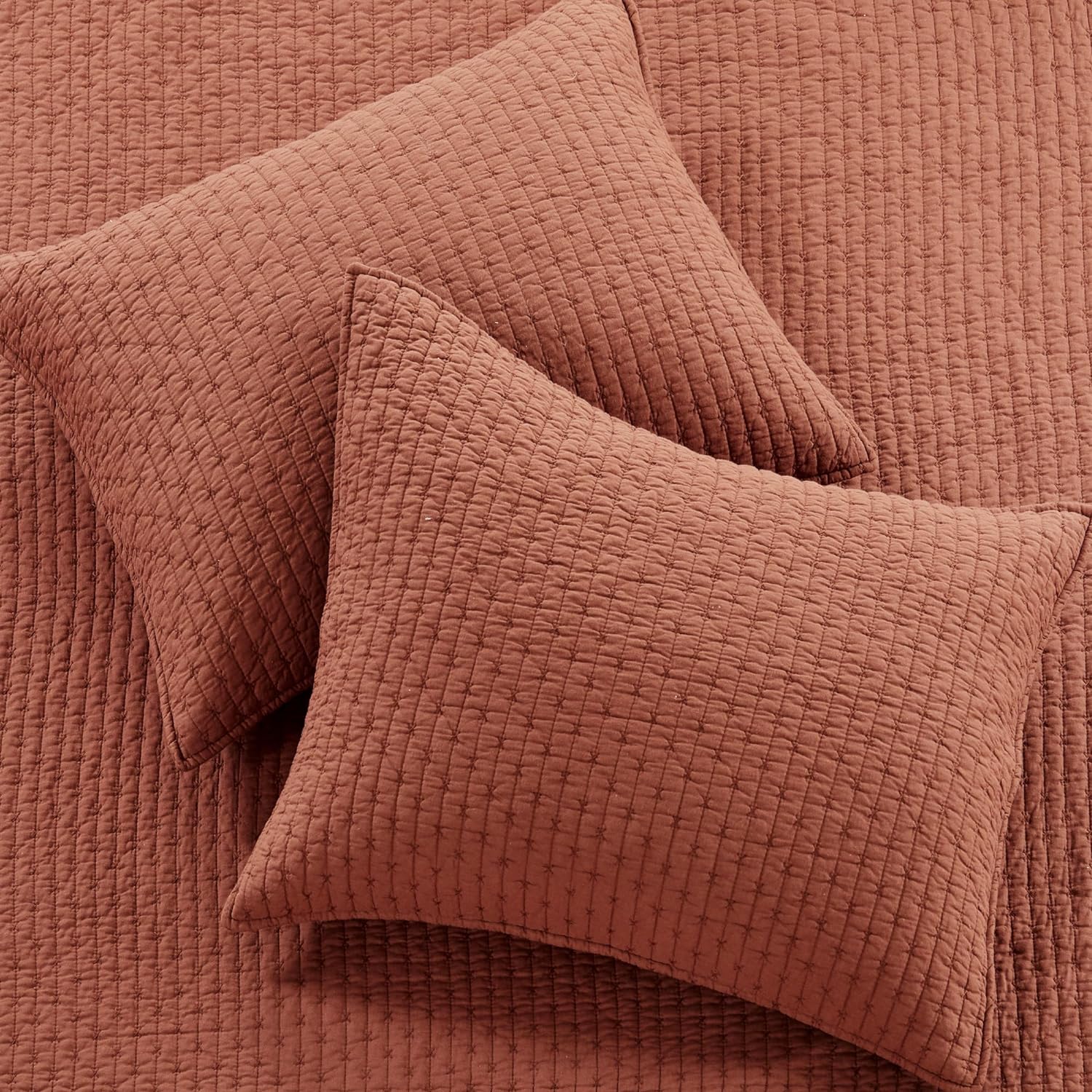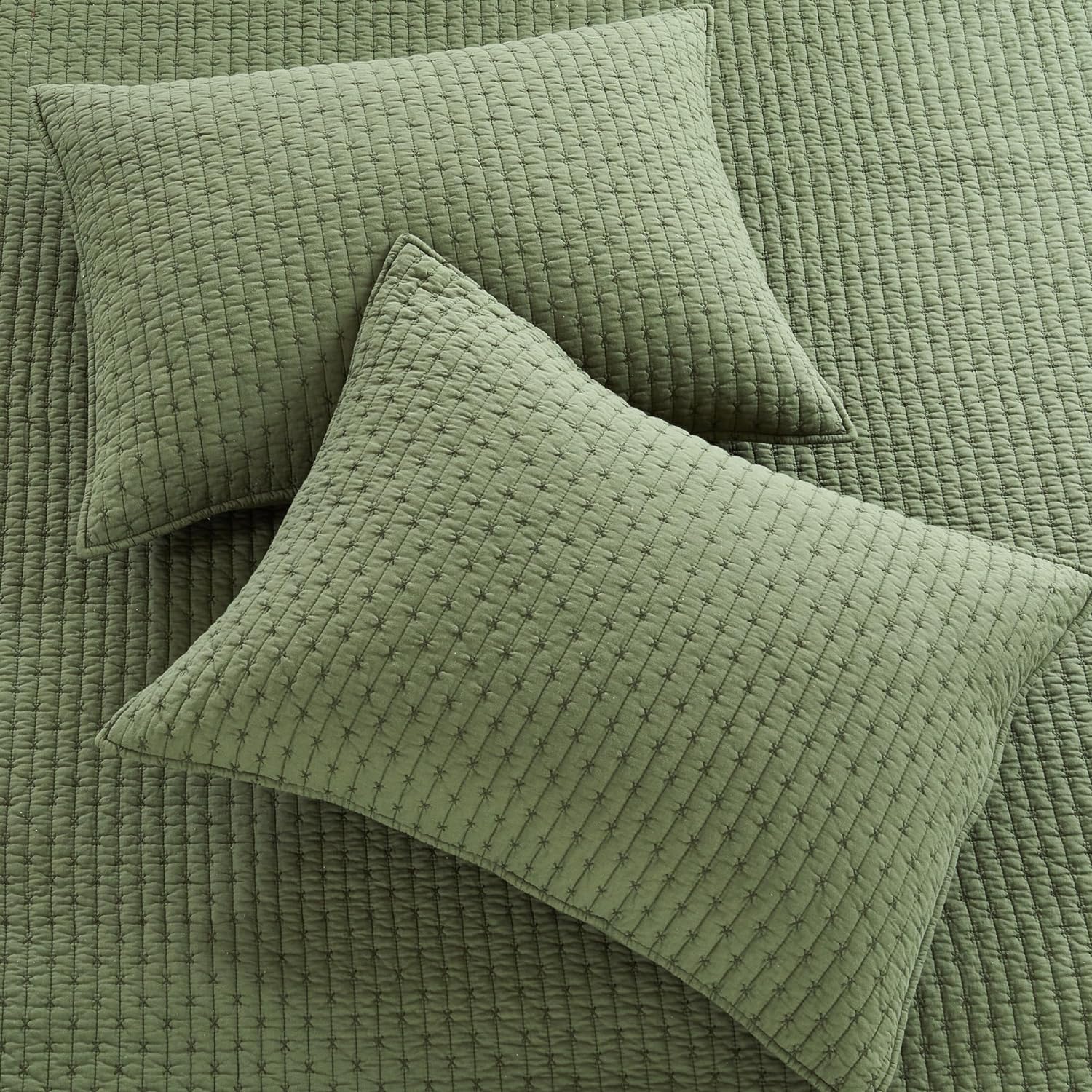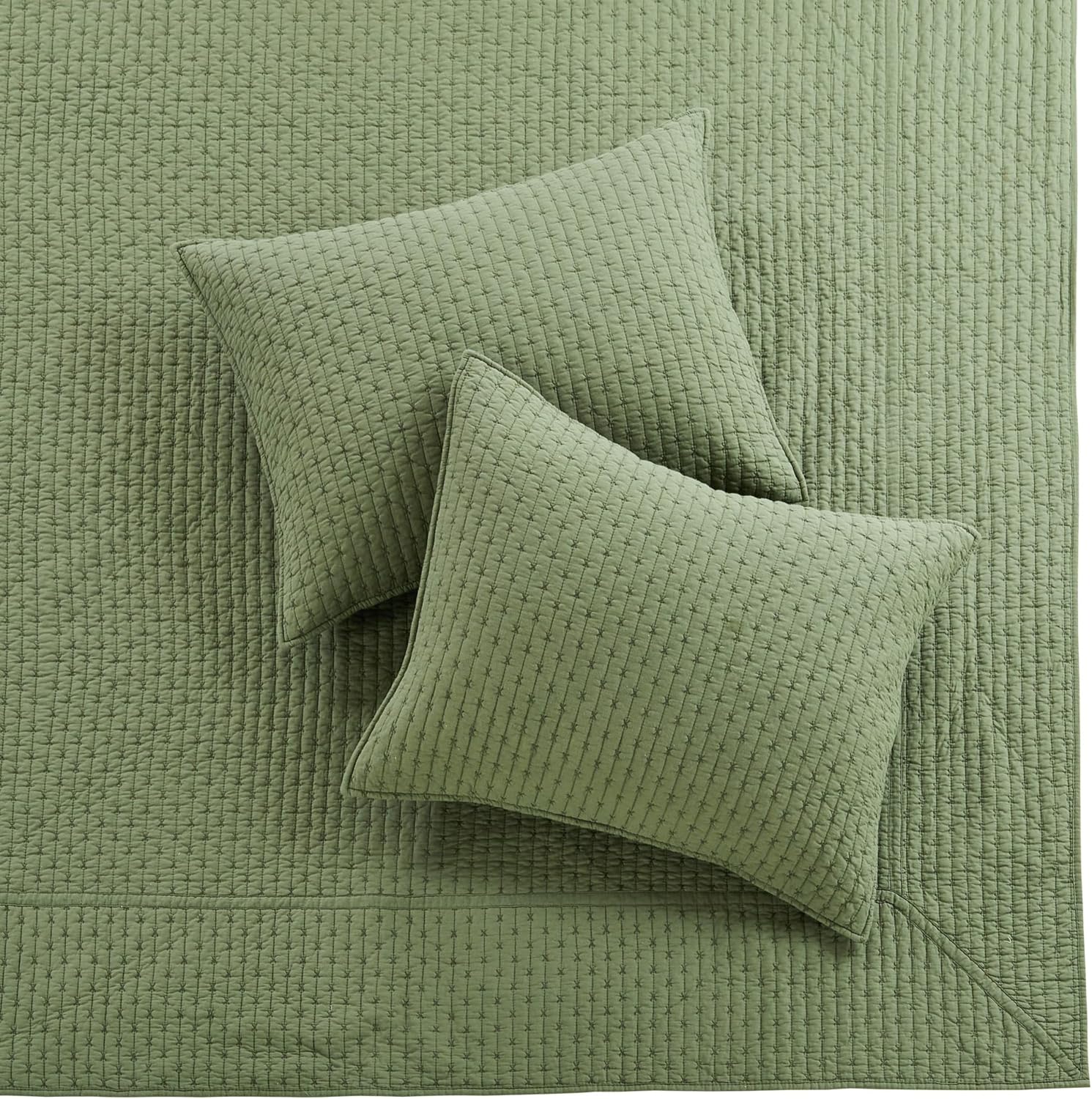 - THE CROSS STITCH TAUPE DESIGN: One of our most popular quilt sets, Cross Stitch Taupe is inspired by hand stitching techniques, with a taupe cross stitch quilt design and a charming reverse pattern of the same design. A bound border provides contrast and texture to complete the look. The matching shams are randomly cut from the same fabric as the quilt, making each sham unique and not identical to any other sham.