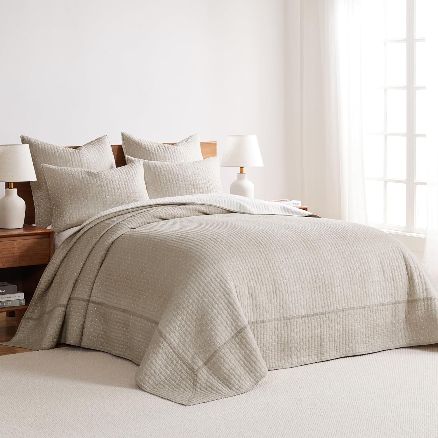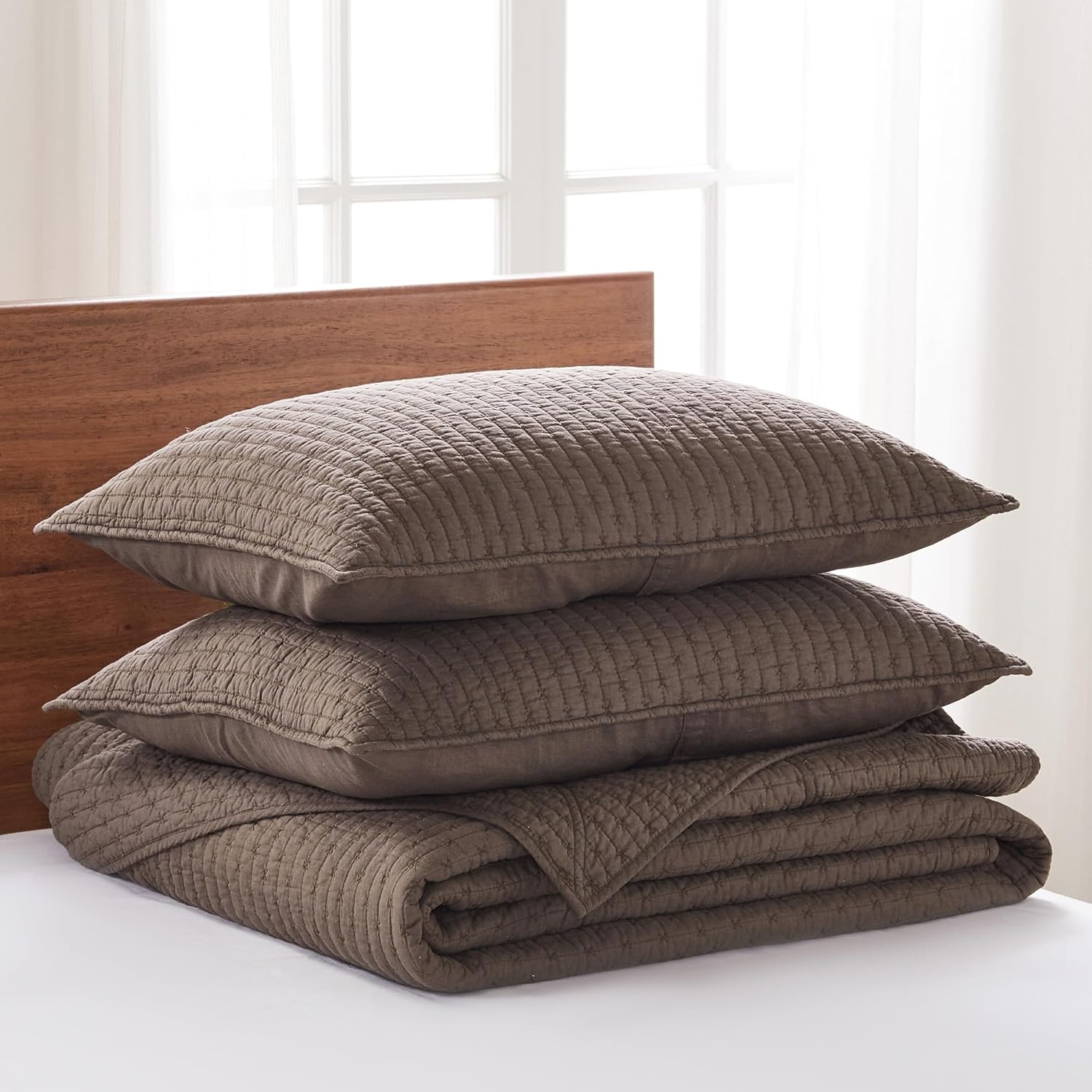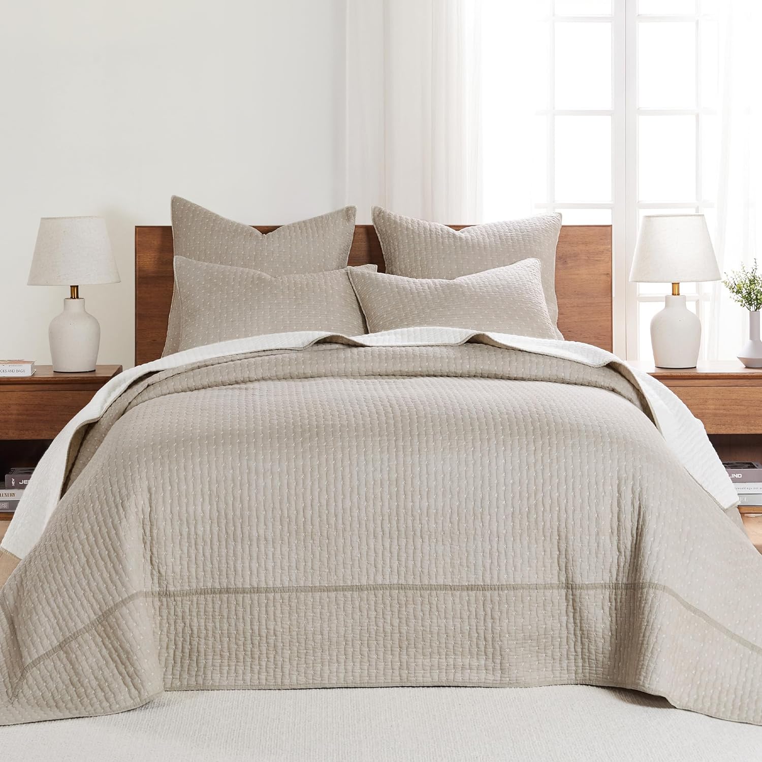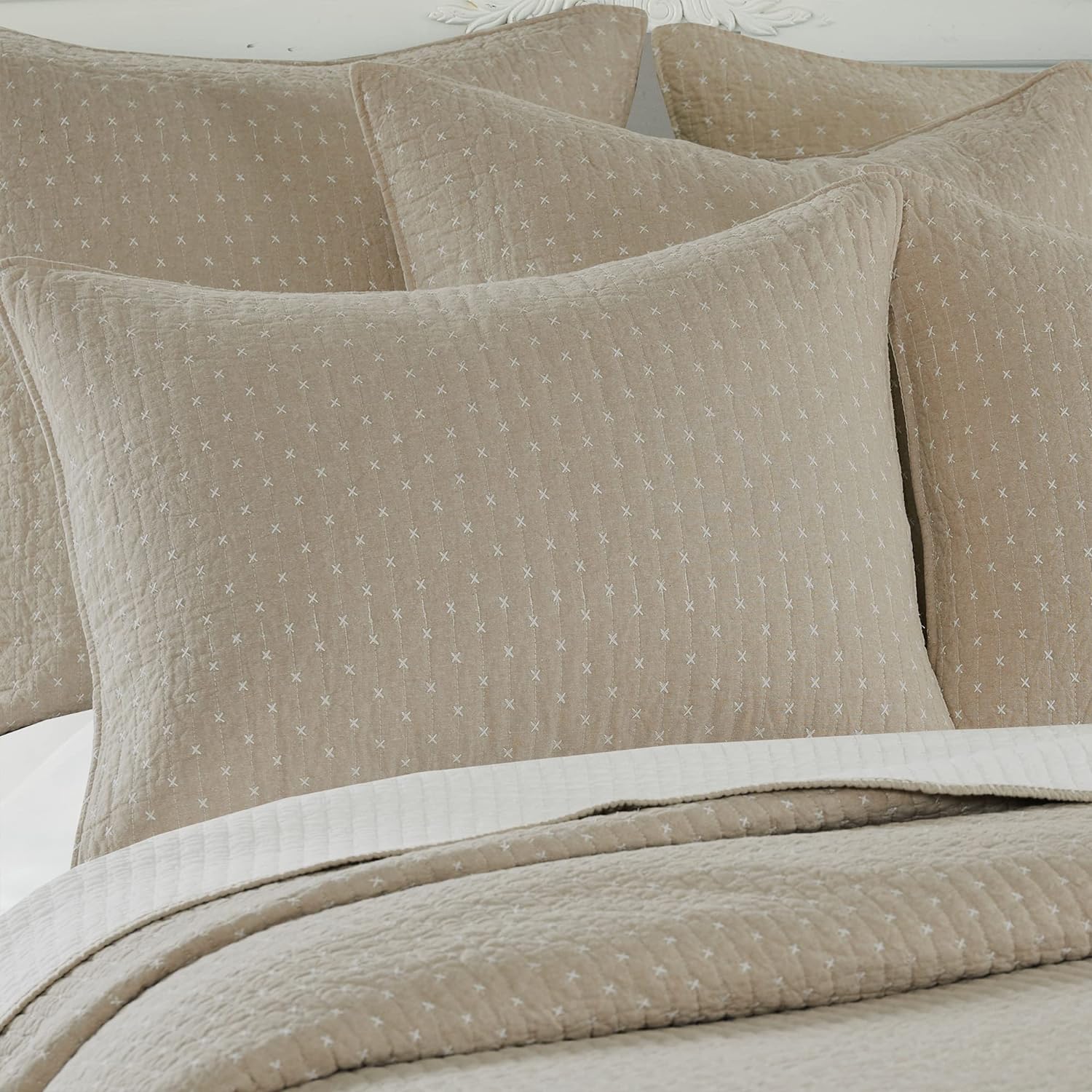 - SOFT AND COMFORTABLE LUXURY: Made from 100% cotton and filled with a cotton rich filler (that includes polyester and other fibers), this quilt will never feel heavy, stiff or uncomfortable, the Cross Stitch Taupe quilt and pillow sham set has an ultra soft feel that you'll simply love. Our quilt is very generously sized (106x92in.) to give your bedroom a feeling of comfort and luxury.