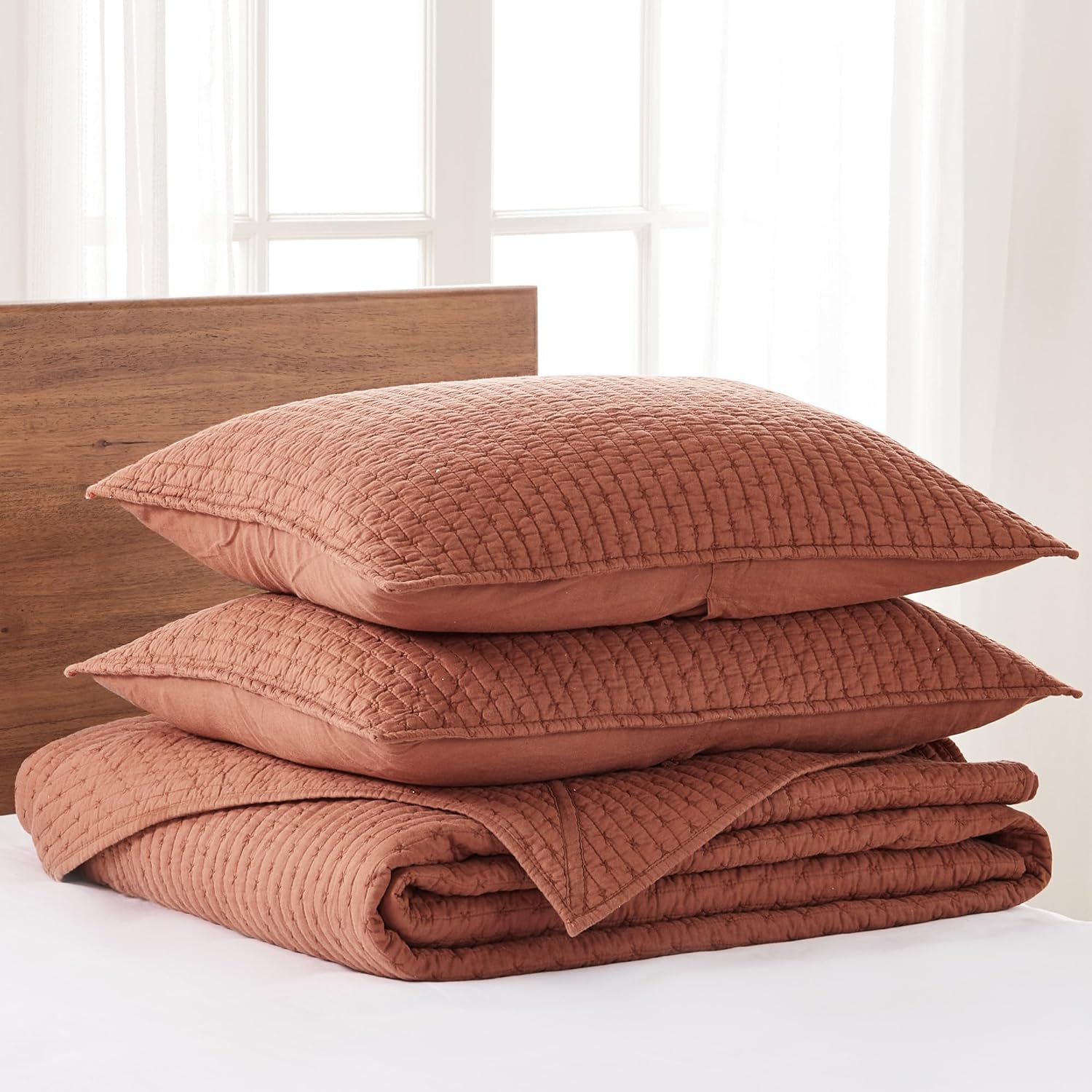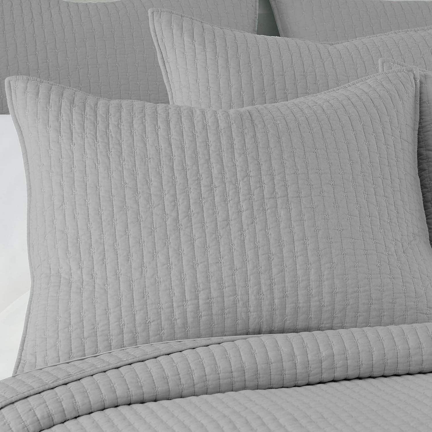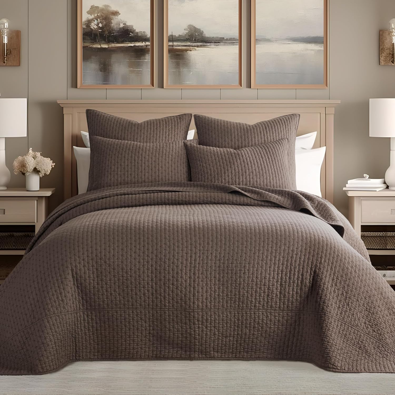 - SOFT AND COMFORTABLE LUXURY: Made from 100% cotton and filled with a cotton rich filler (that includes polyester and other fibers), this quilt will never feel heavy, stiff or uncomfortable, the Cross Stitch Taupe quilt and pillow sham set has an ultra soft feel that you'll simply love. Our quilt is very generously sized (106x92in.) to give your bedroom a feeling of comfort and luxury.