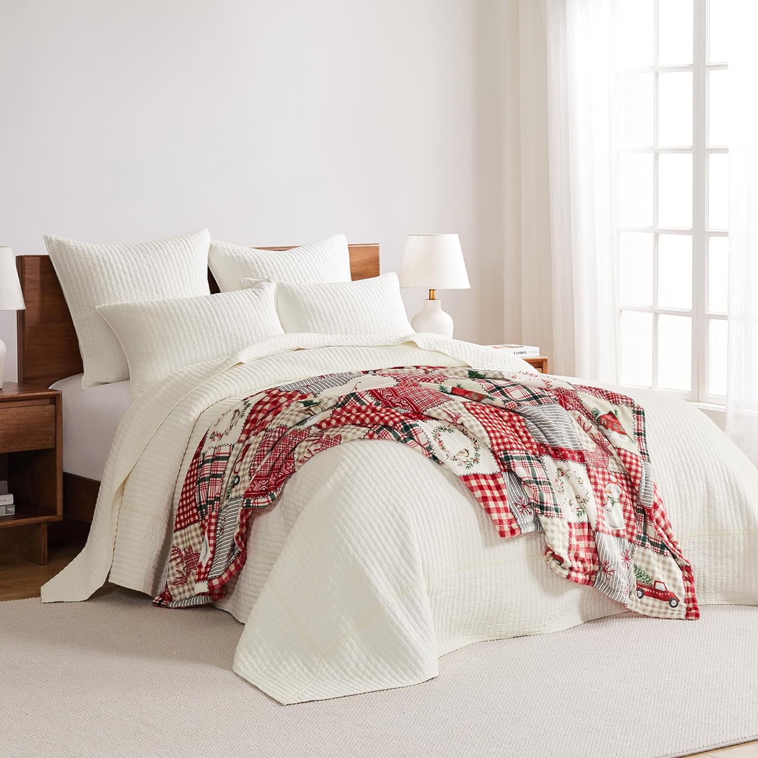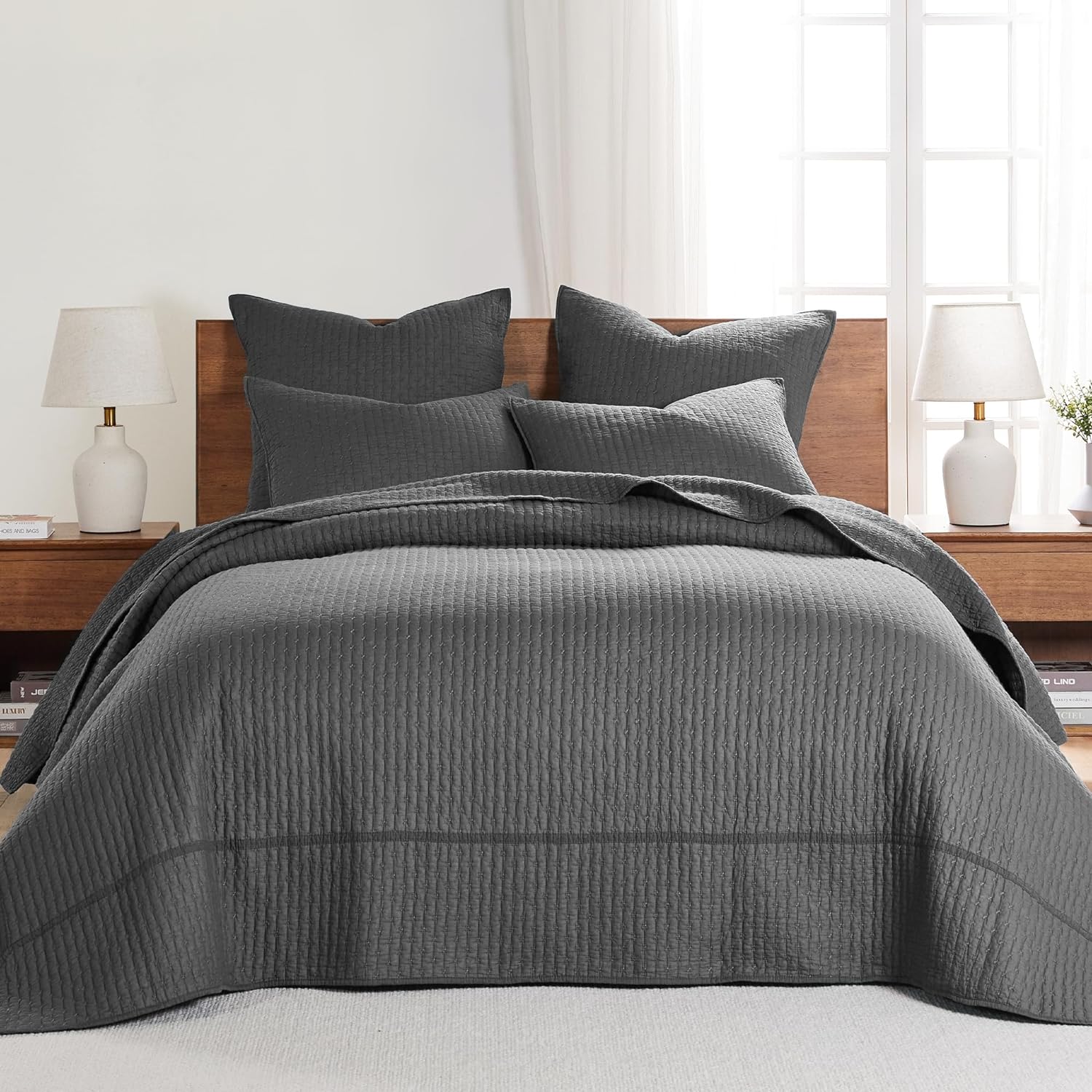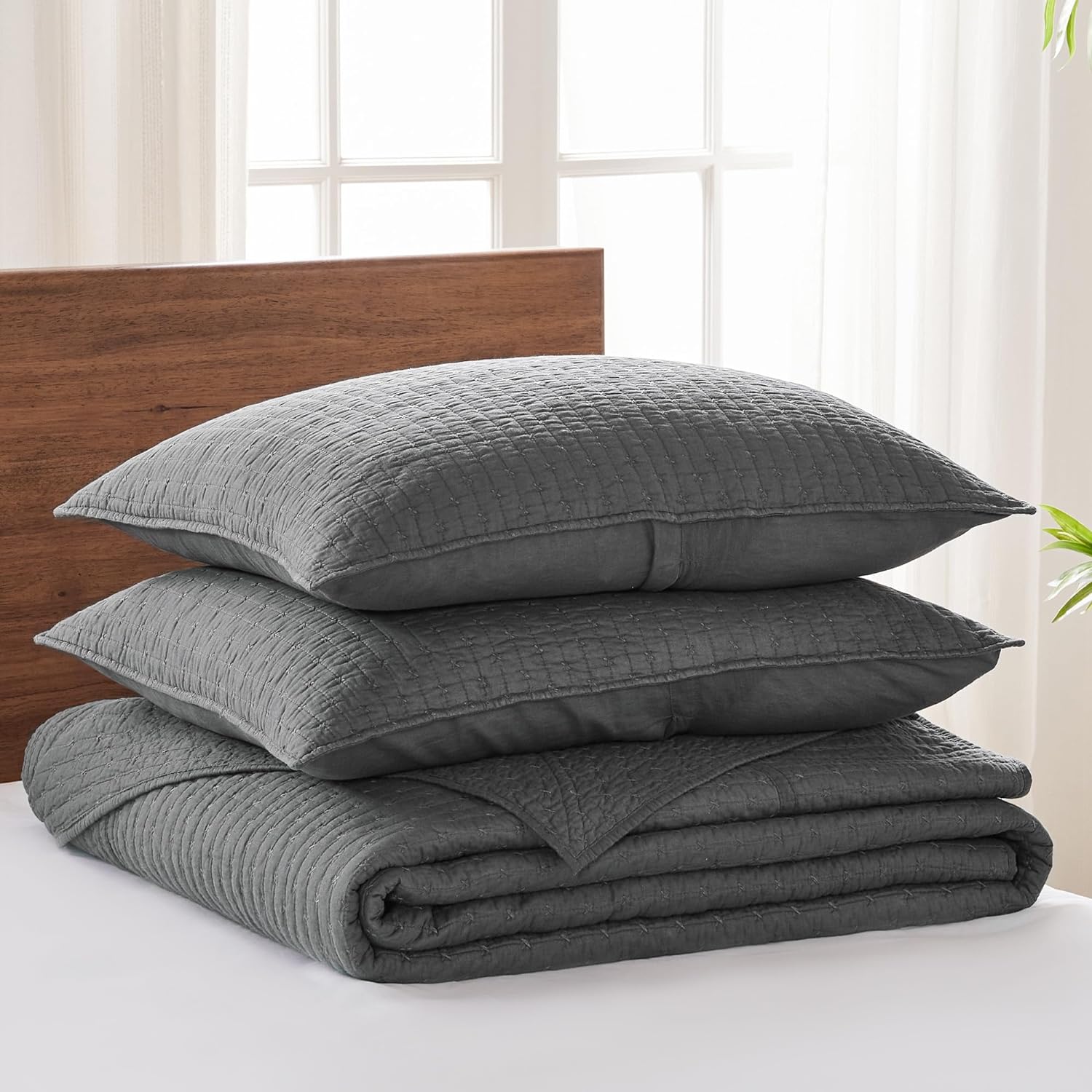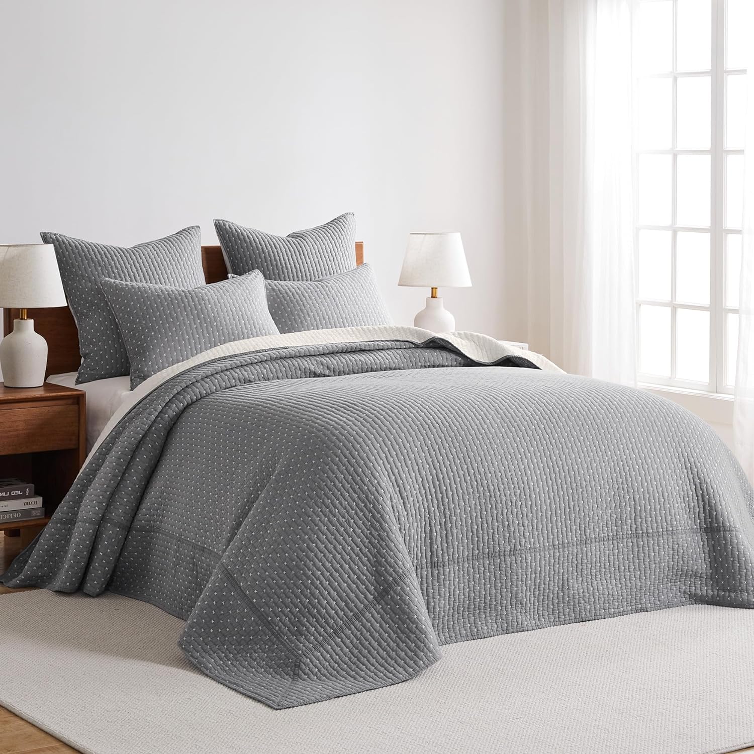 - SOFT AND COMFORTABLE LUXURY: Made from 100% cotton and filled with a cotton rich filler (that includes polyester and other fibers), this quilt will never feel heavy, stiff or uncomfortable, the Cross Stitch Taupe quilt and pillow sham set has an ultra soft feel that you'll simply love. Our quilt is very generously sized (106x92in.) to give your bedroom a feeling of comfort and luxury.
