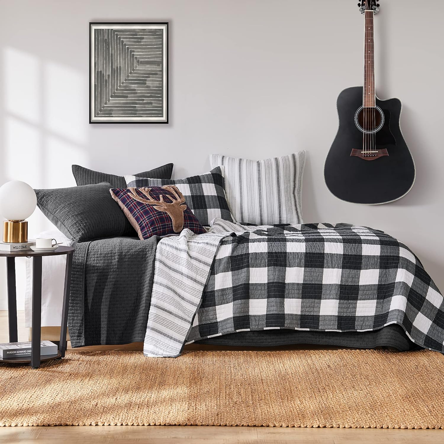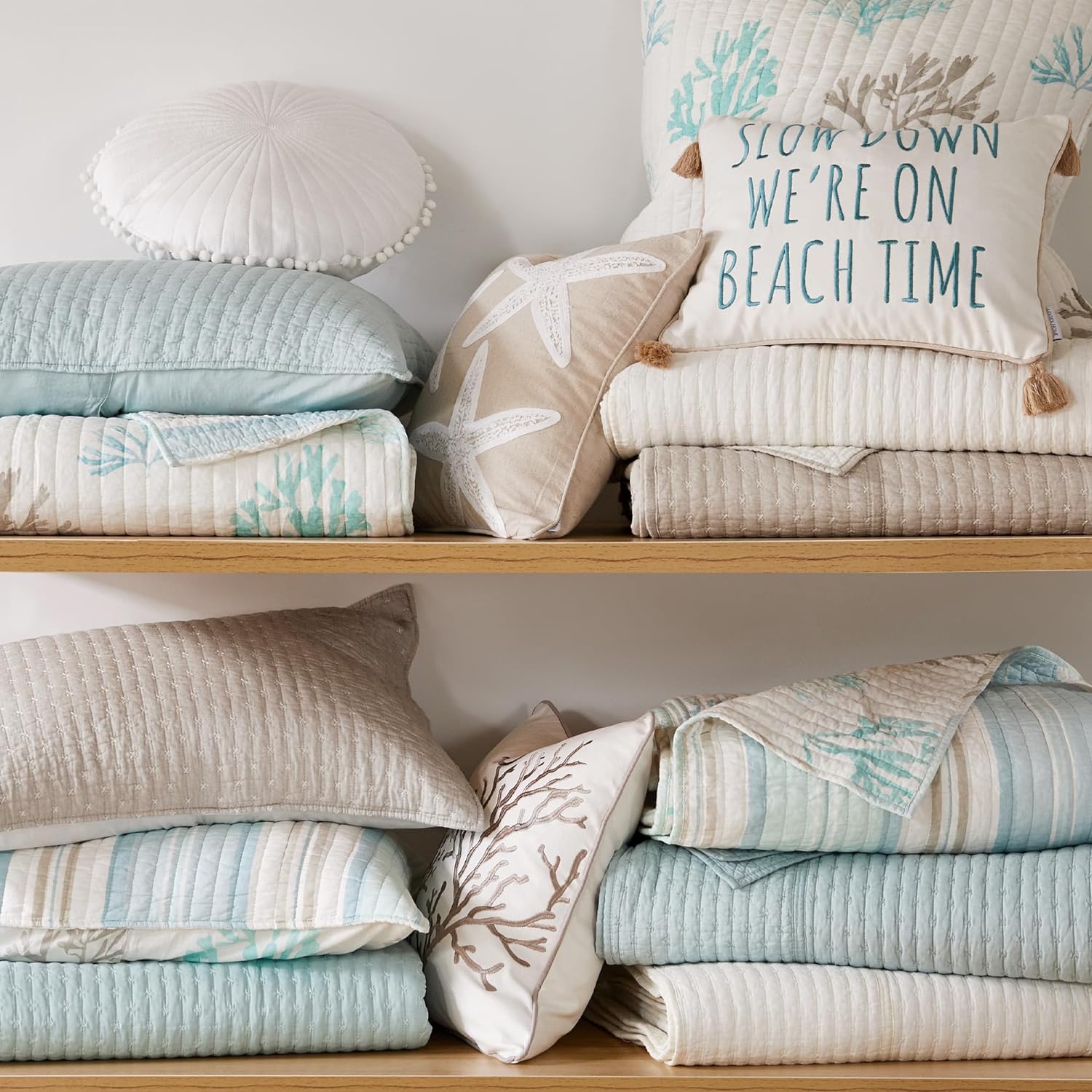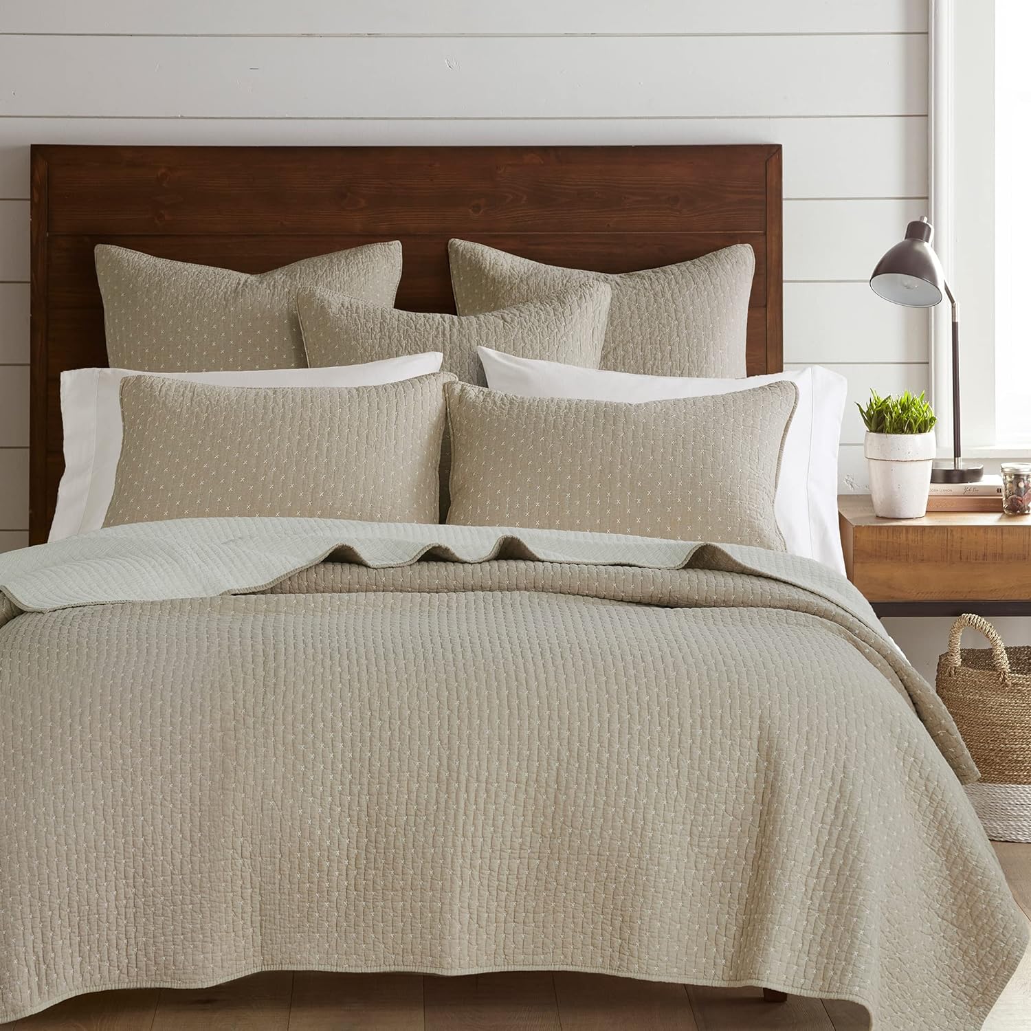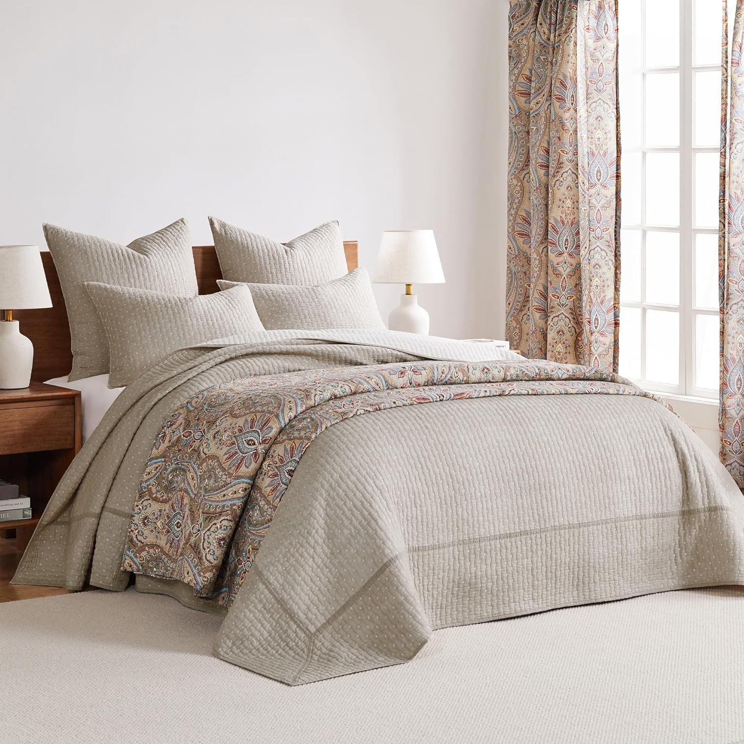 - COORDINATE YOUR ROOM DECOR: Create a wonderful bedroom space with our coordinated reversible matching bed set. The taupe stitched design brings simple accents into your home and will match a variety of different looks and bedroom decor. You can also freshen your room with coordinating decorative pillows and throws from the Levtex Home collection.