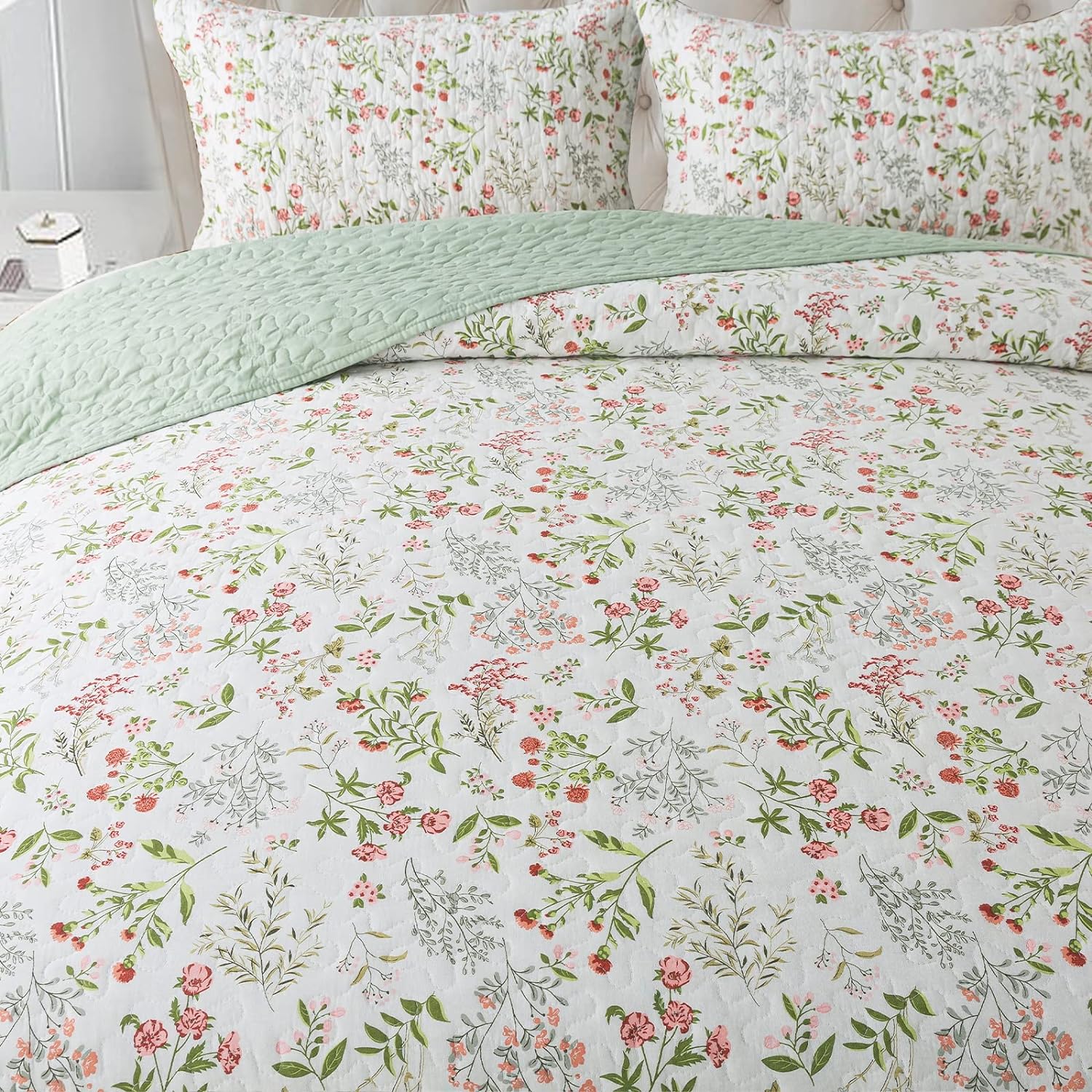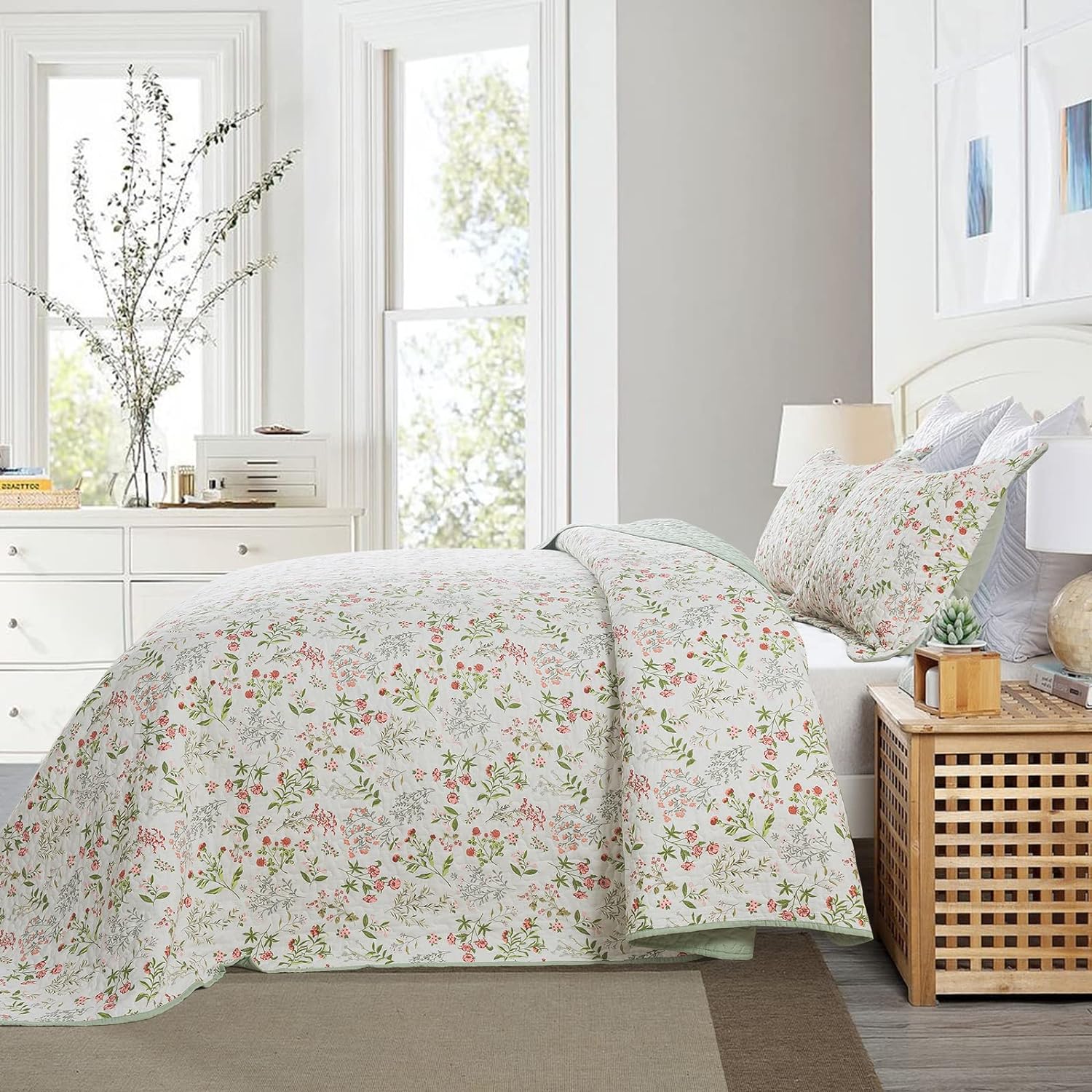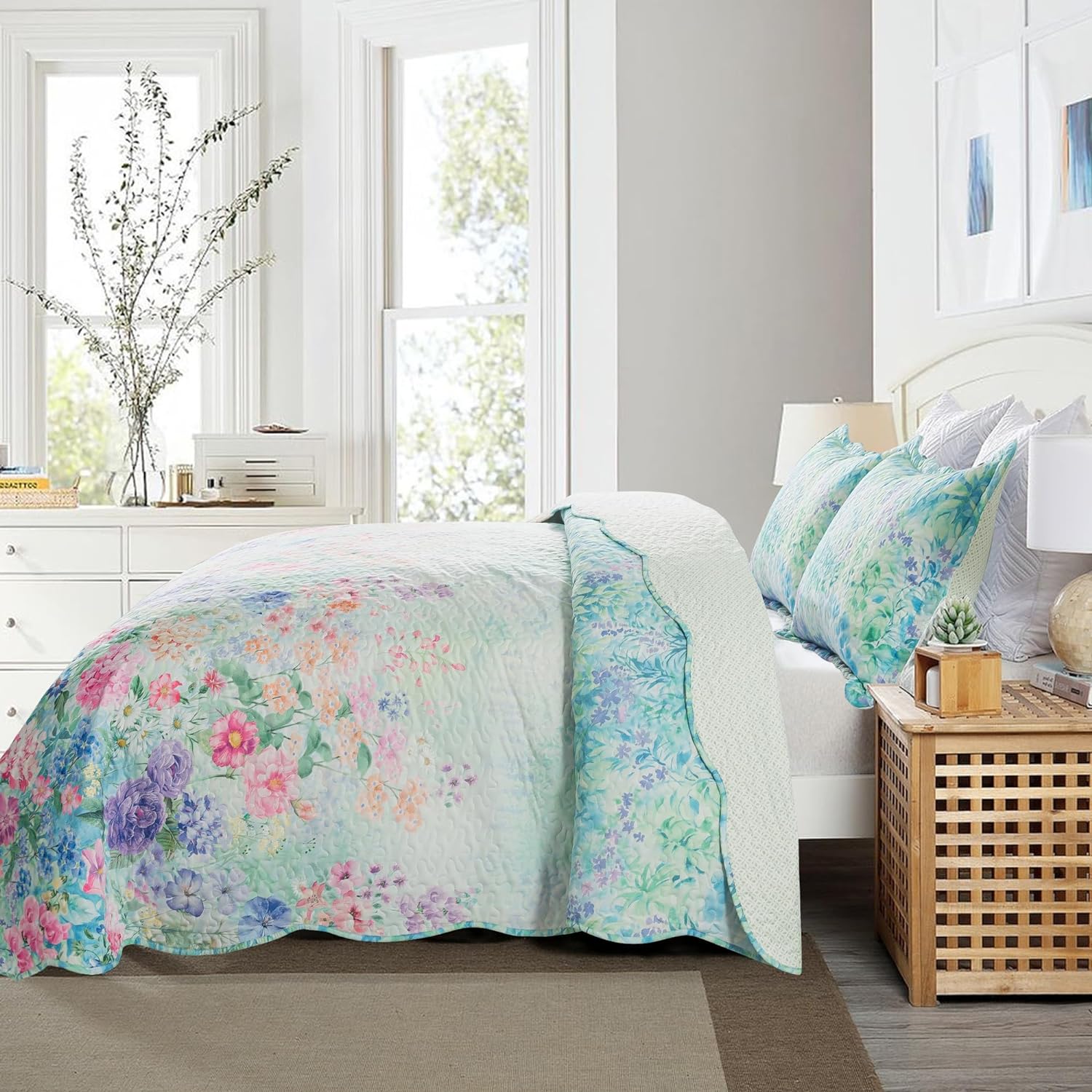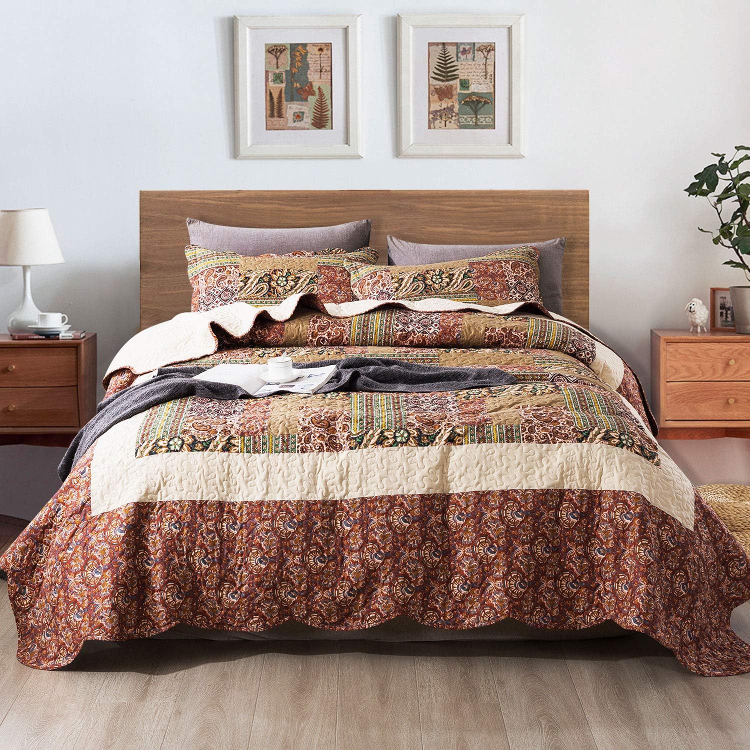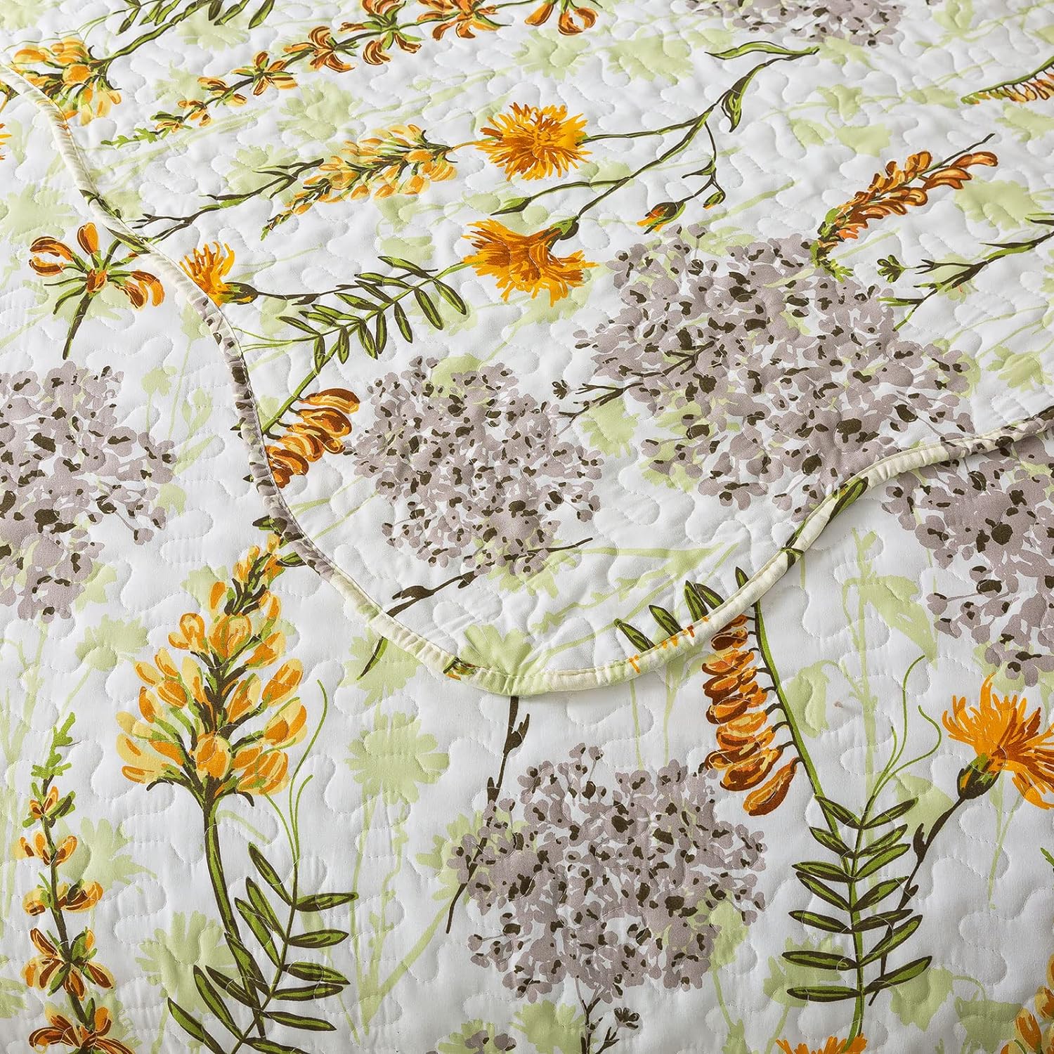 - Durable Bedding Quilt Set: a classical floral pattern on the whole bedspread and accented on the sides of the spread with a scalloped edges to complete the bed quilt