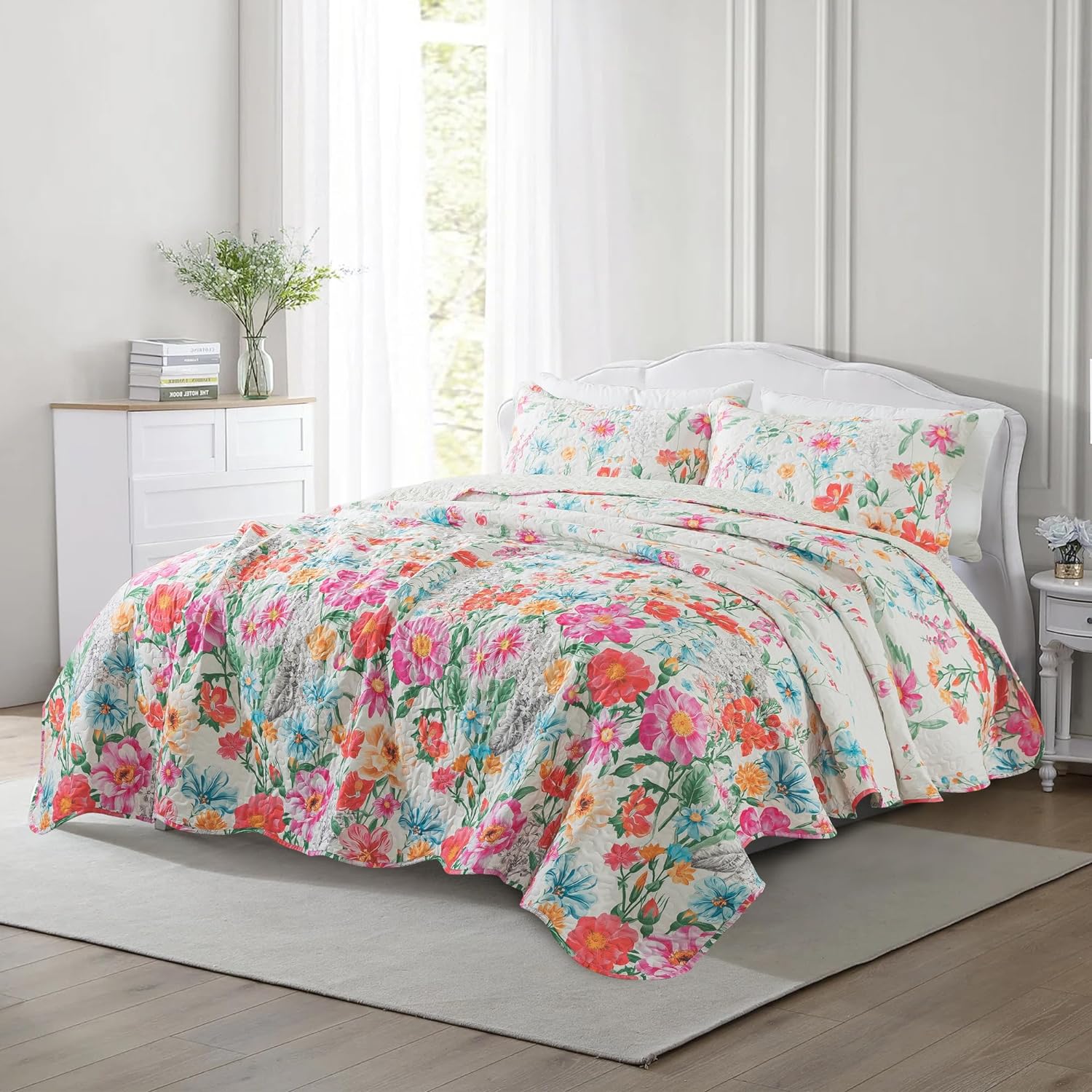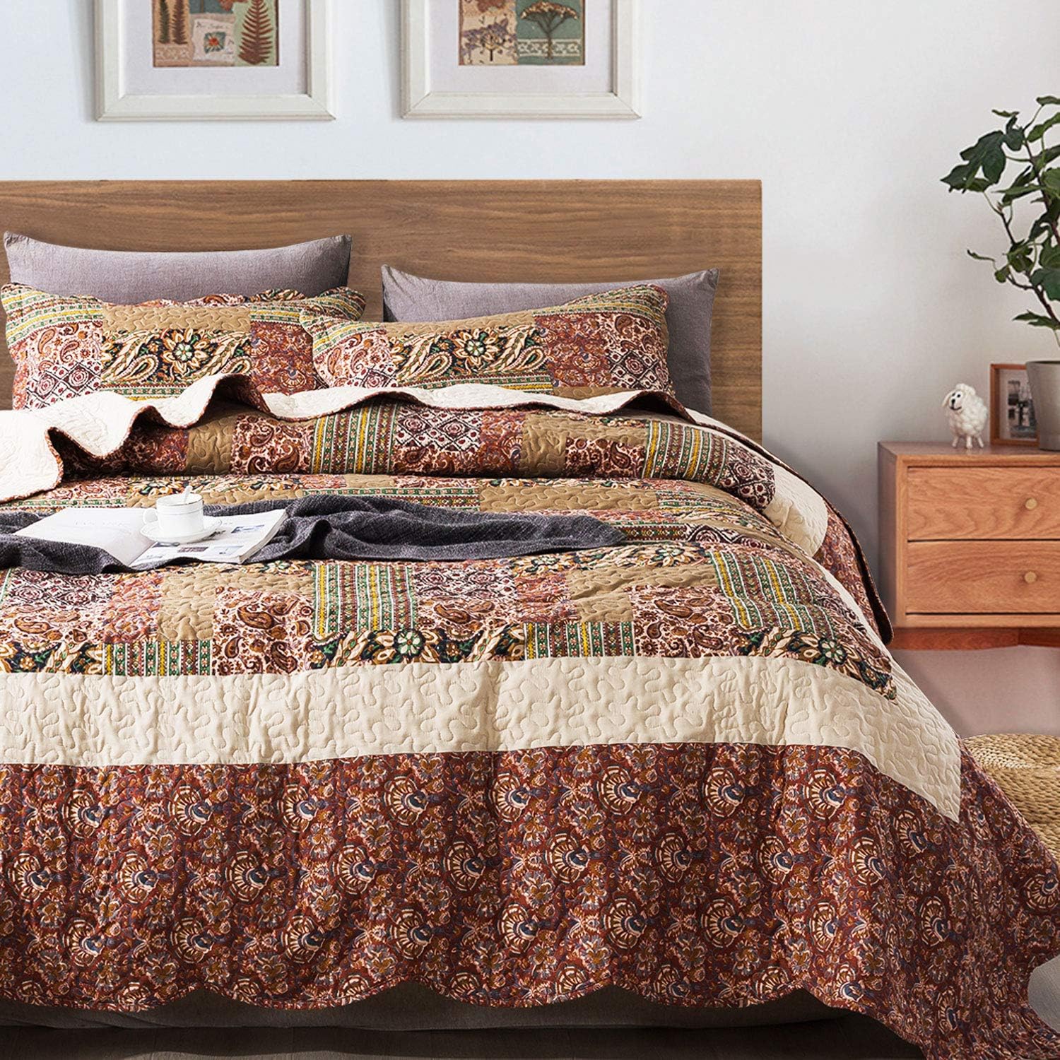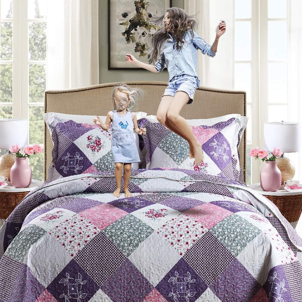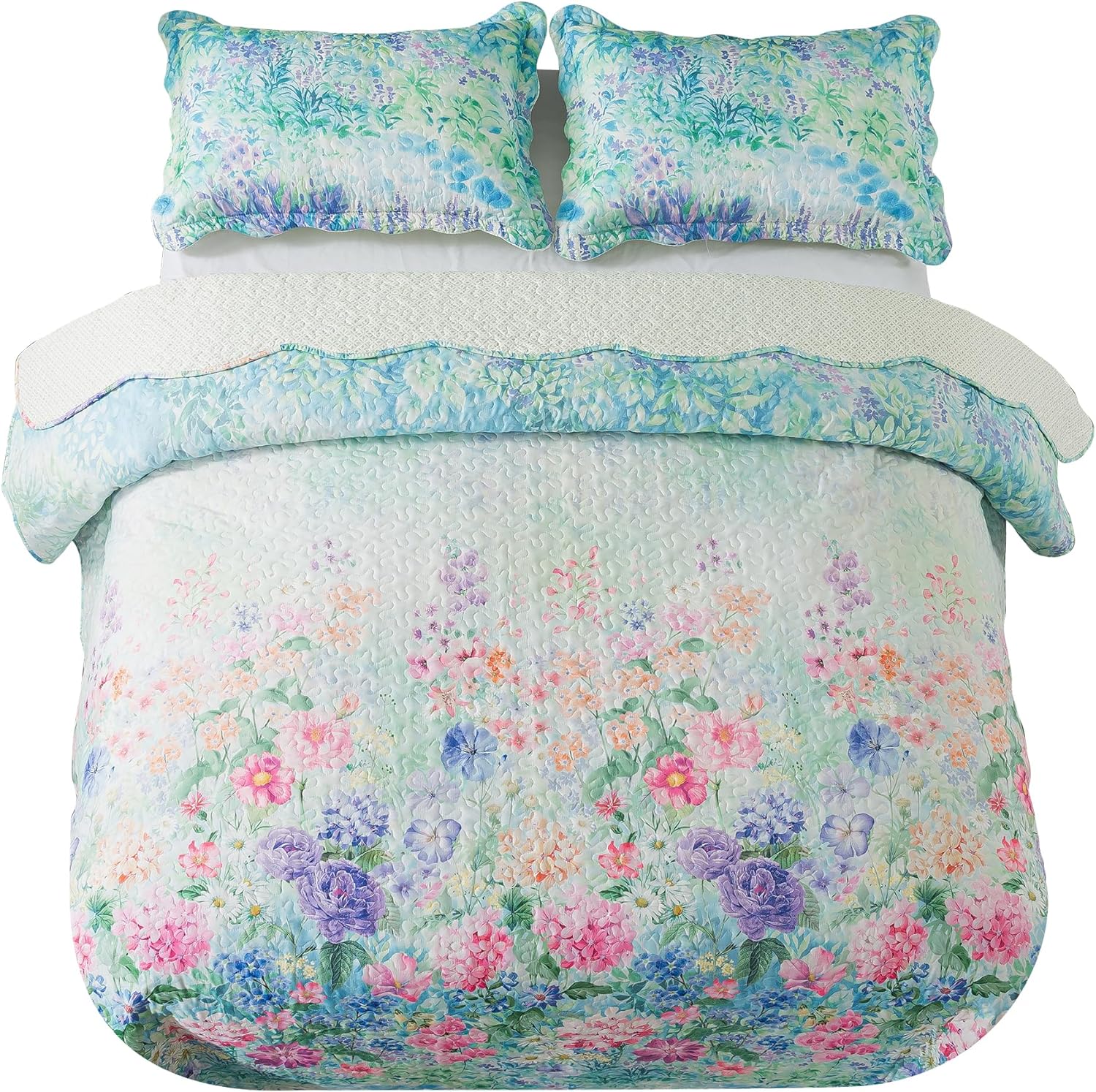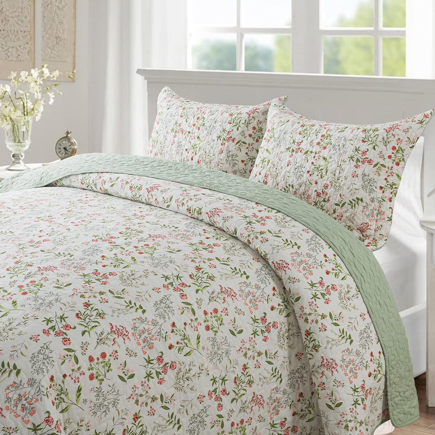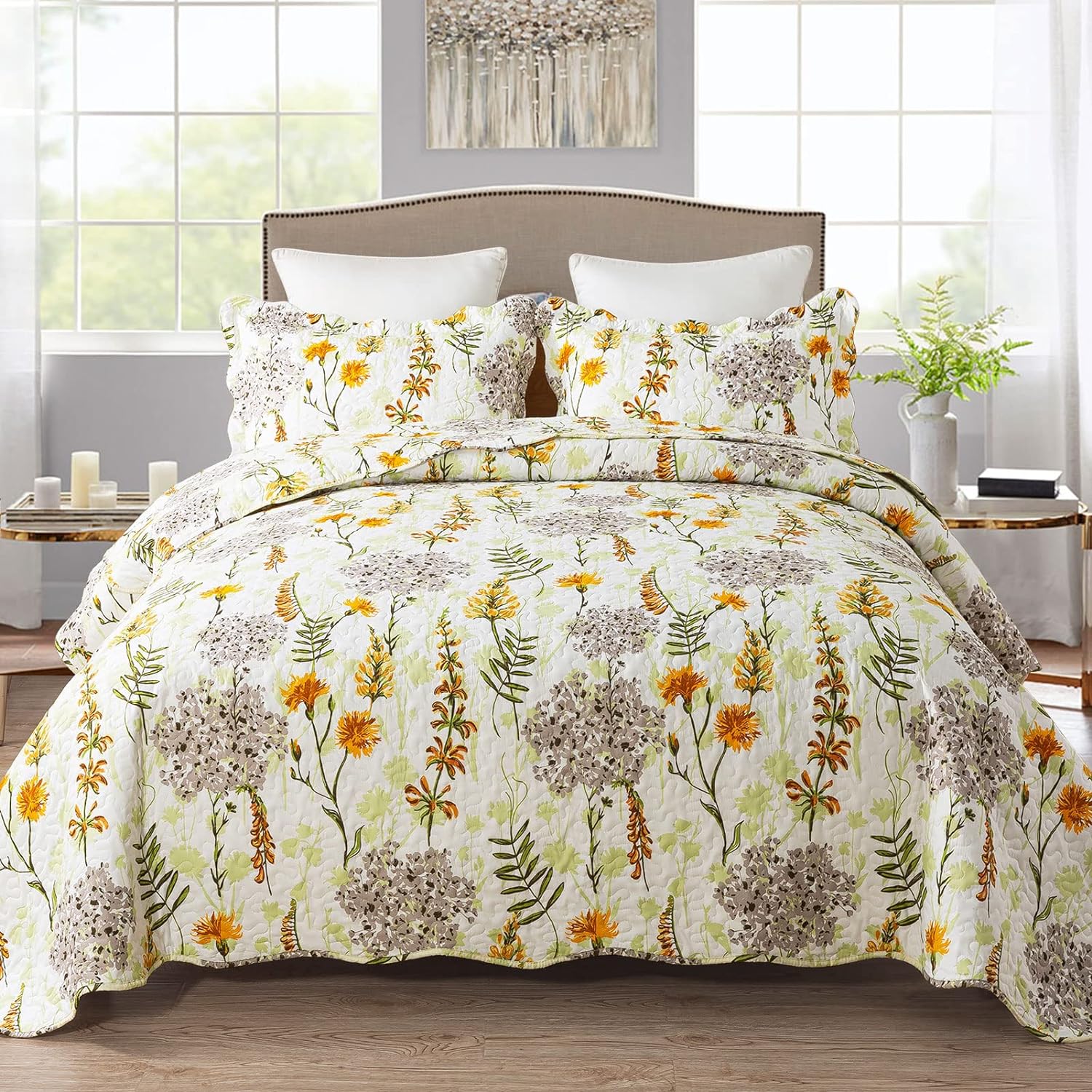 - Durable Bedding Quilt Set: a classical floral pattern on the whole bedspread and accented on the sides of the spread with a scalloped edges to complete the bed quilt