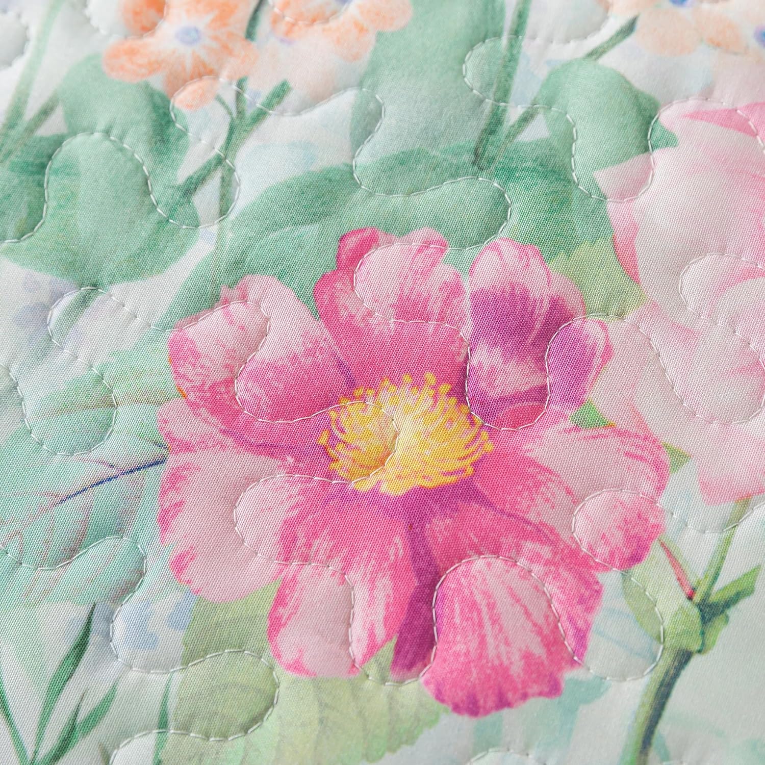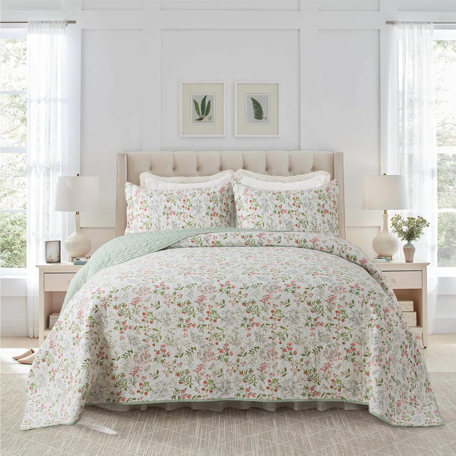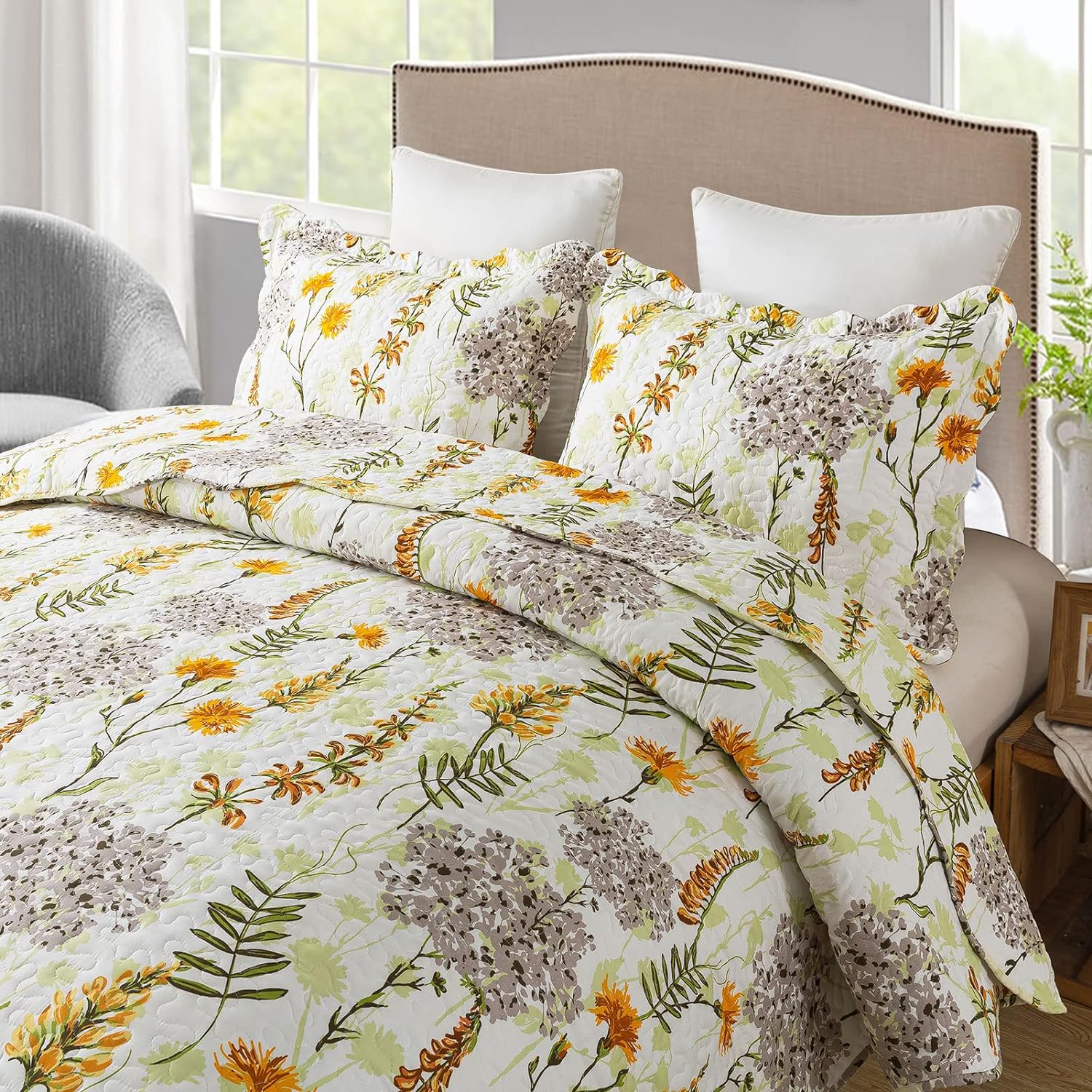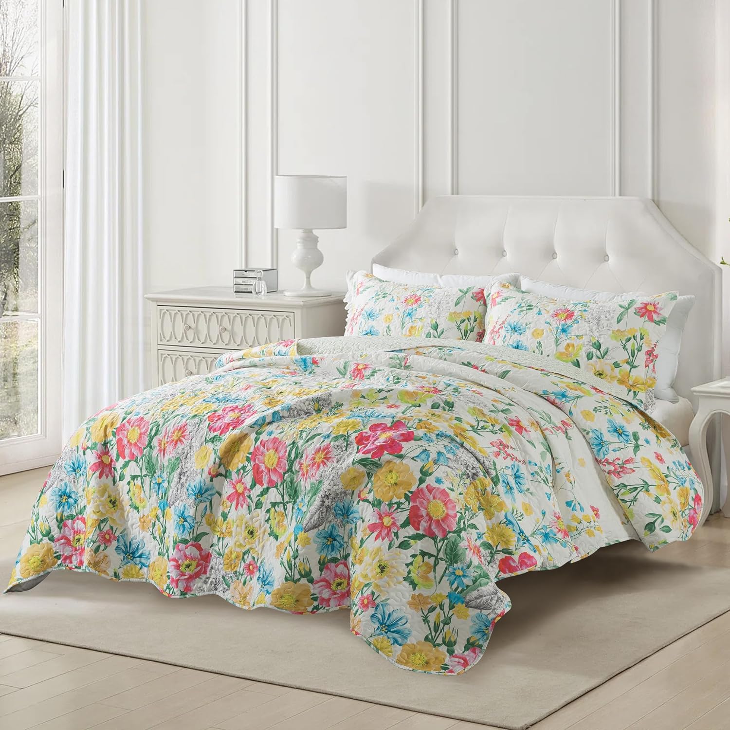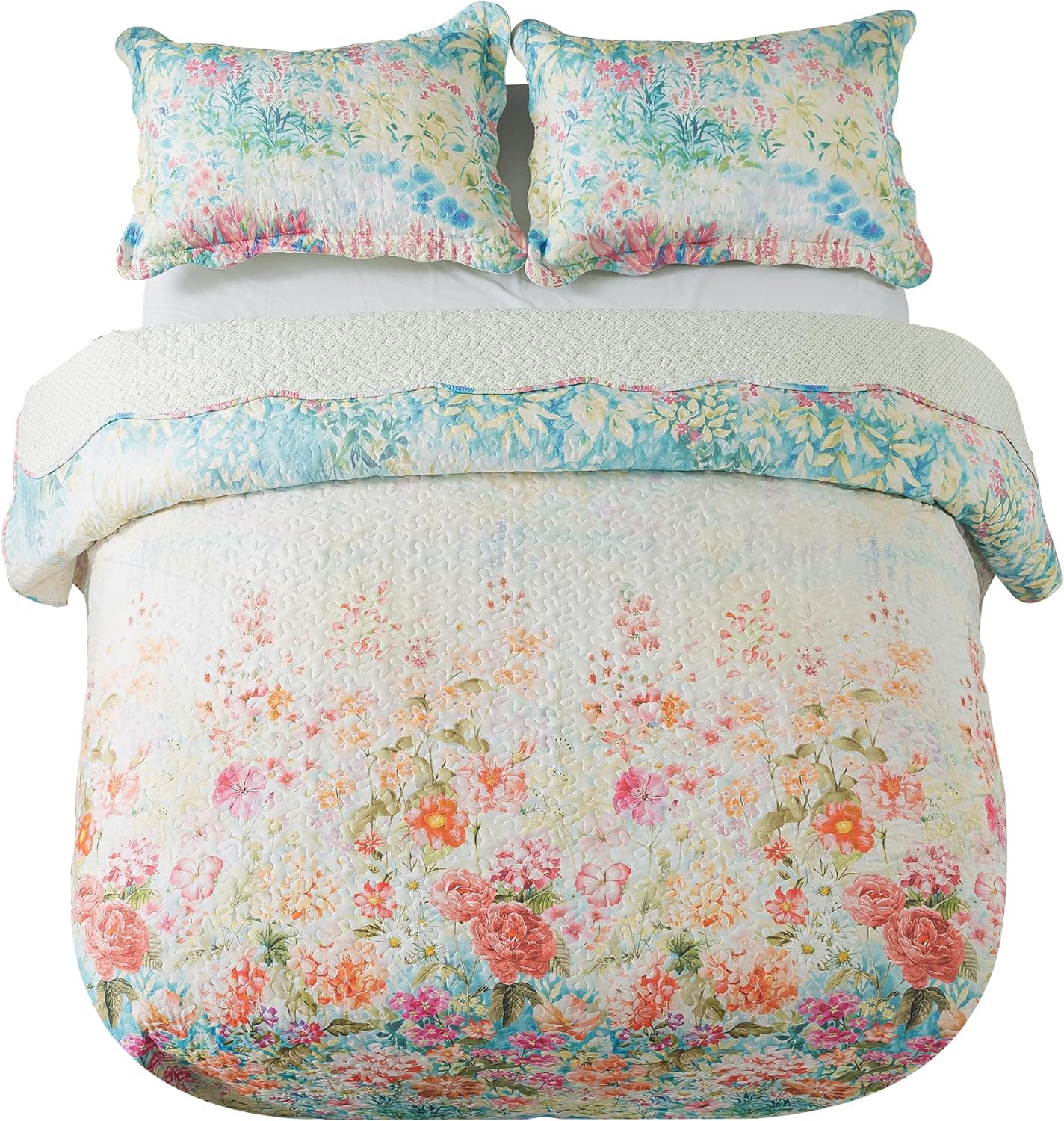 - Durable Bedding Quilt Set: a classical floral pattern on the whole bedspread and accented on the sides of the spread with a scalloped edges to complete the bed quilt
