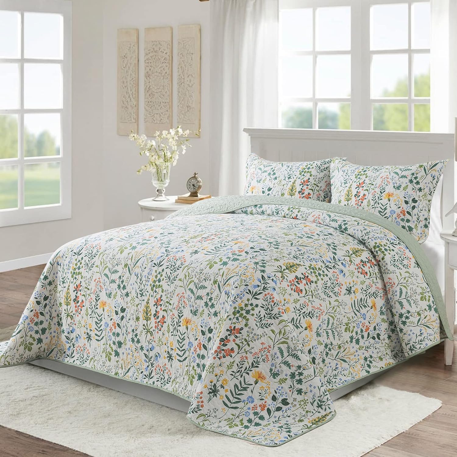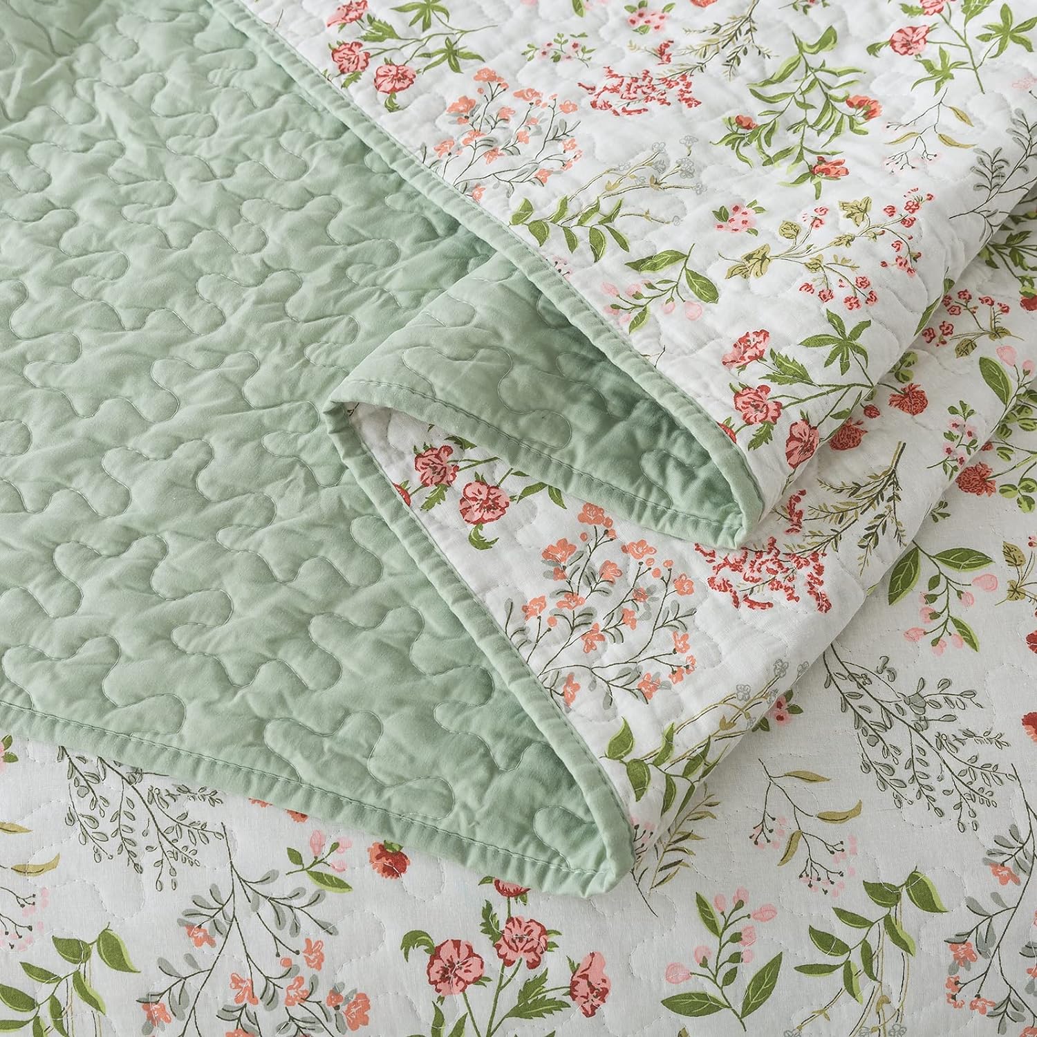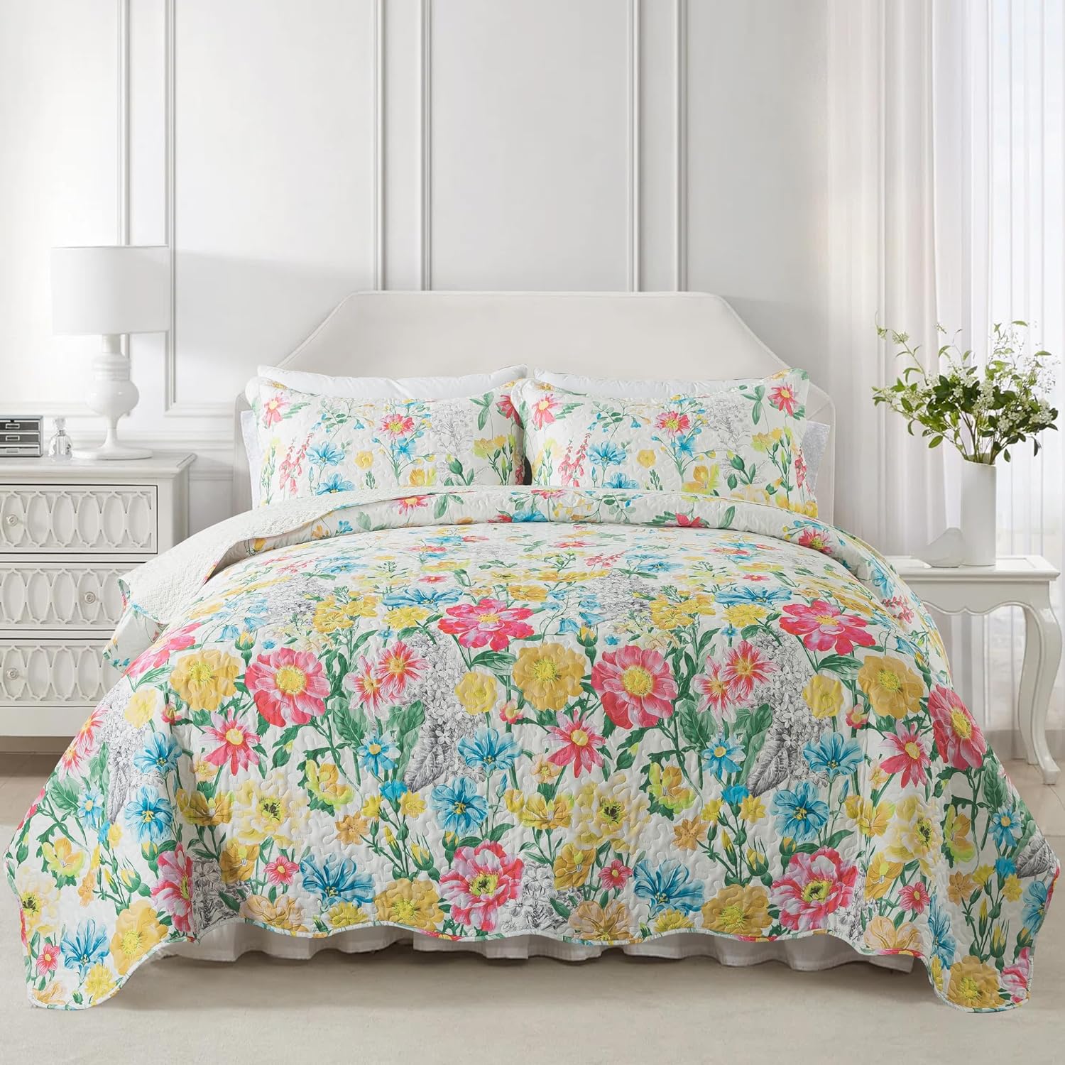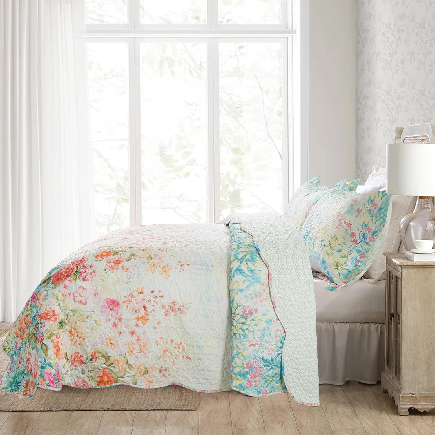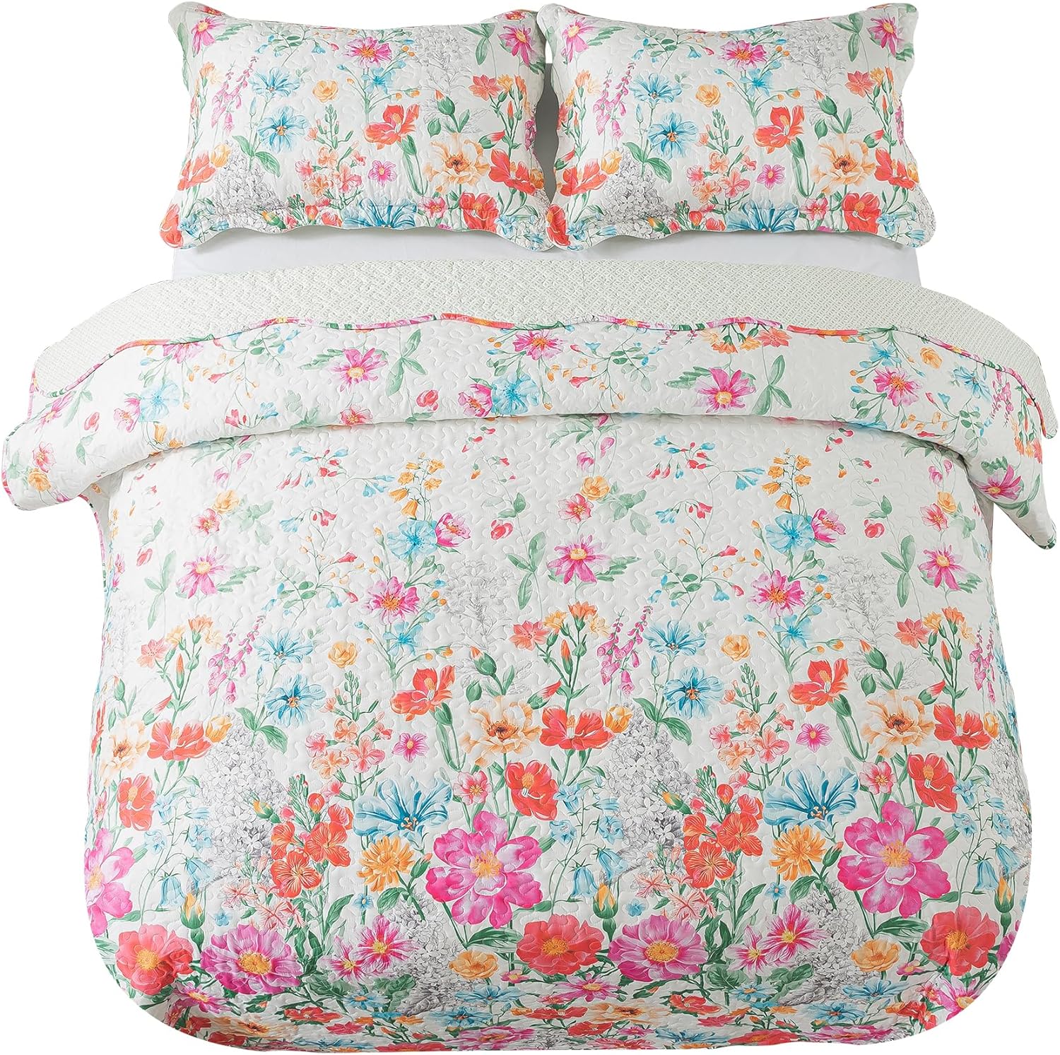 - Durable Bedding Quilt Set: a classical floral pattern on the whole bedspread and accented on the sides of the spread with a scalloped edges to complete the bed quilt