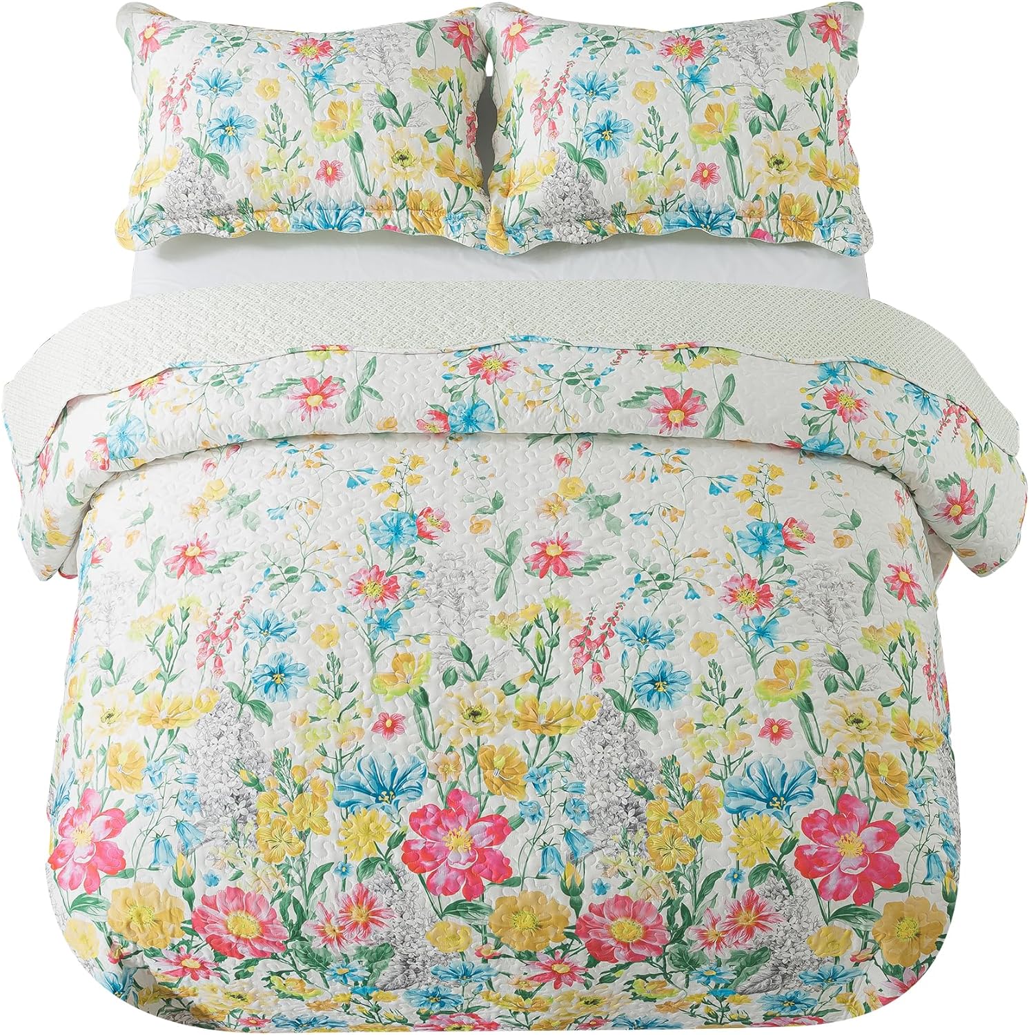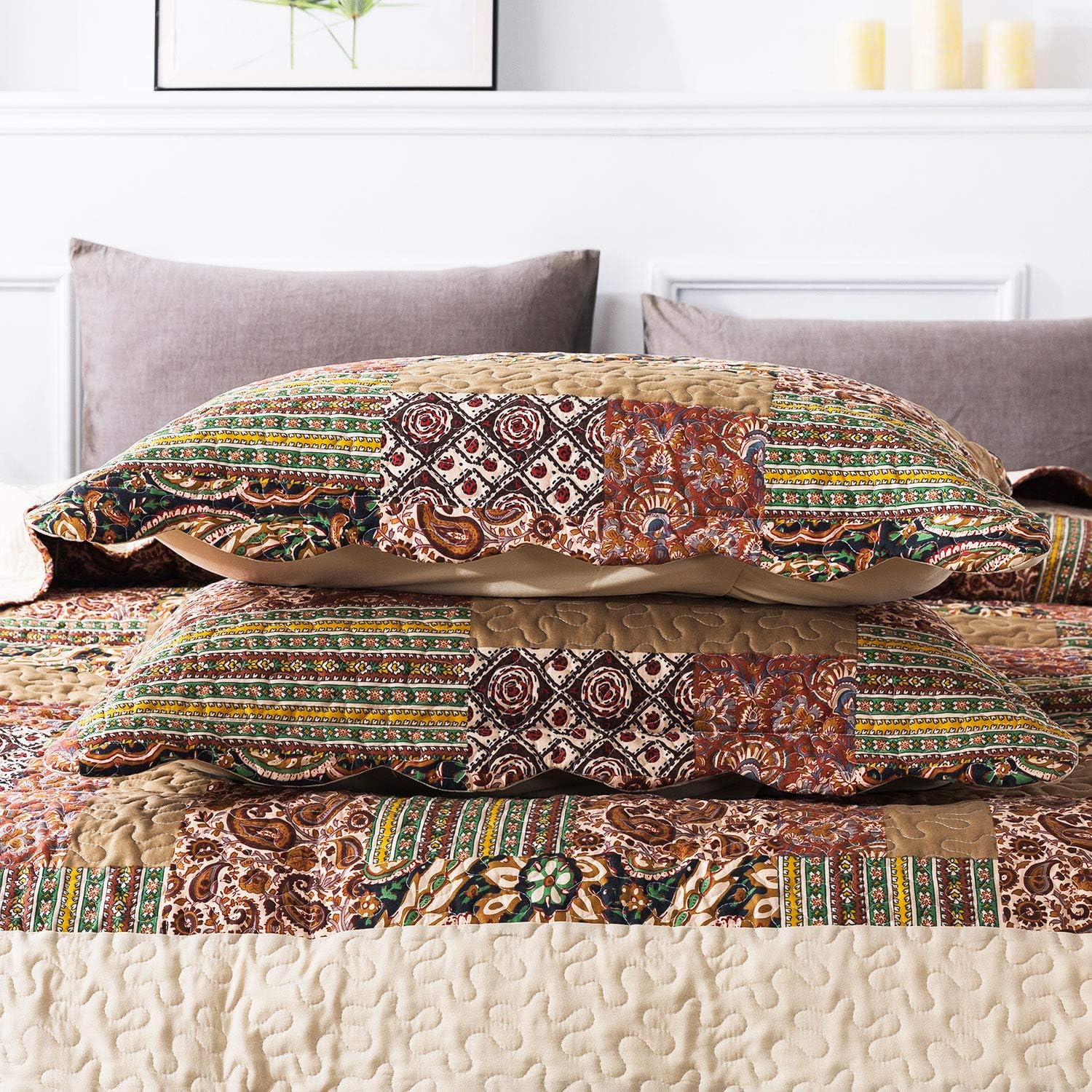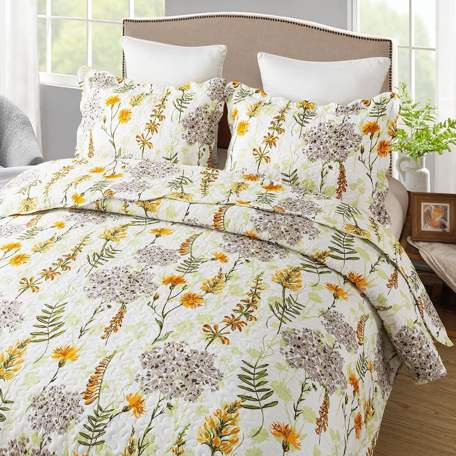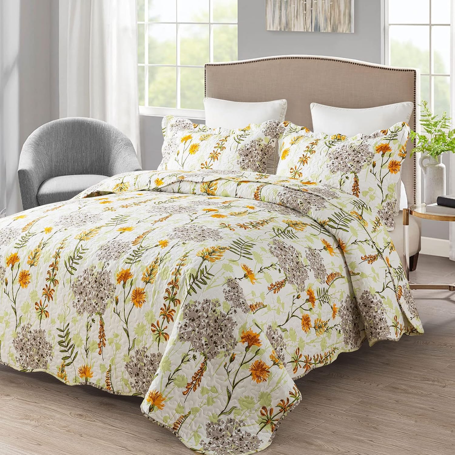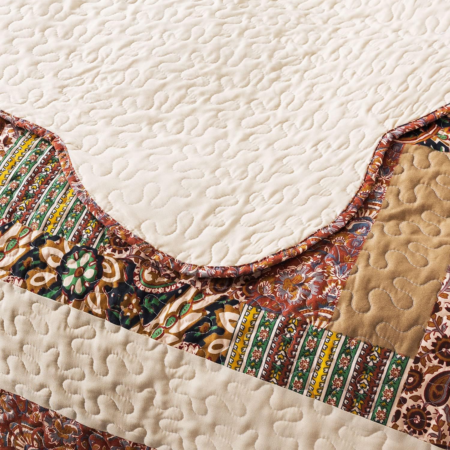 - Durable Bedding Quilt Set: a classical floral pattern on the whole bedspread and accented on the sides of the spread with a scalloped edges to complete the bed quilt