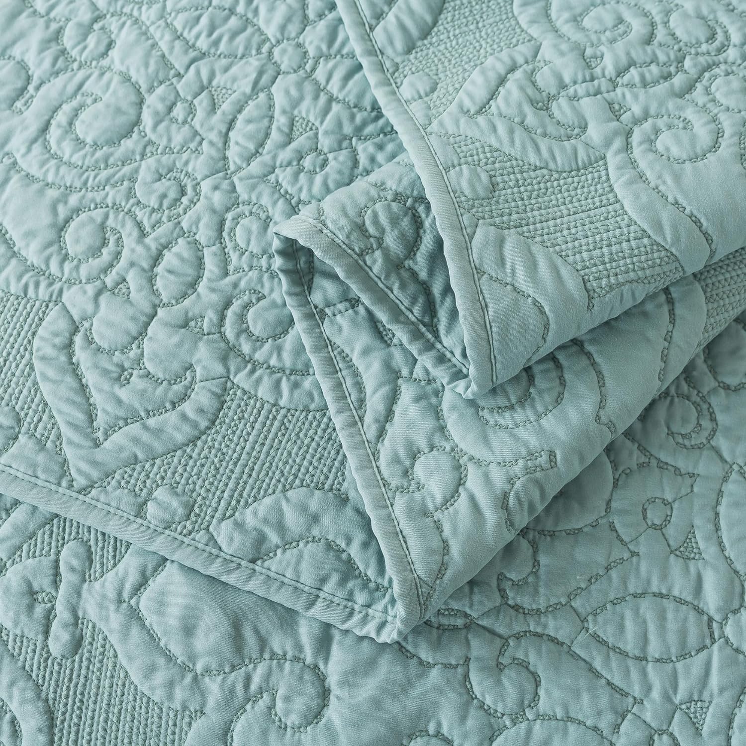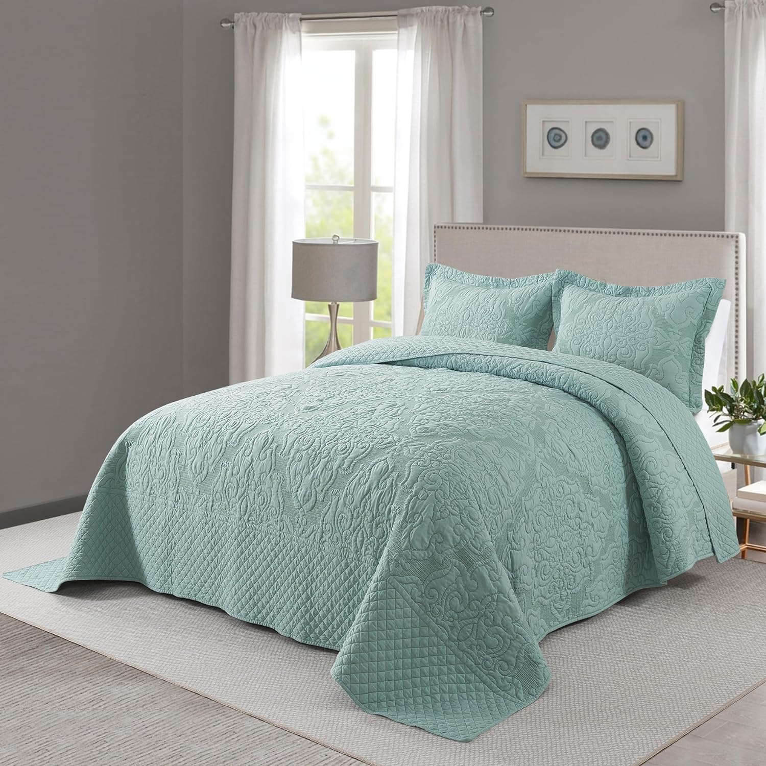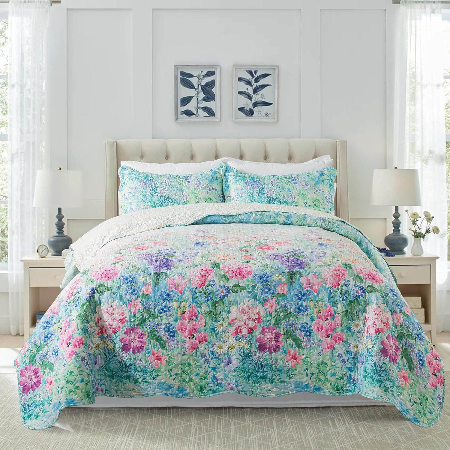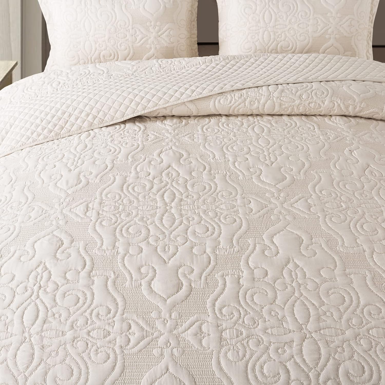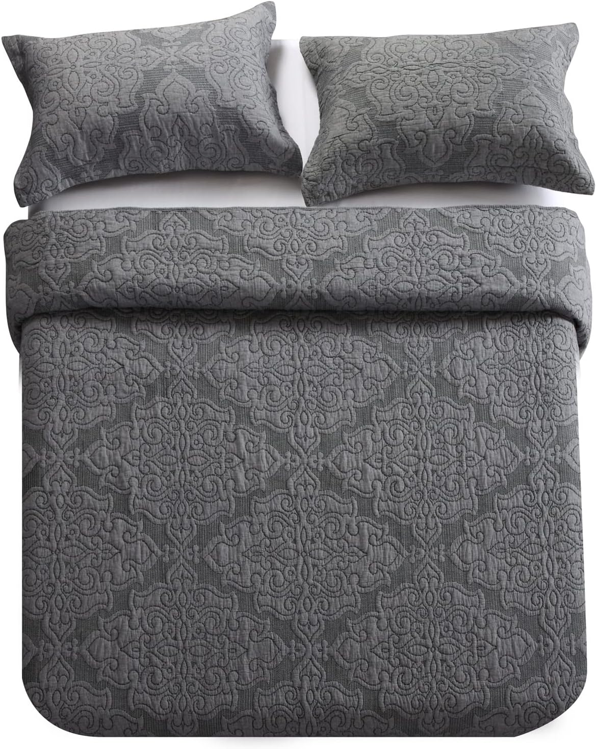 - Durable Bedding Quilt Set: a classical floral pattern on the whole bedspread and accented on the sides of the spread with a scalloped edges to complete the bed quilt