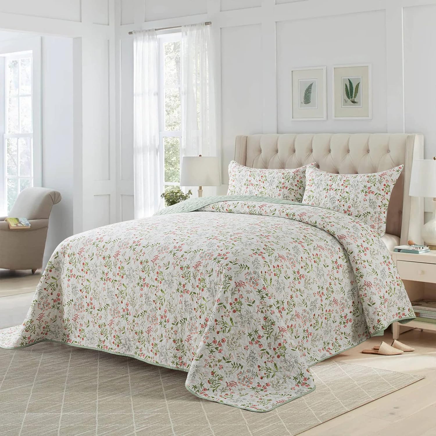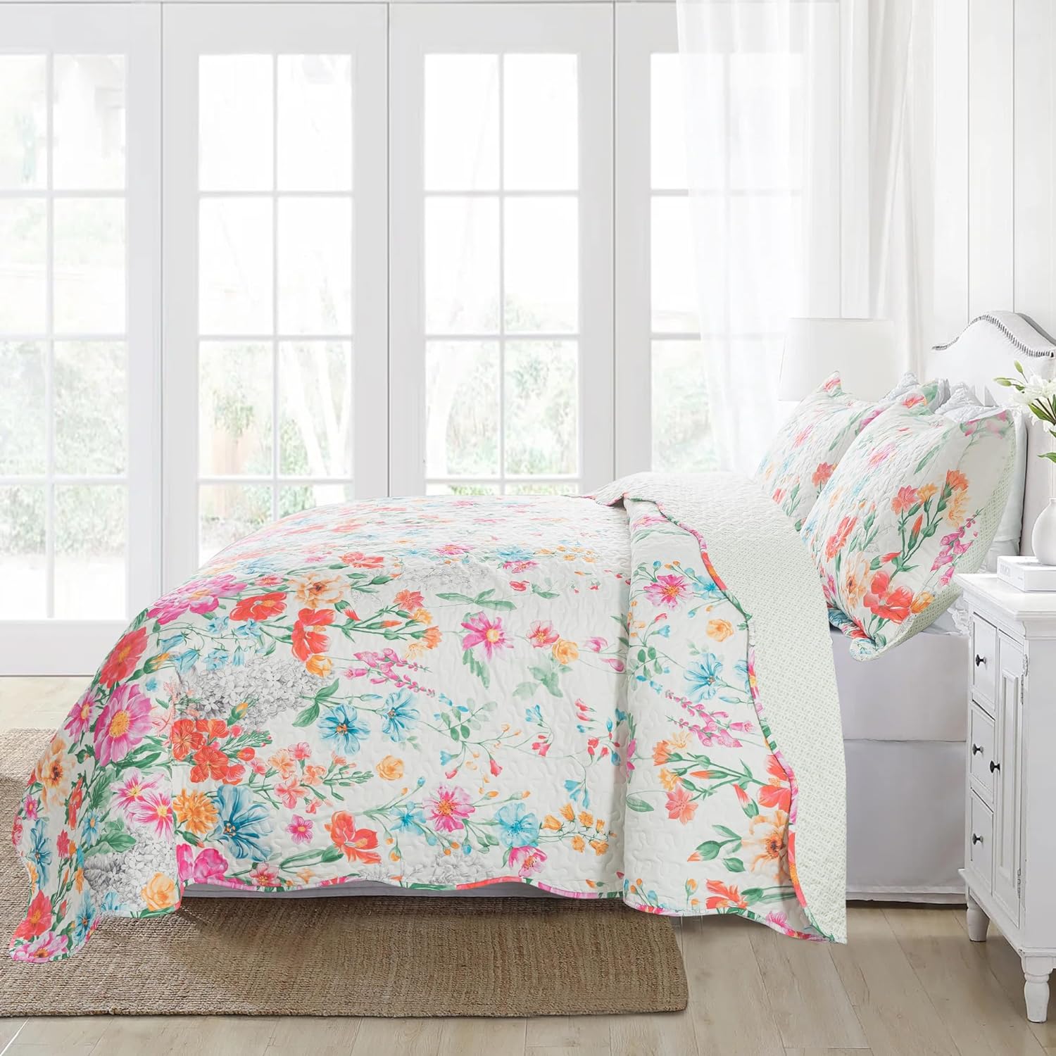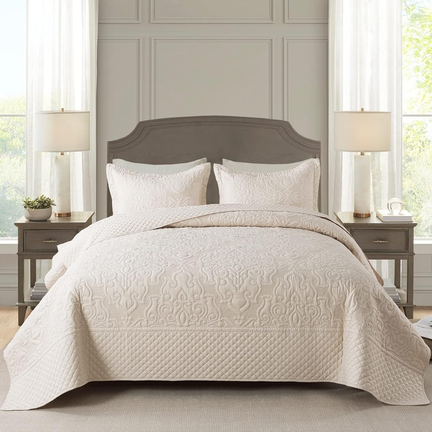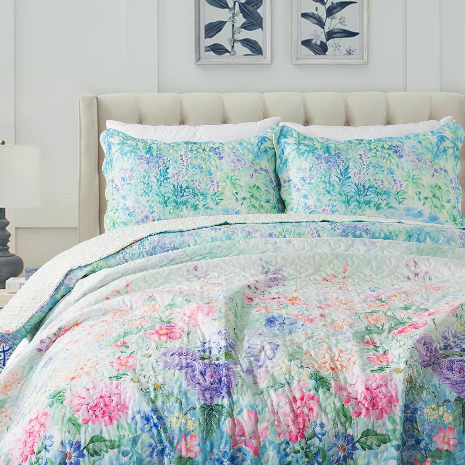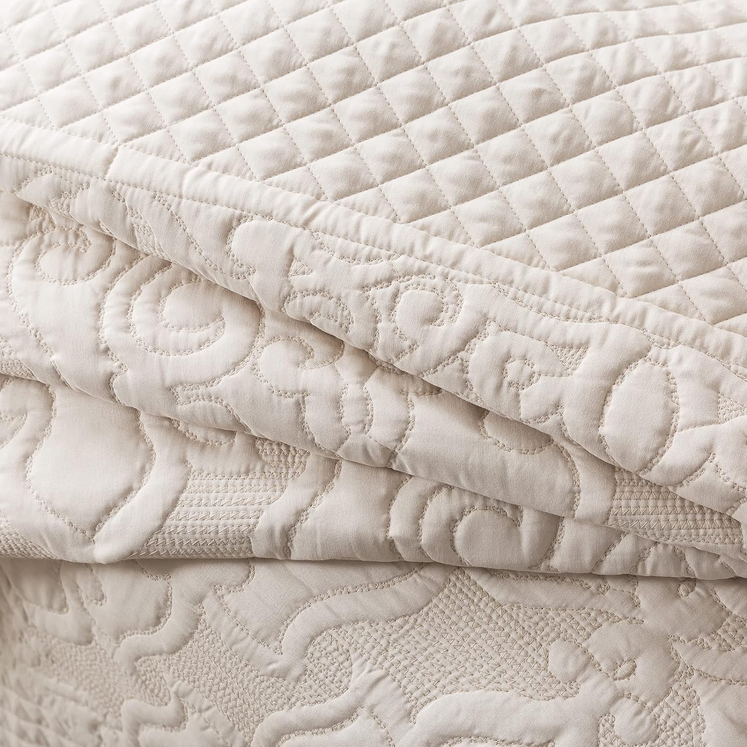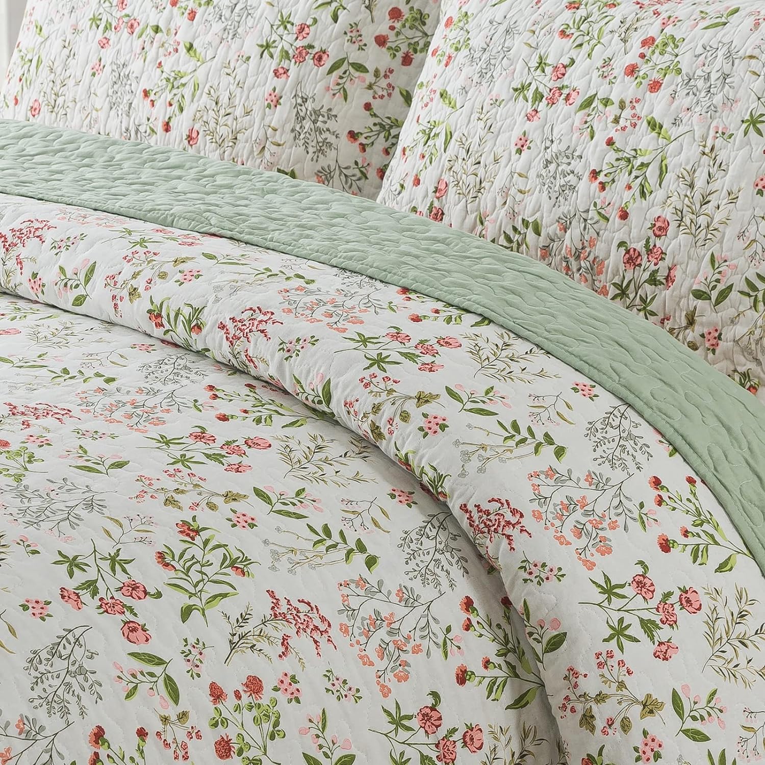 - Durable Bedding Quilt Set: a classical floral pattern on the whole bedspread and accented on the sides of the spread with a scalloped edges to complete the bed quilt