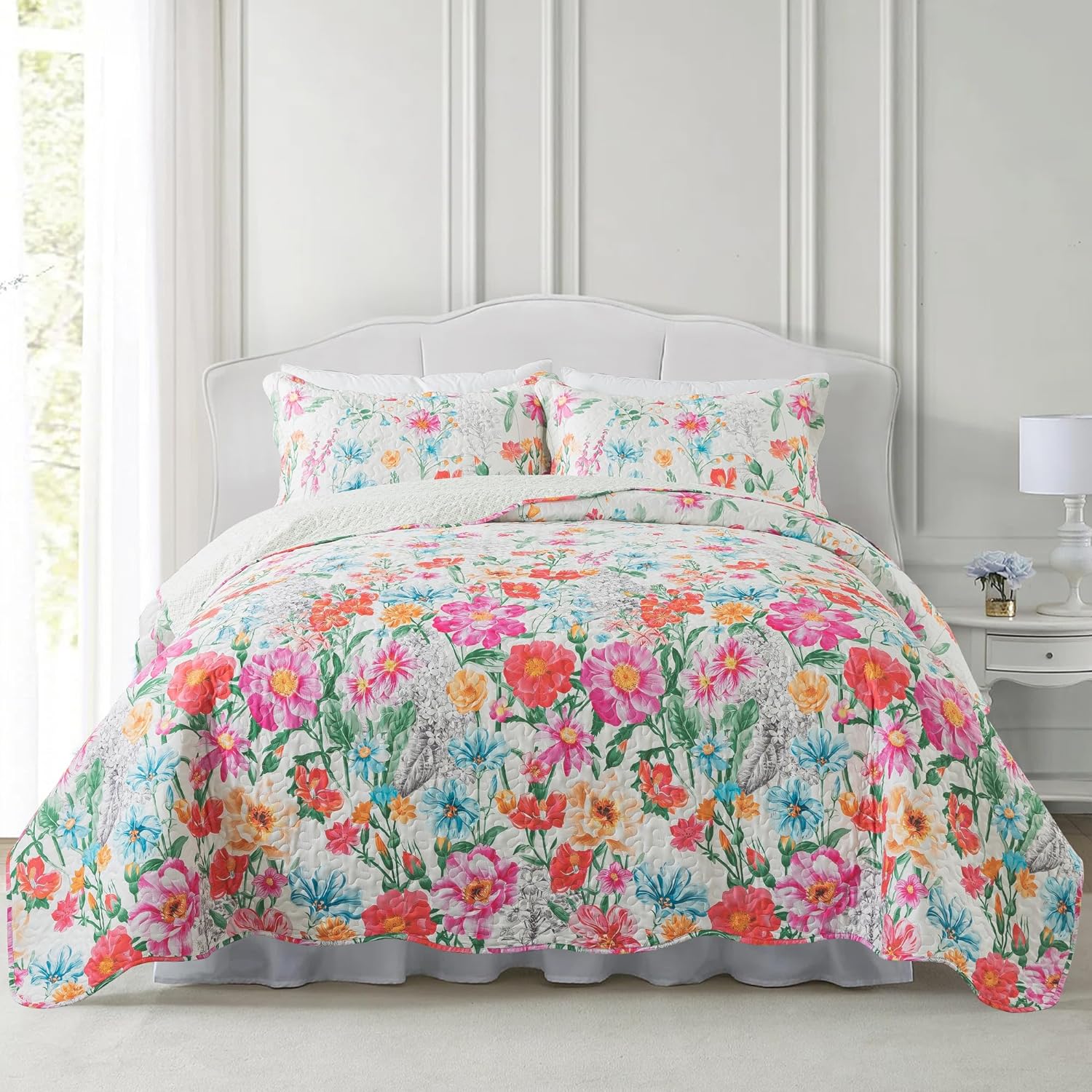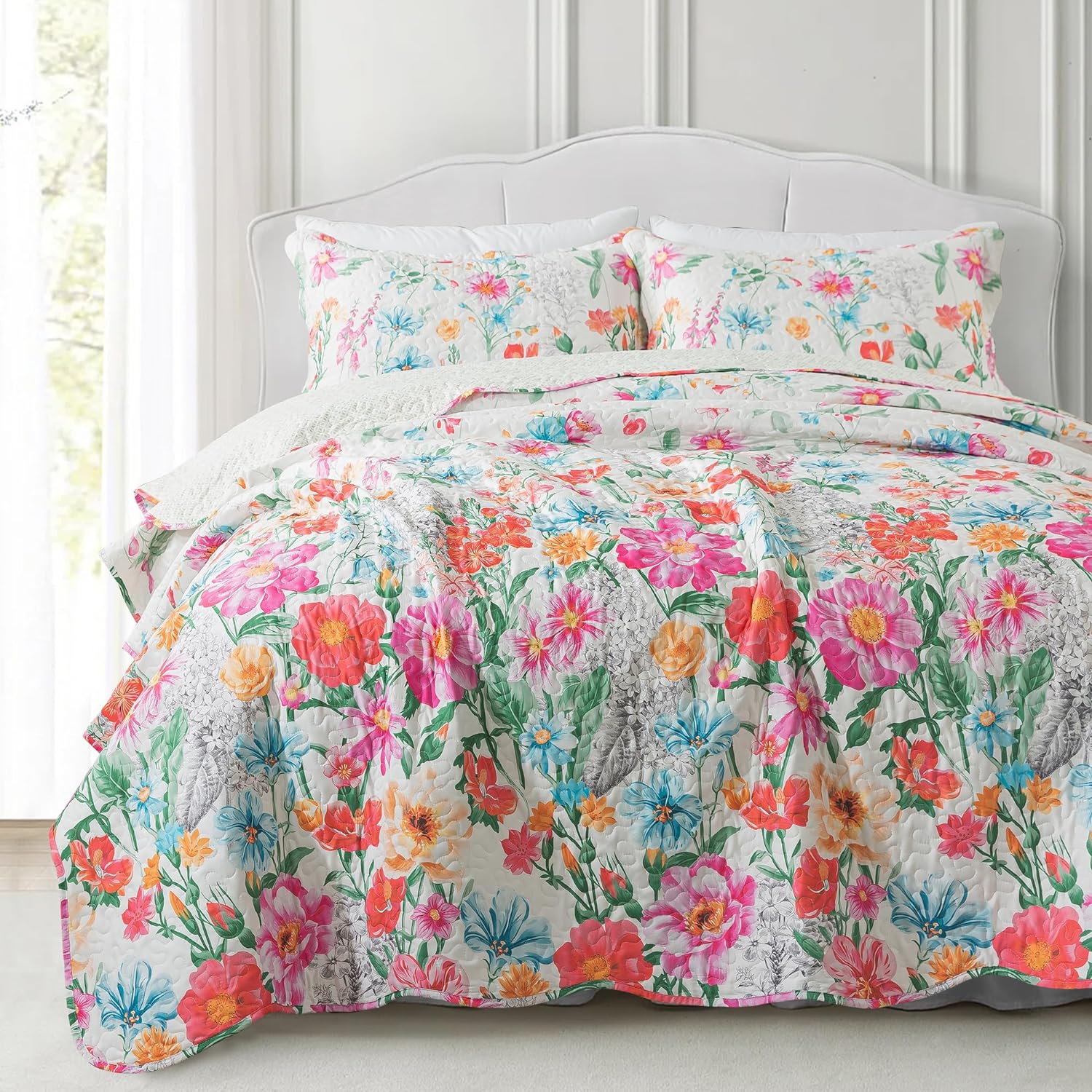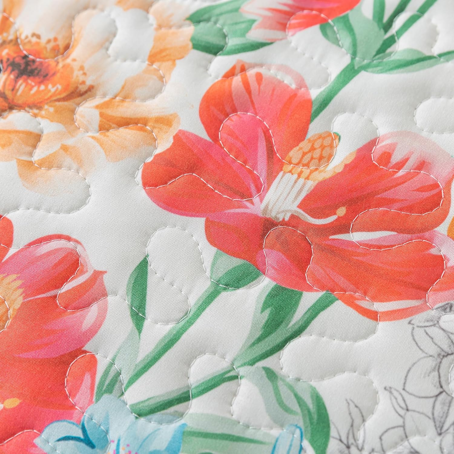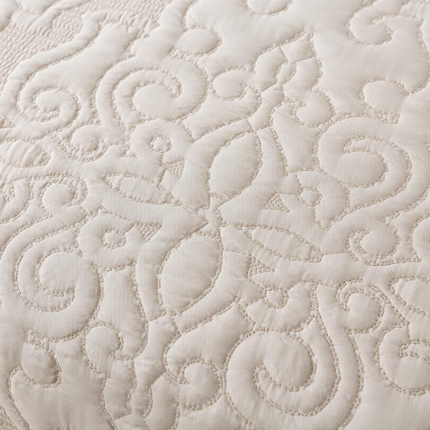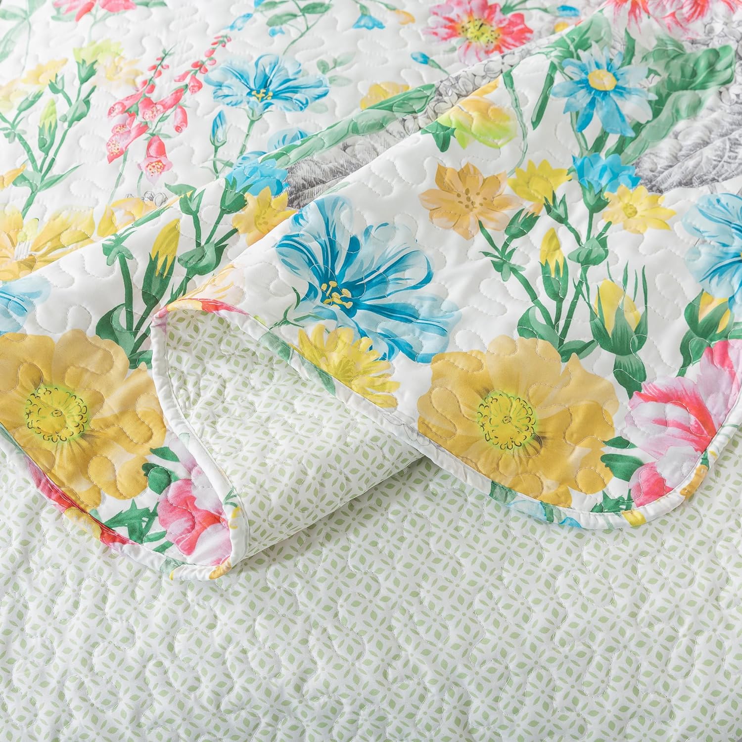 - Durable Bedding Quilt Set: a classical floral pattern on the whole bedspread and accented on the sides of the spread with a scalloped edges to complete the bed quilt