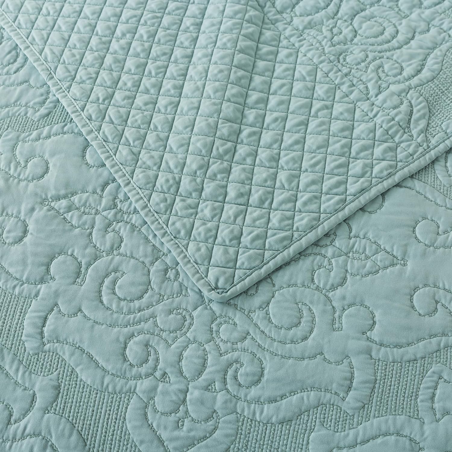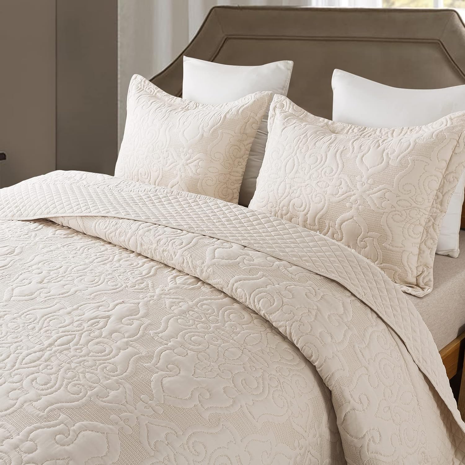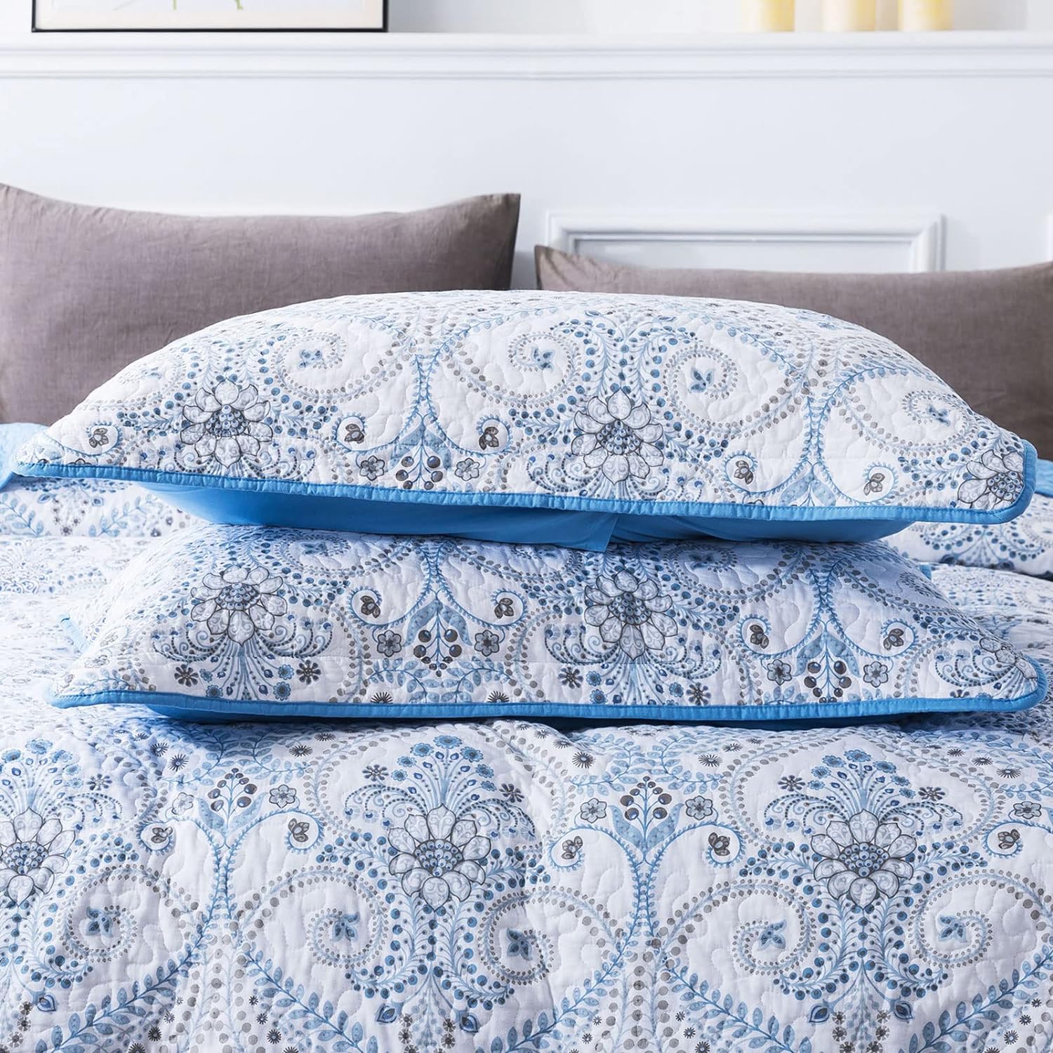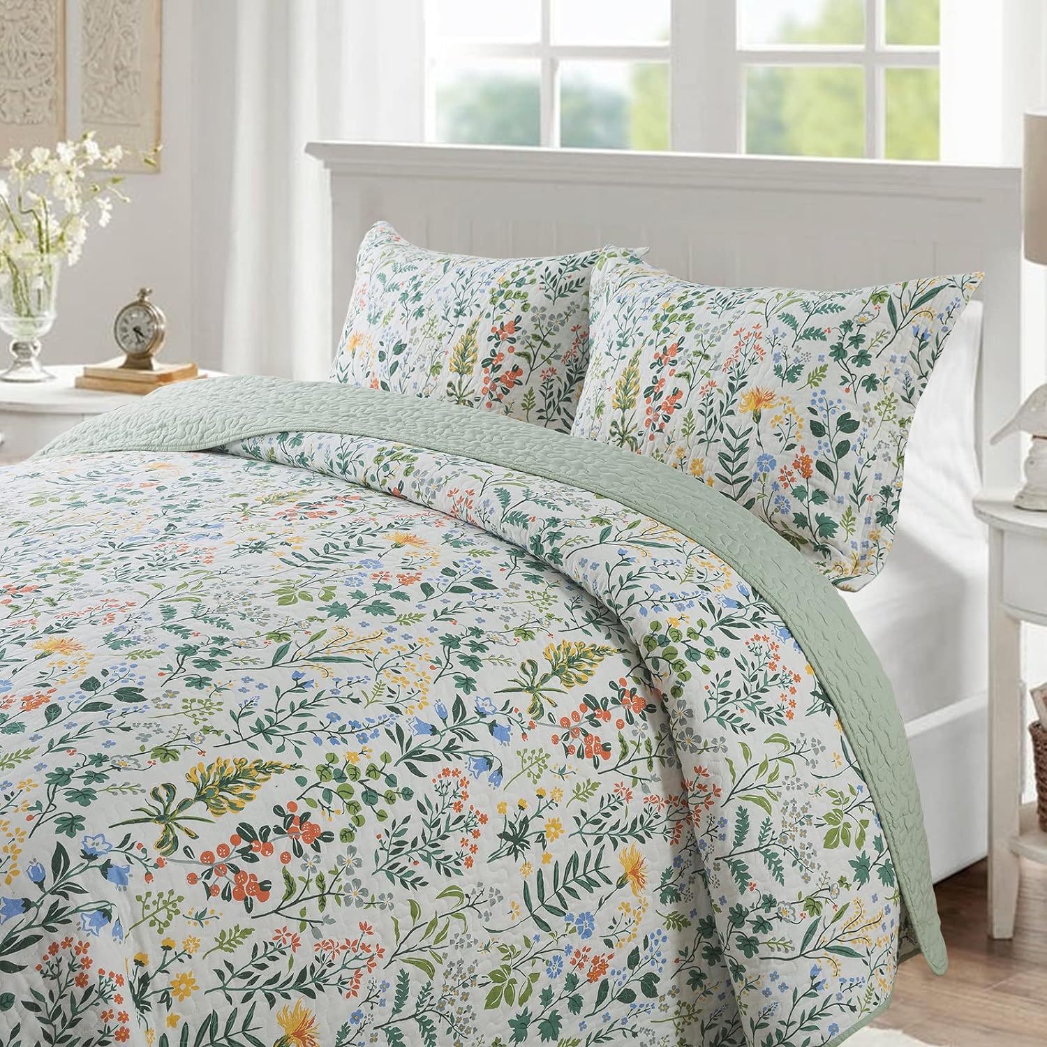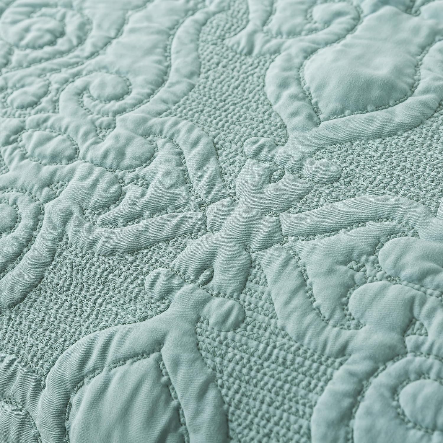 - Durable Bedding Quilt Set: a classical floral pattern on the whole bedspread and accented on the sides of the spread with a scalloped edges to complete the bed quilt