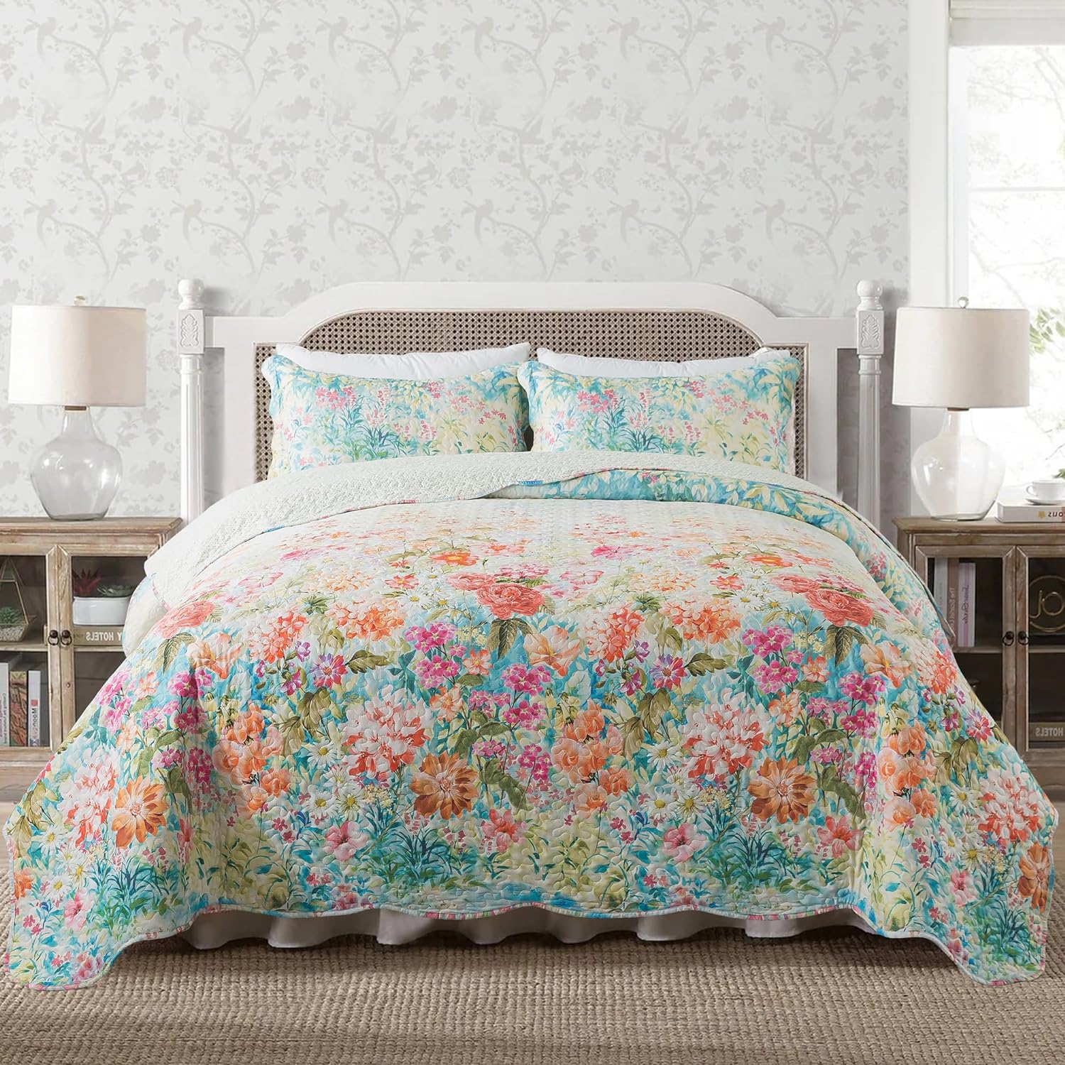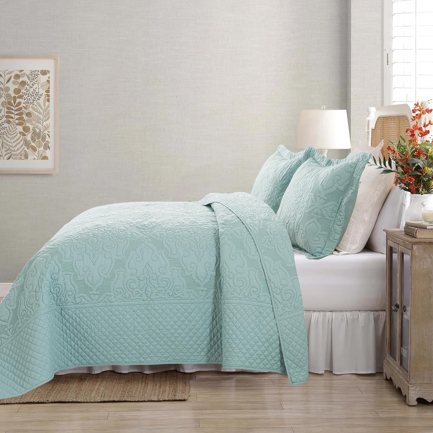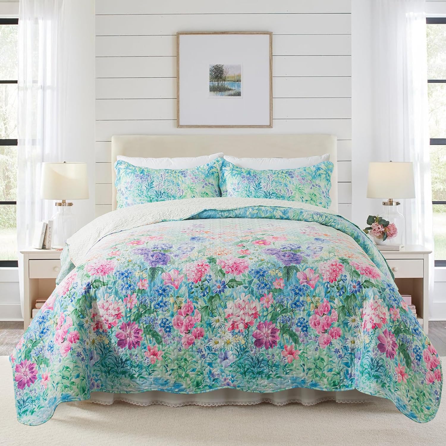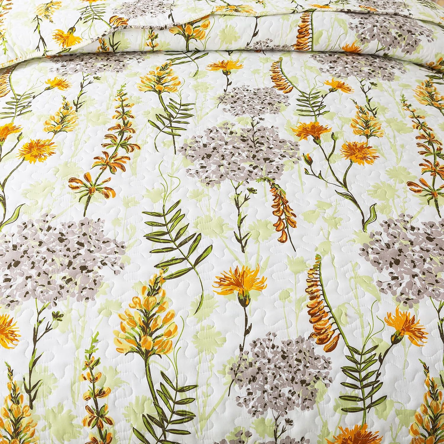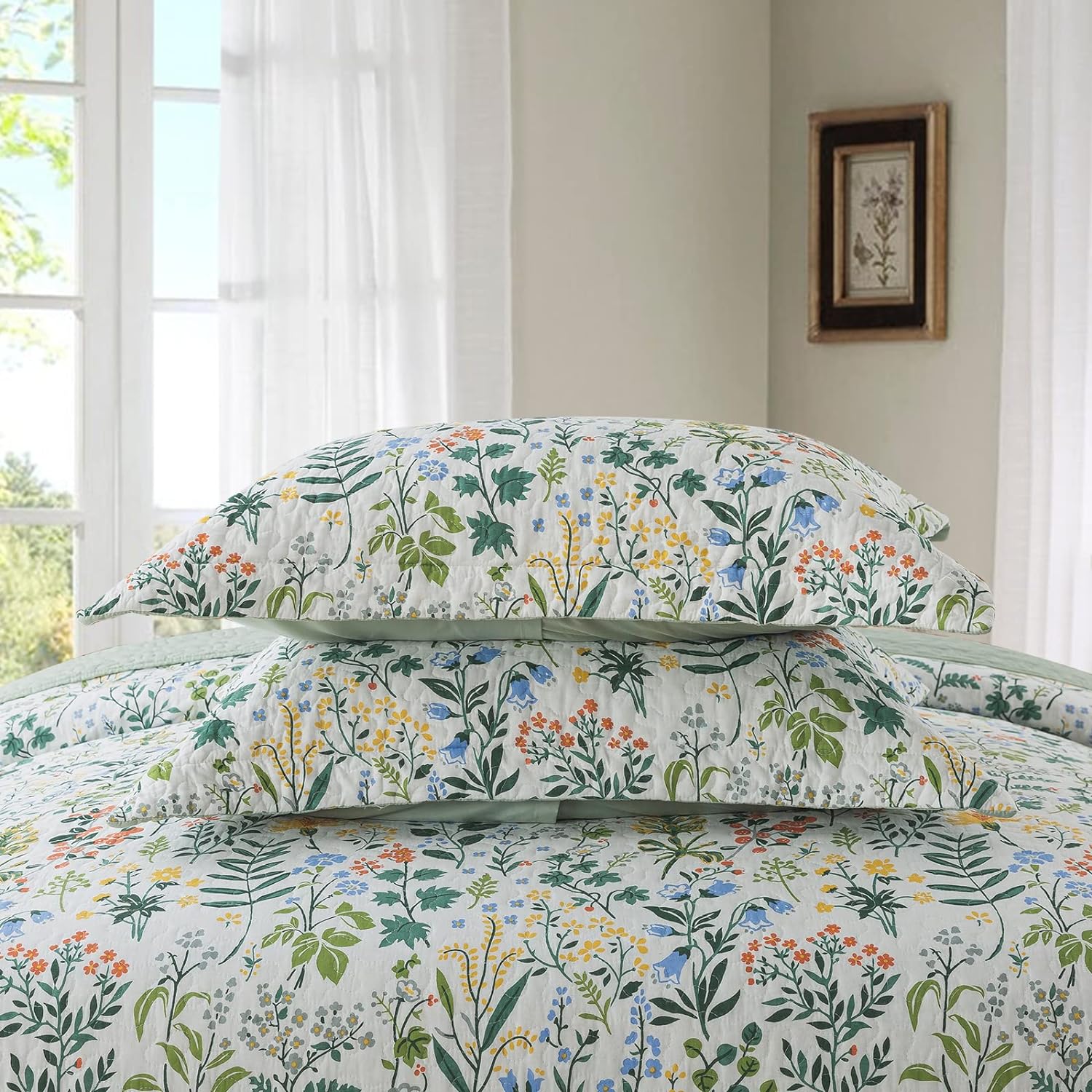 - Durable Bedding Quilt Set: a classical floral pattern on the whole bedspread and accented on the sides of the spread with a scalloped edges to complete the bed quilt