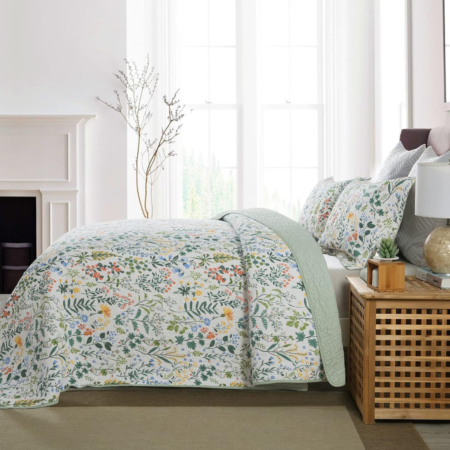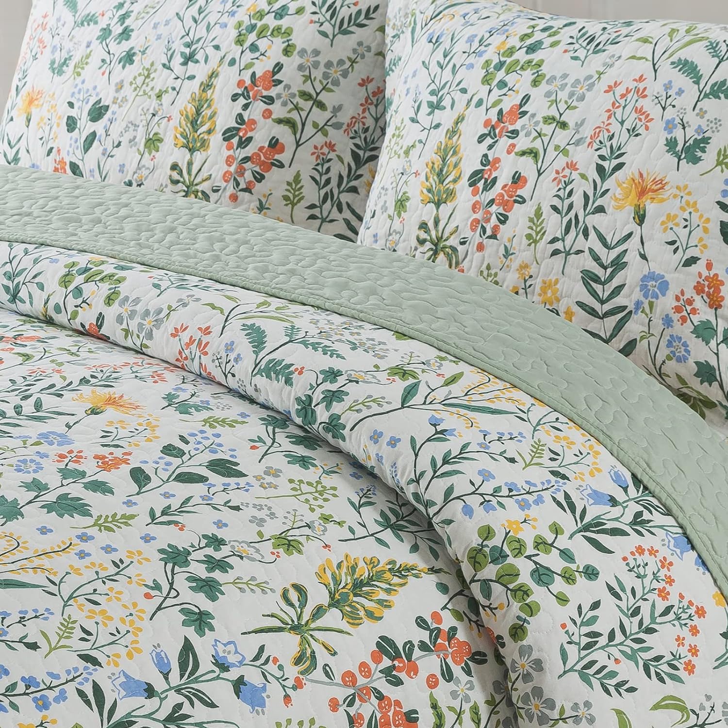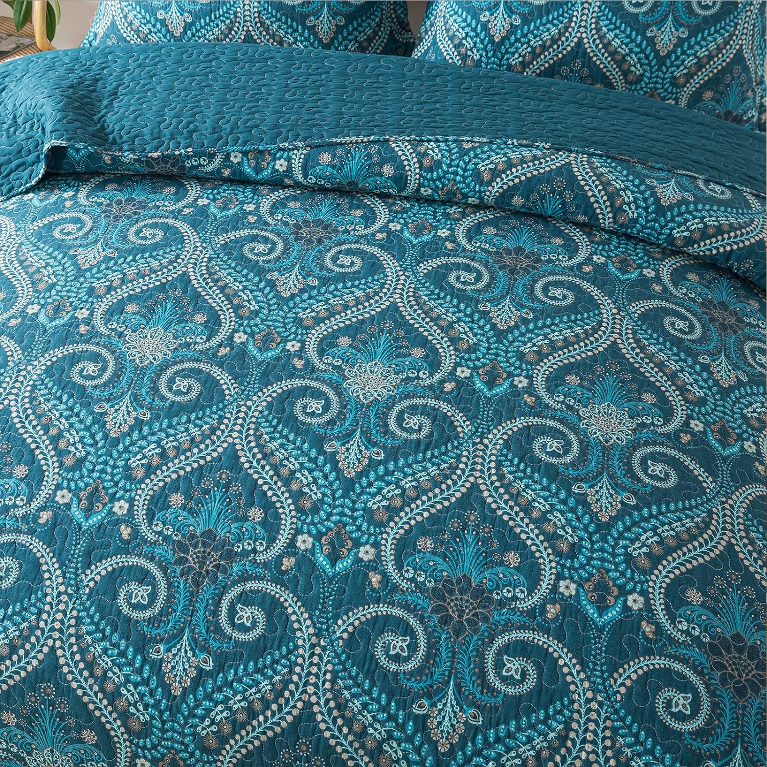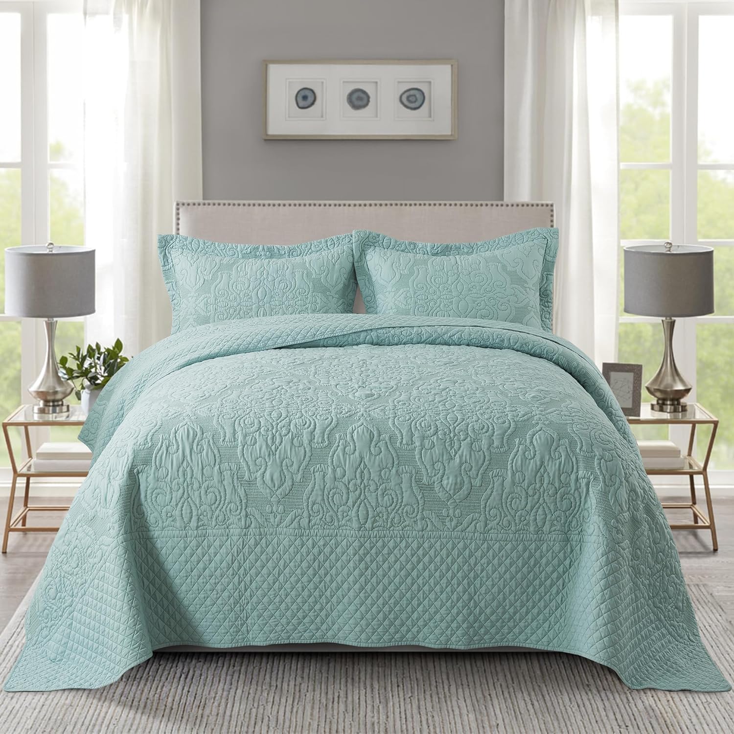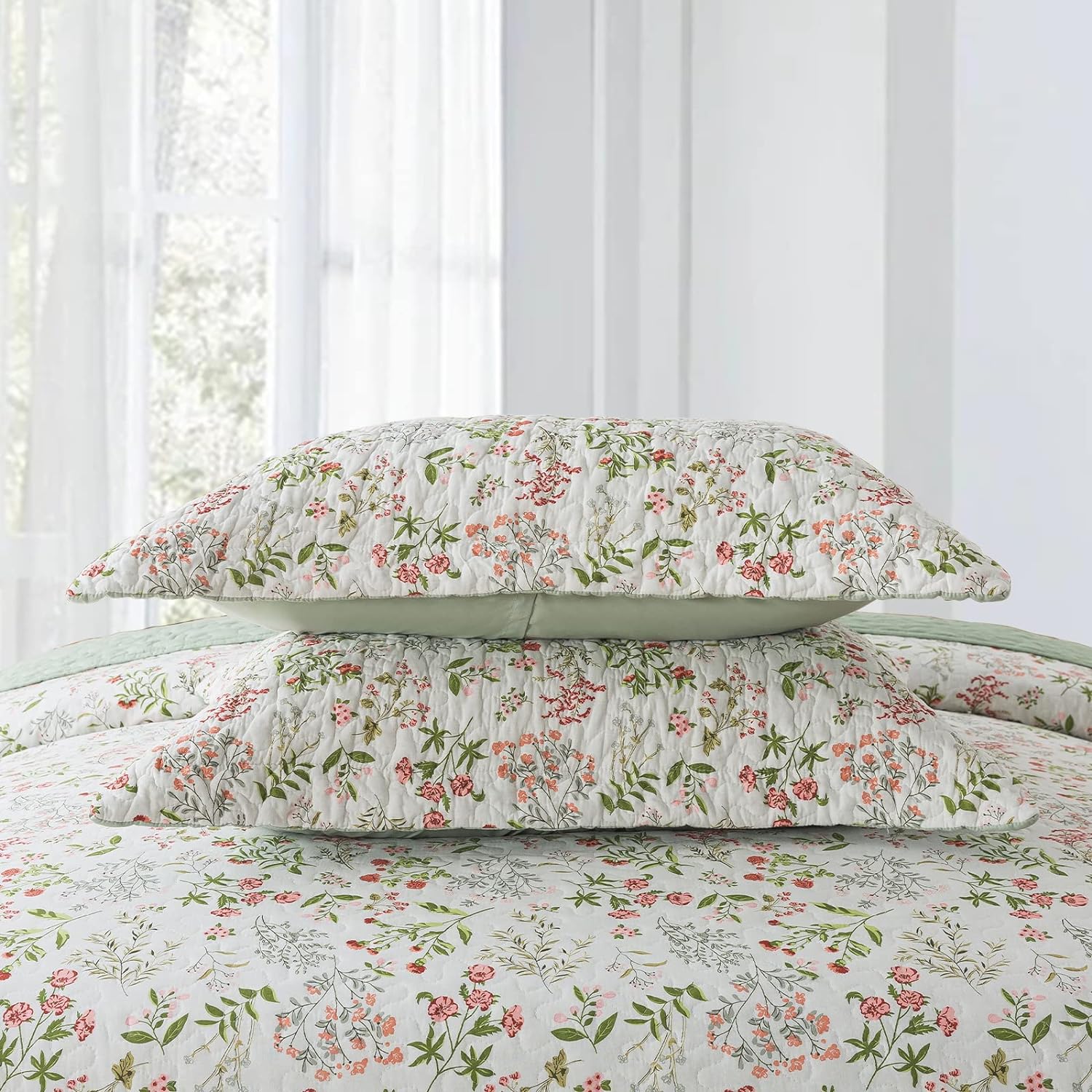 - Durable Bedding Quilt Set: a classical floral pattern on the whole bedspread and accented on the sides of the spread with a scalloped edges to complete the bed quilt