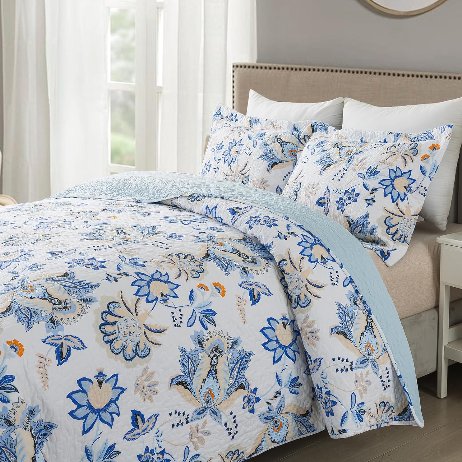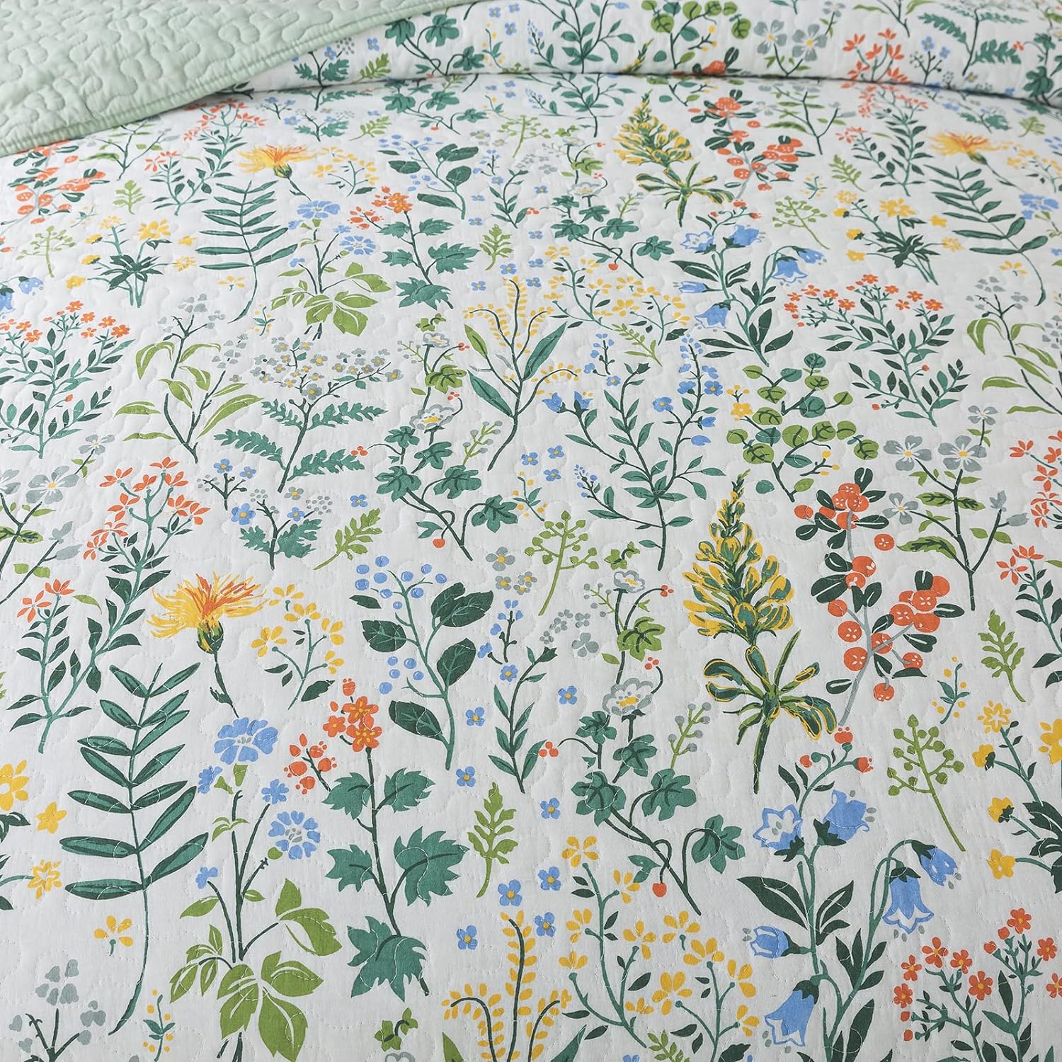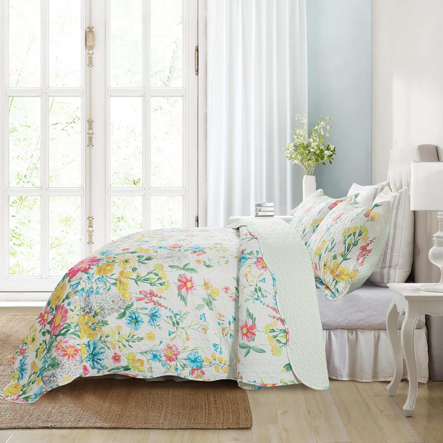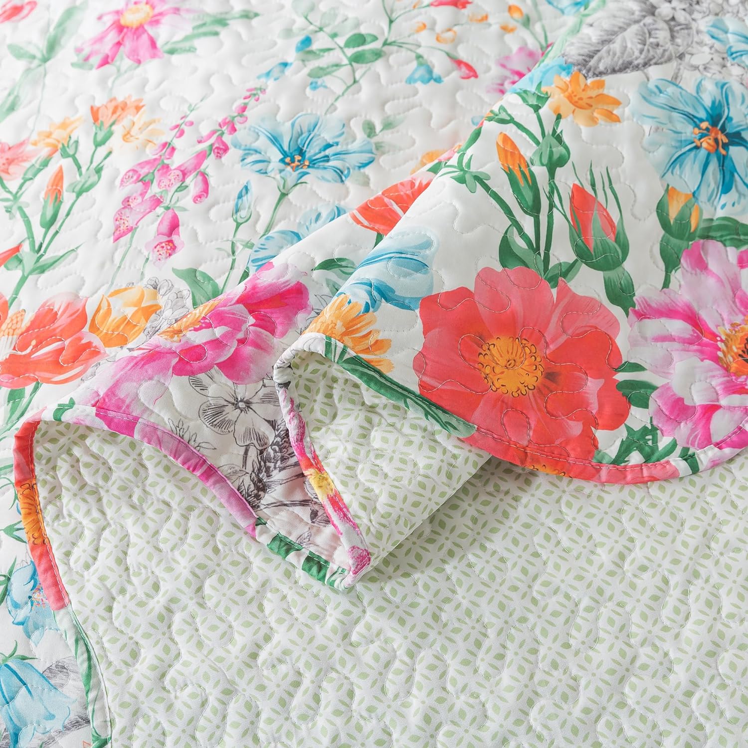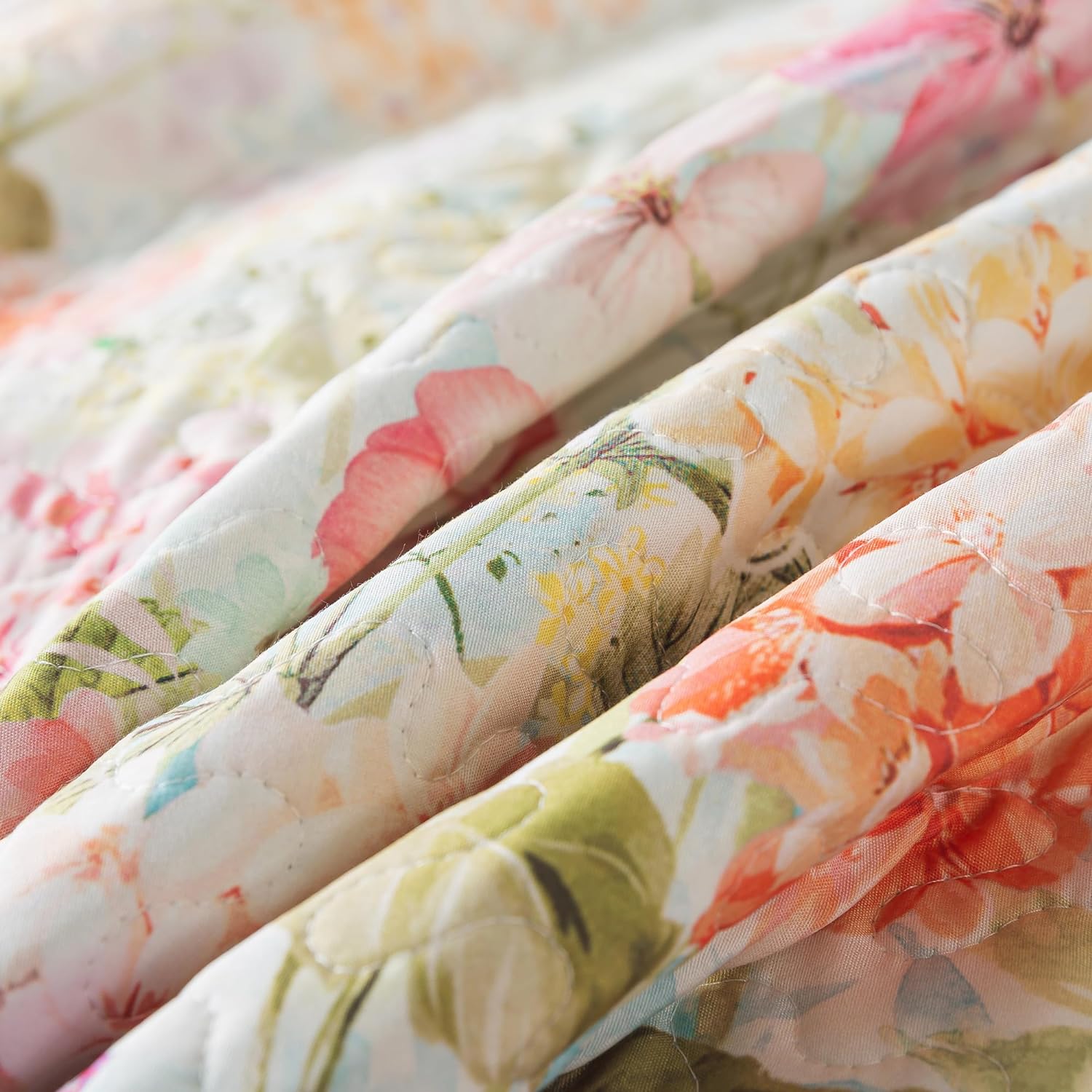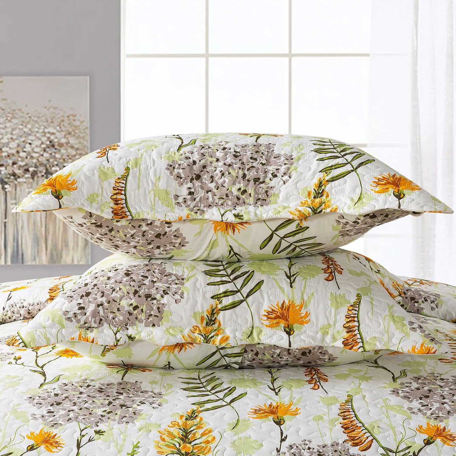 - Durable Bedding Quilt Set: a classical floral pattern on the whole bedspread and accented on the sides of the spread with a scalloped edges to complete the bed quilt