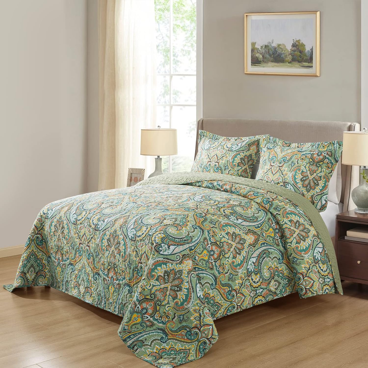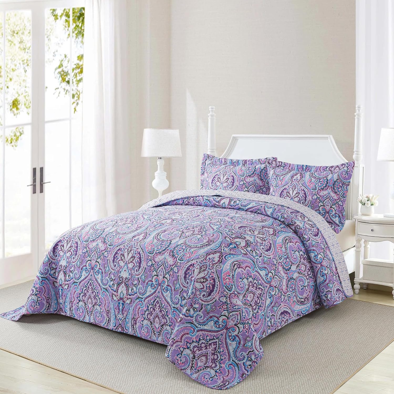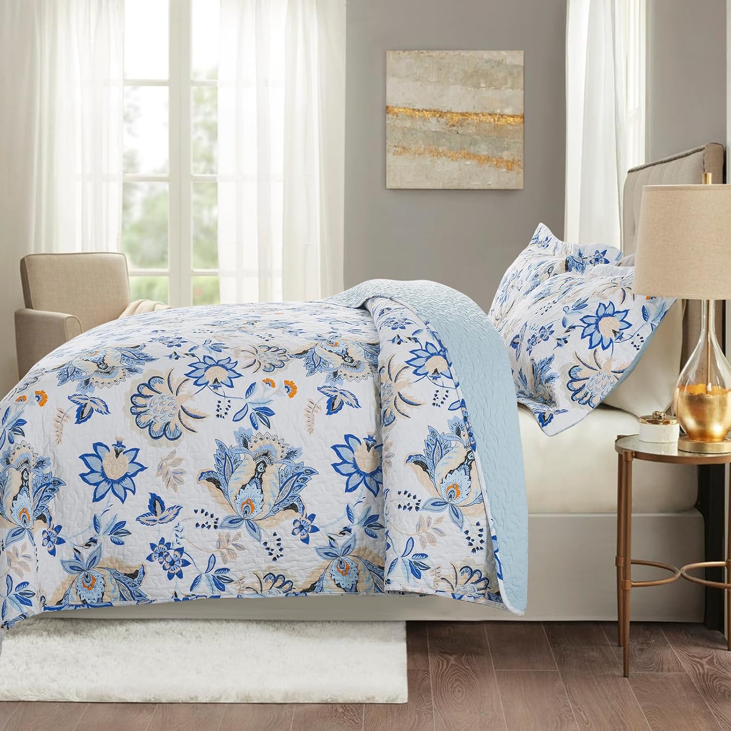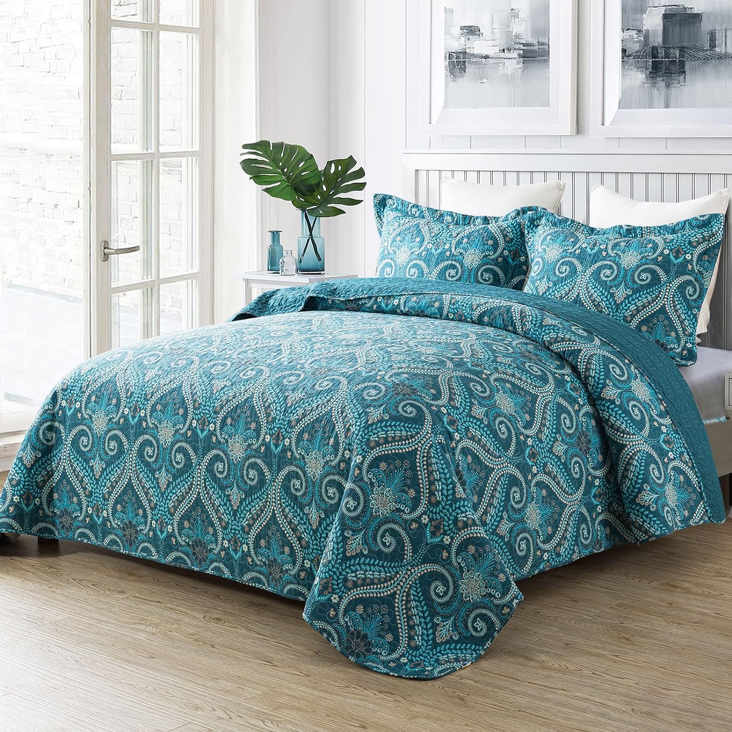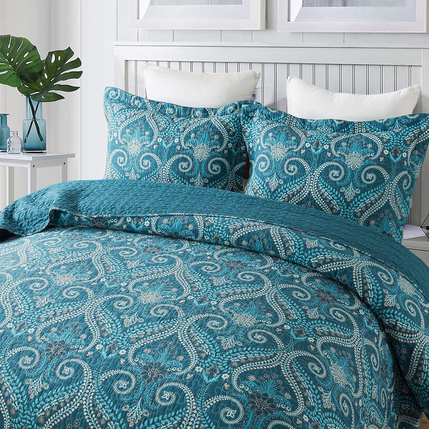 - Durable Bedding Quilt Set: a classical floral pattern on the whole bedspread and accented on the sides of the spread with a scalloped edges to complete the bed quilt