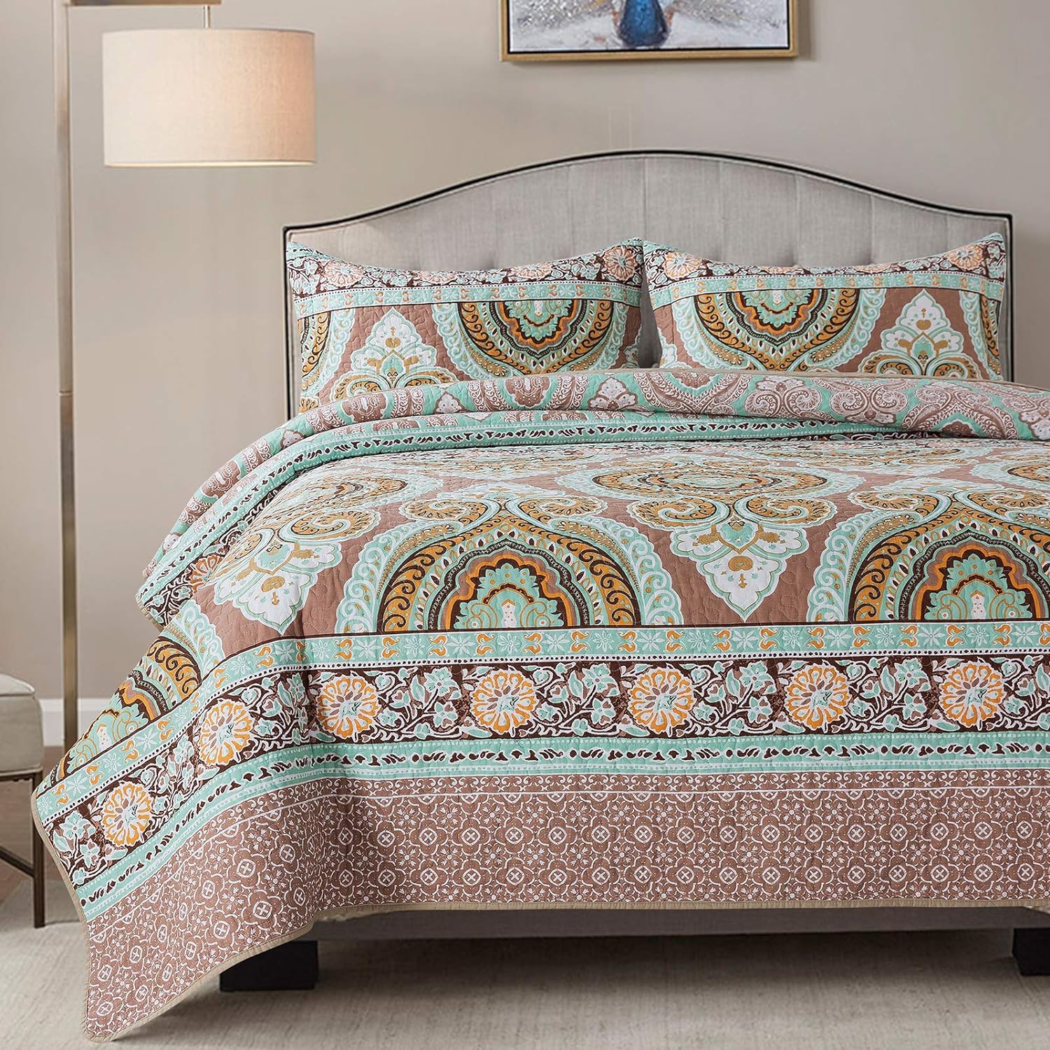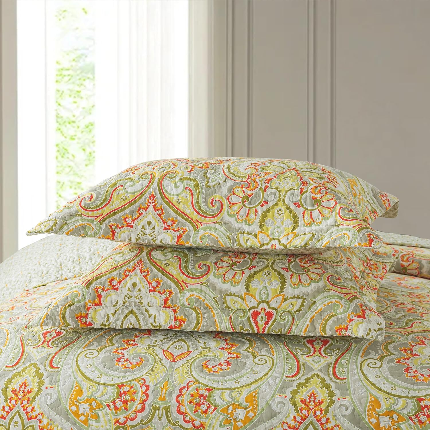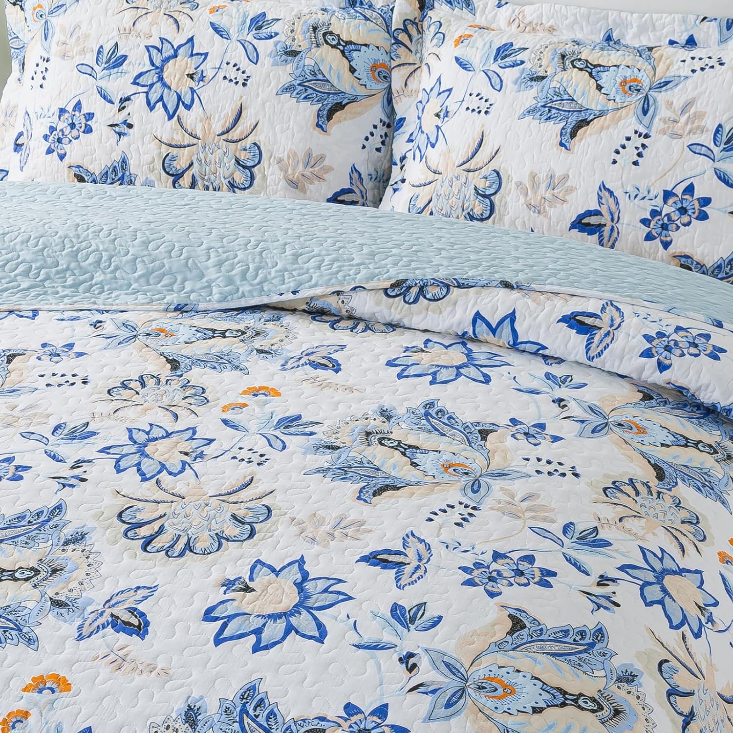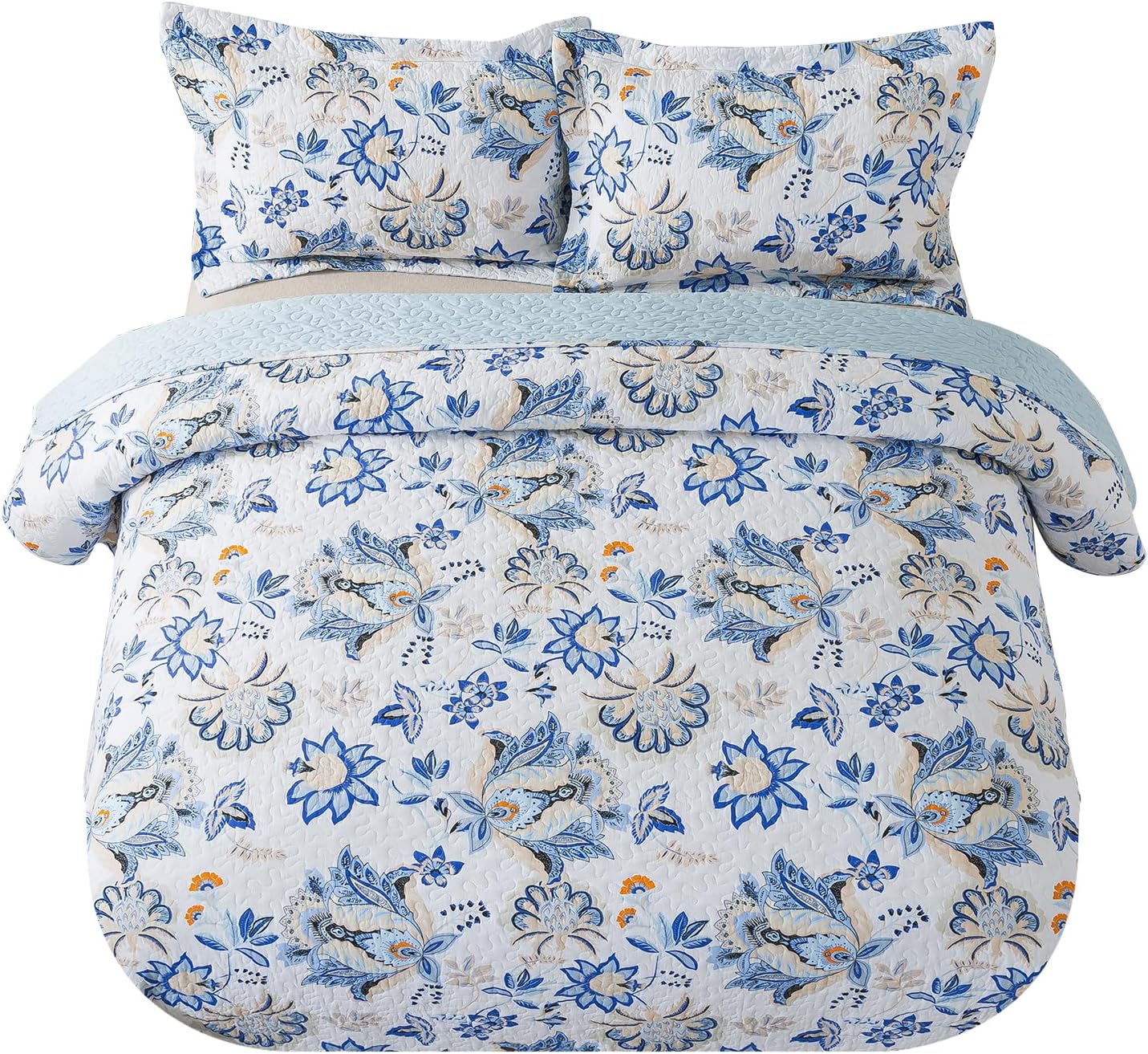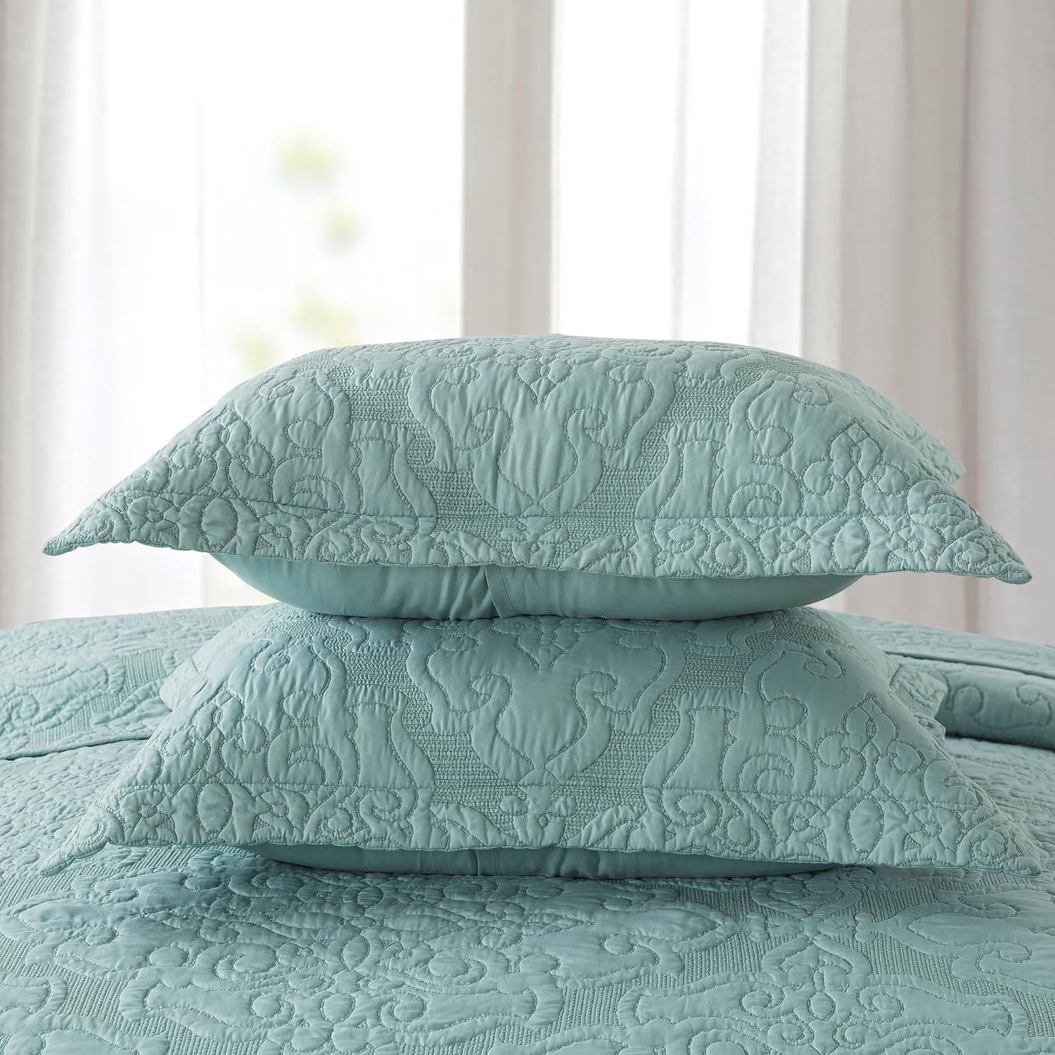 - Durable Bedding Quilt Set: a classical floral pattern on the whole bedspread and accented on the sides of the spread with a scalloped edges to complete the bed quilt