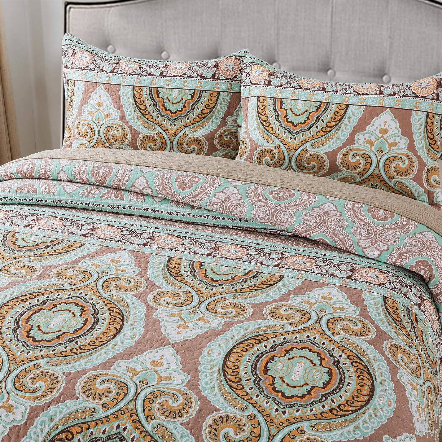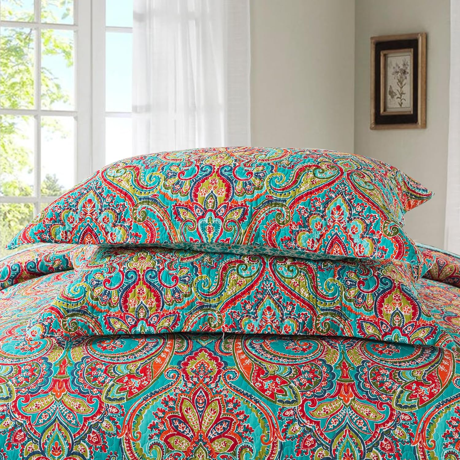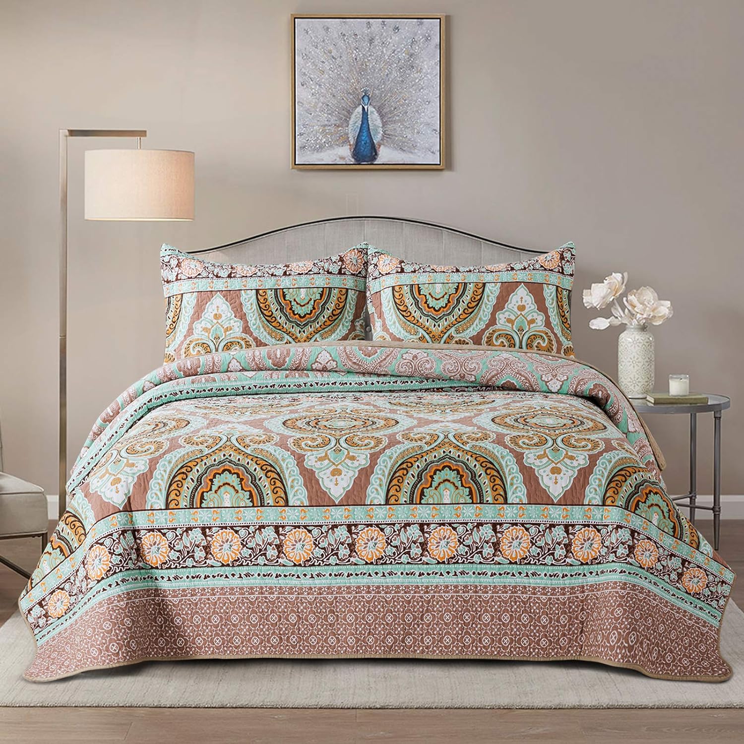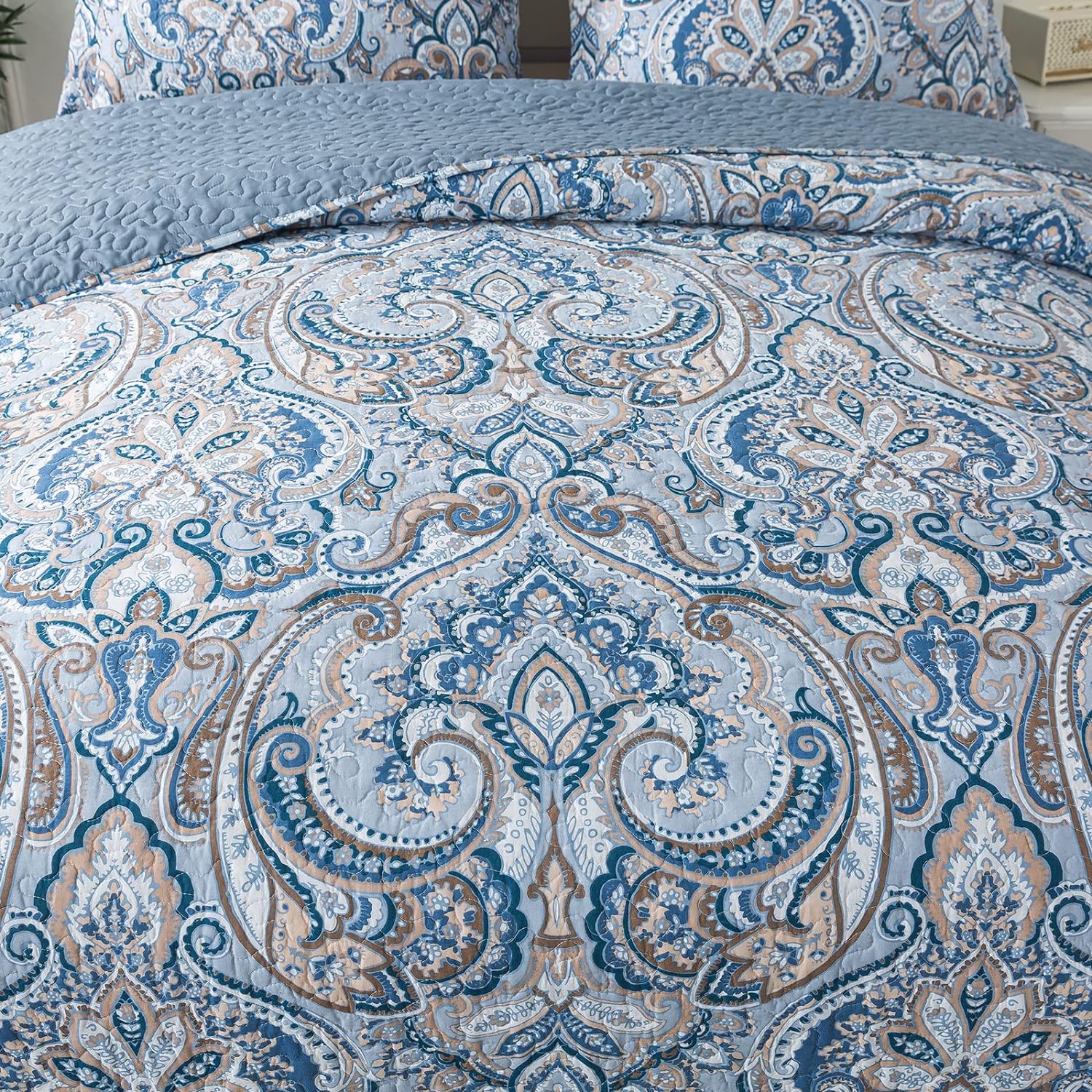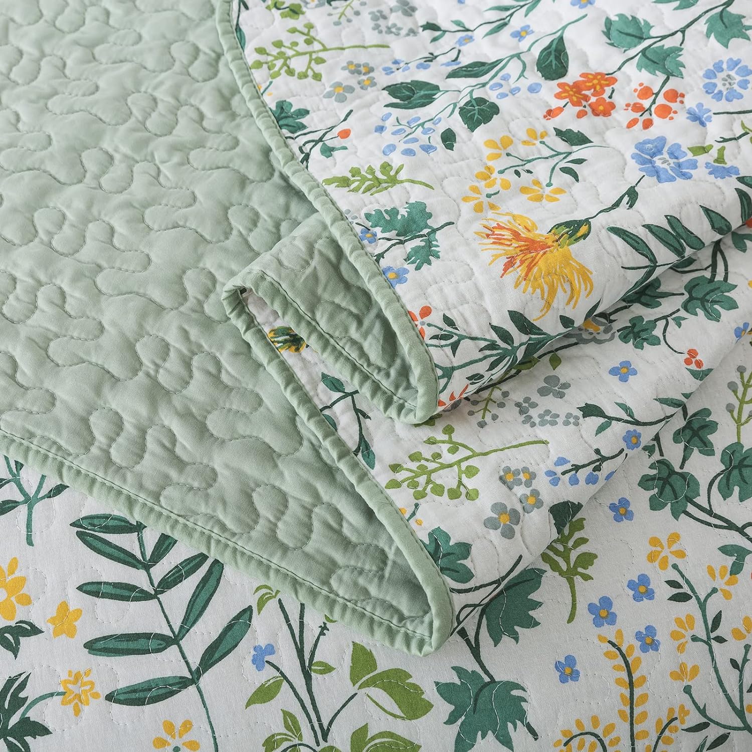 - Durable Bedding Quilt Set: a classical floral pattern on the whole bedspread and accented on the sides of the spread with a scalloped edges to complete the bed quilt