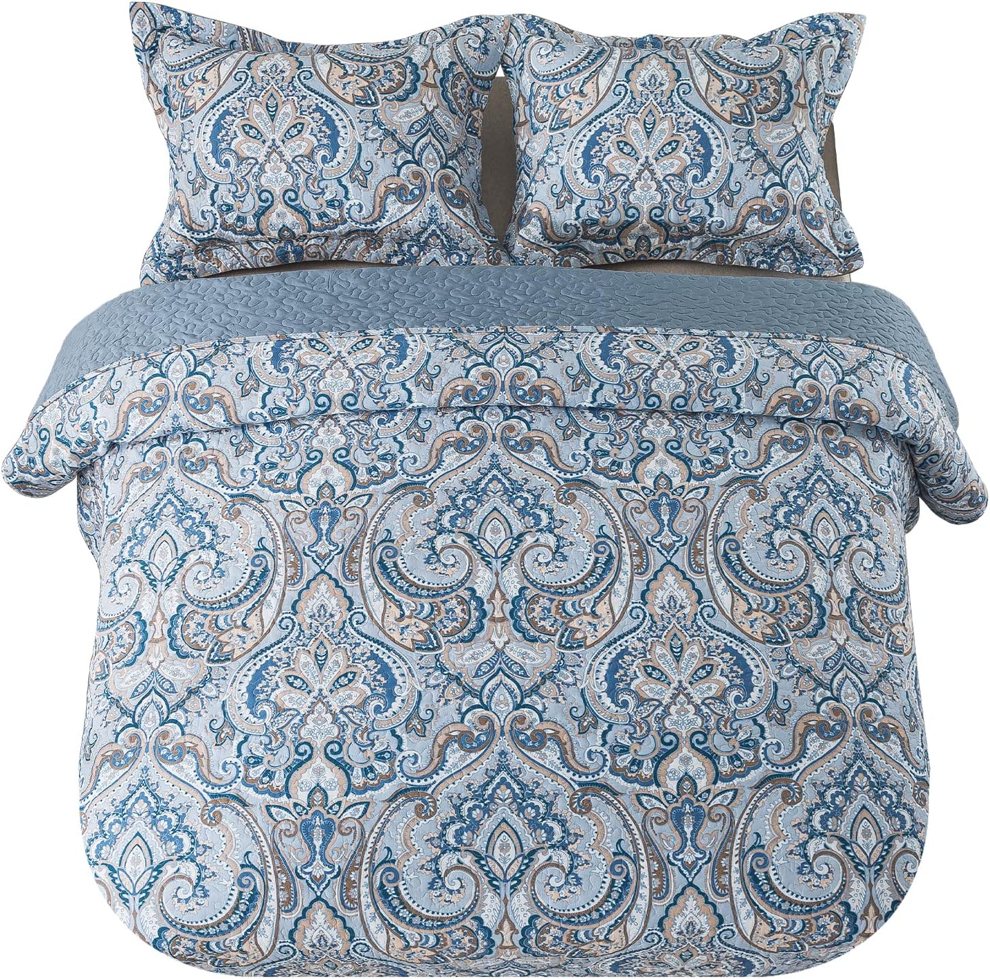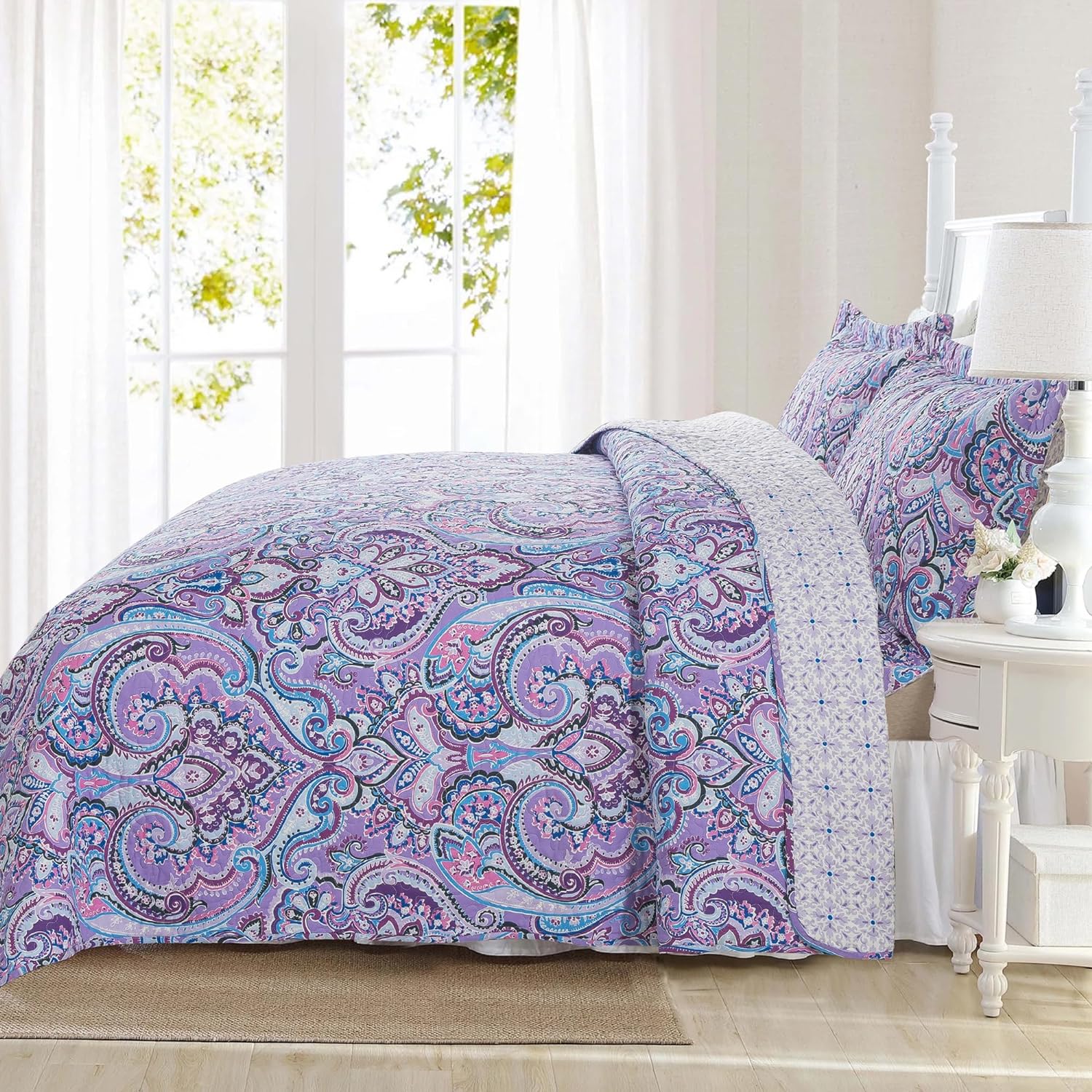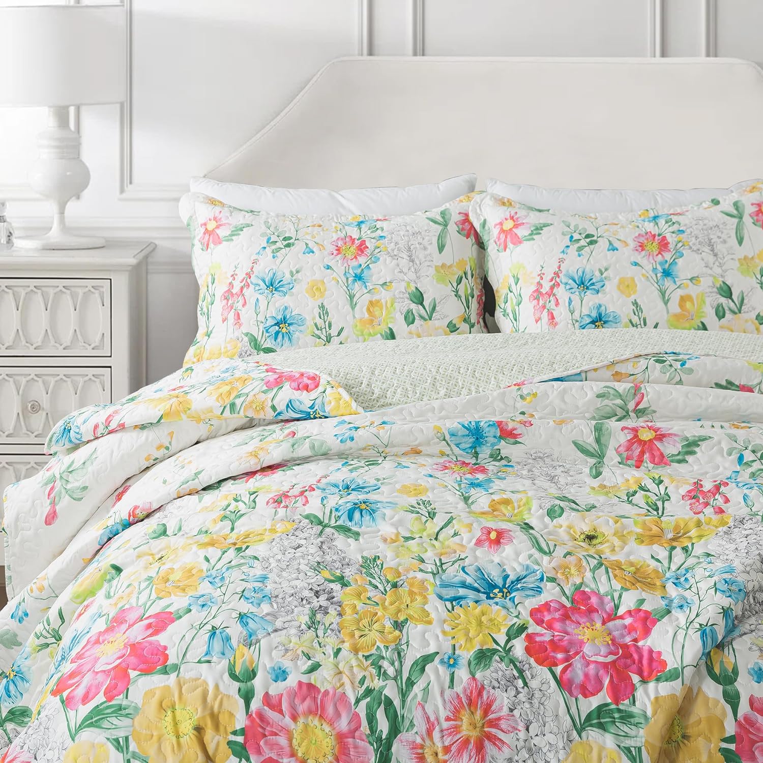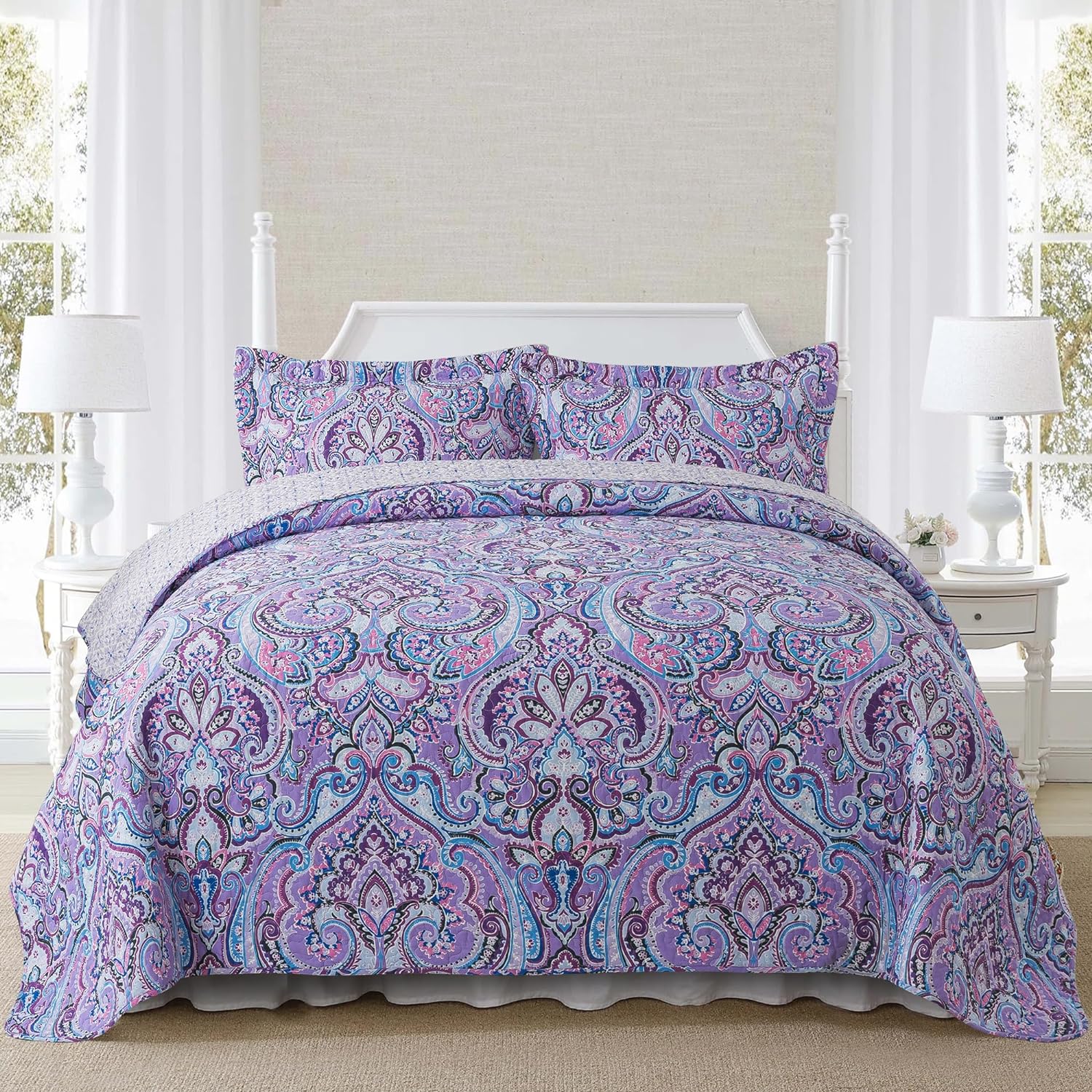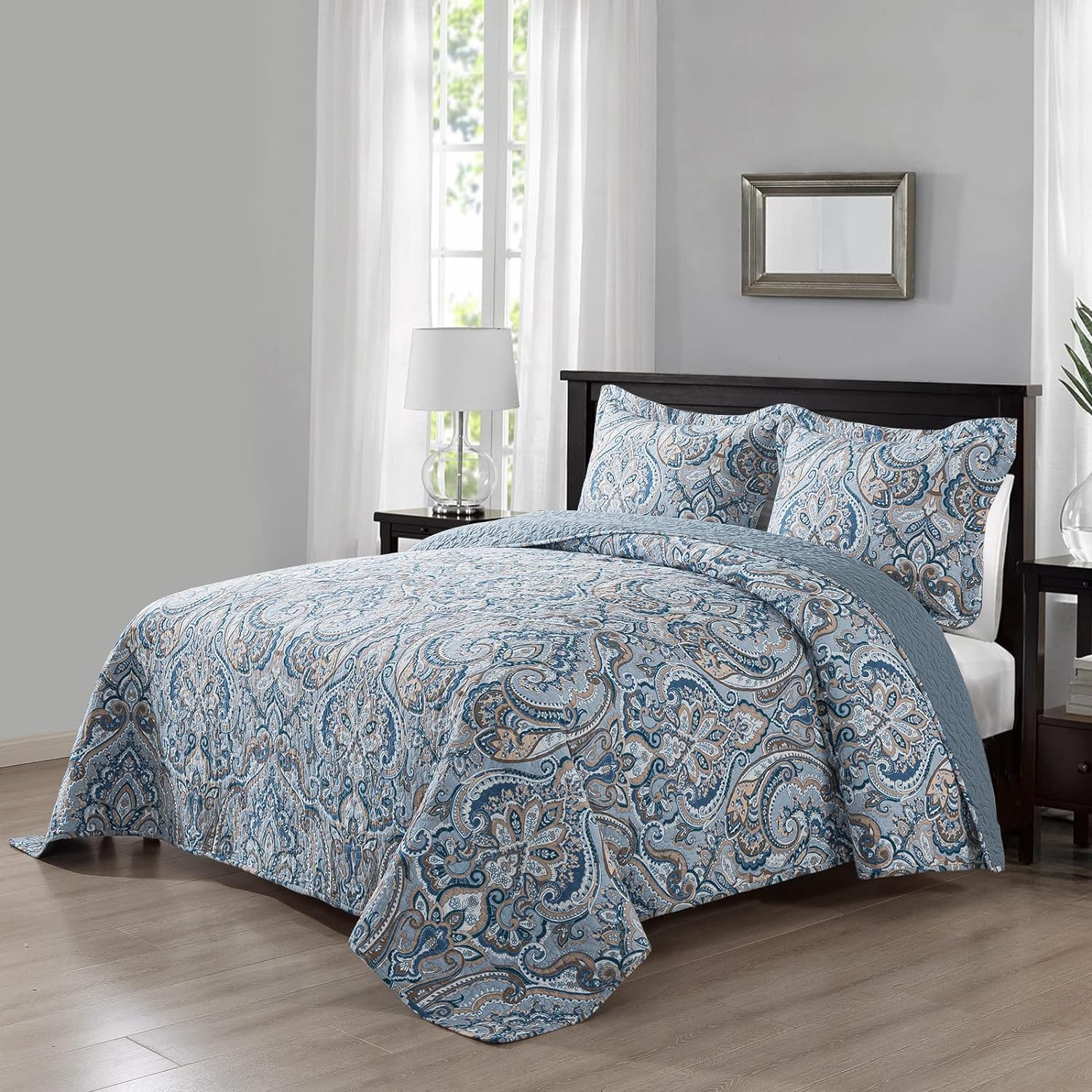 - Durable Bedding Quilt Set: a classical floral pattern on the whole bedspread and accented on the sides of the spread with a scalloped edges to complete the bed quilt