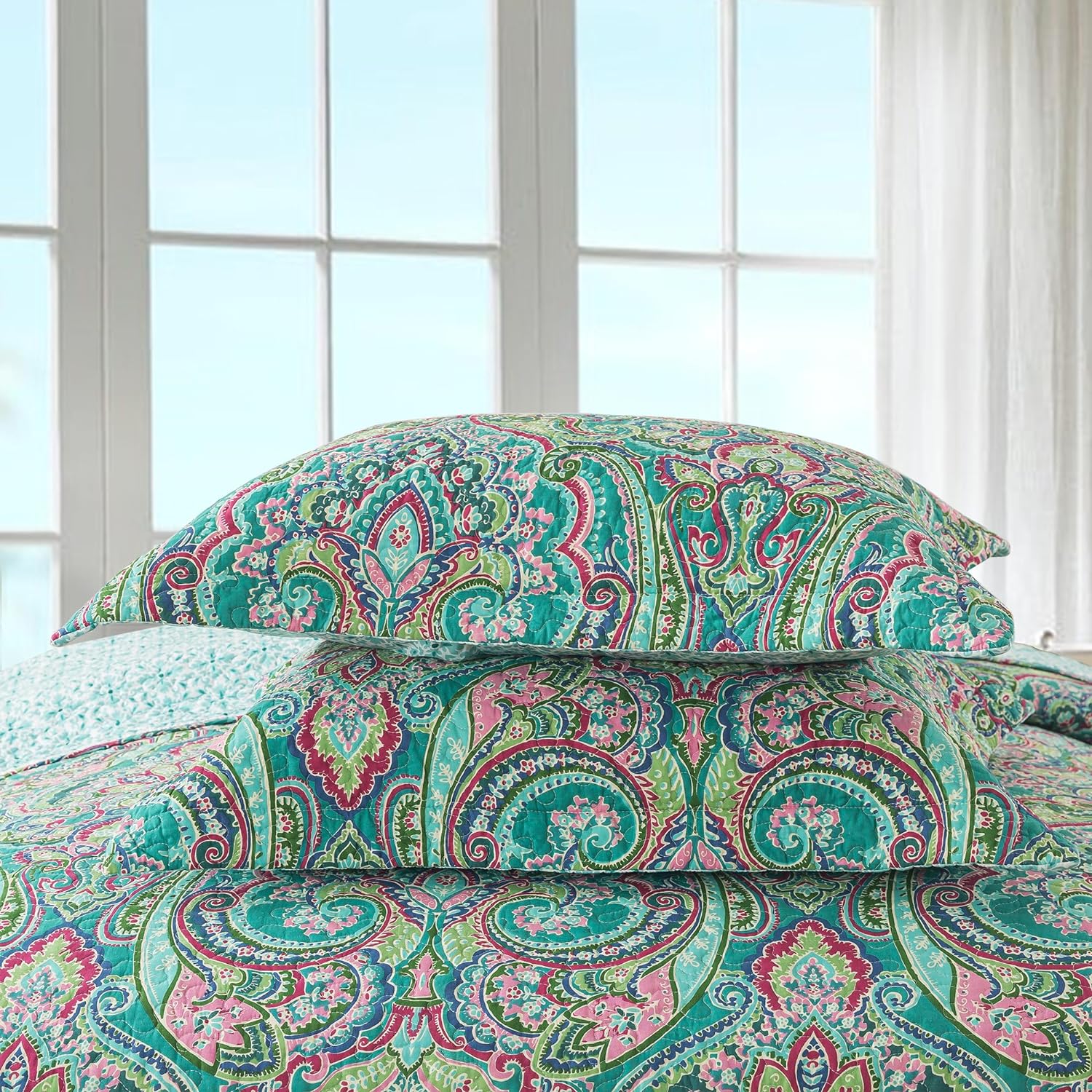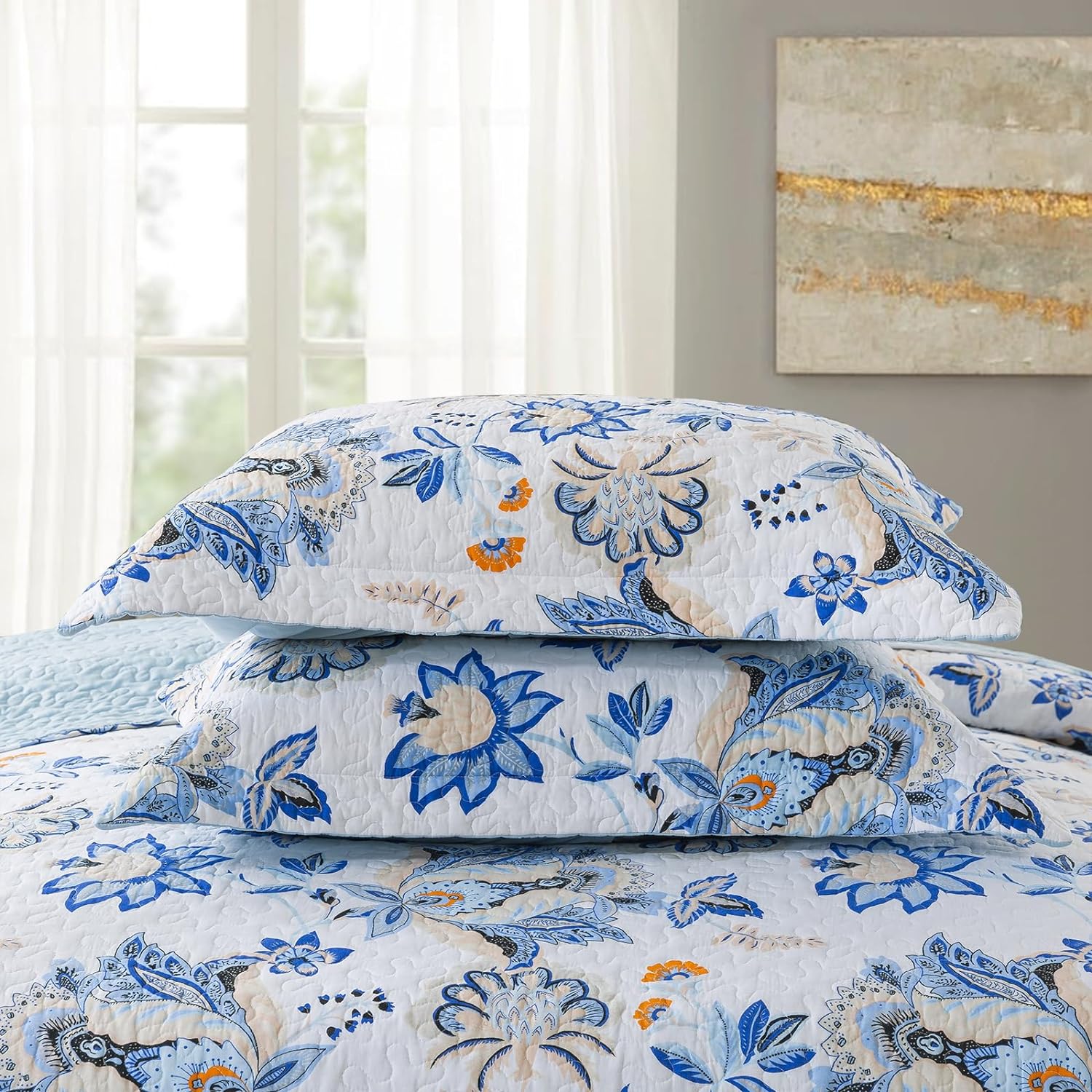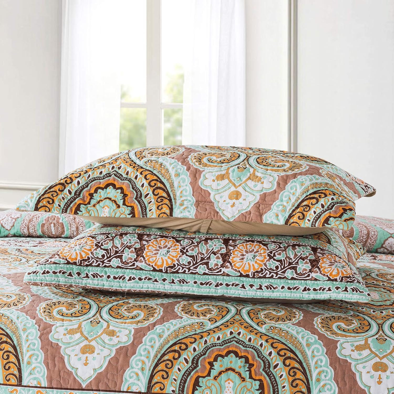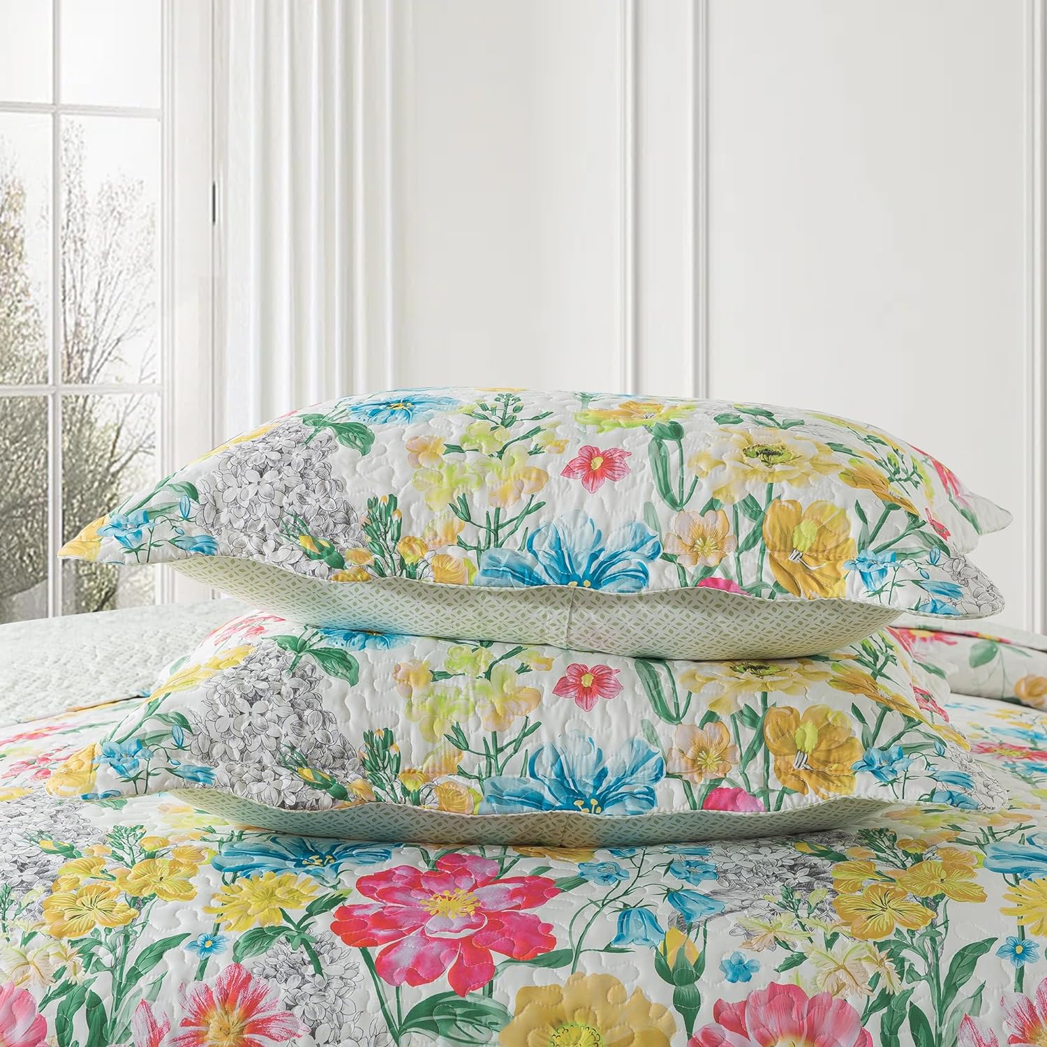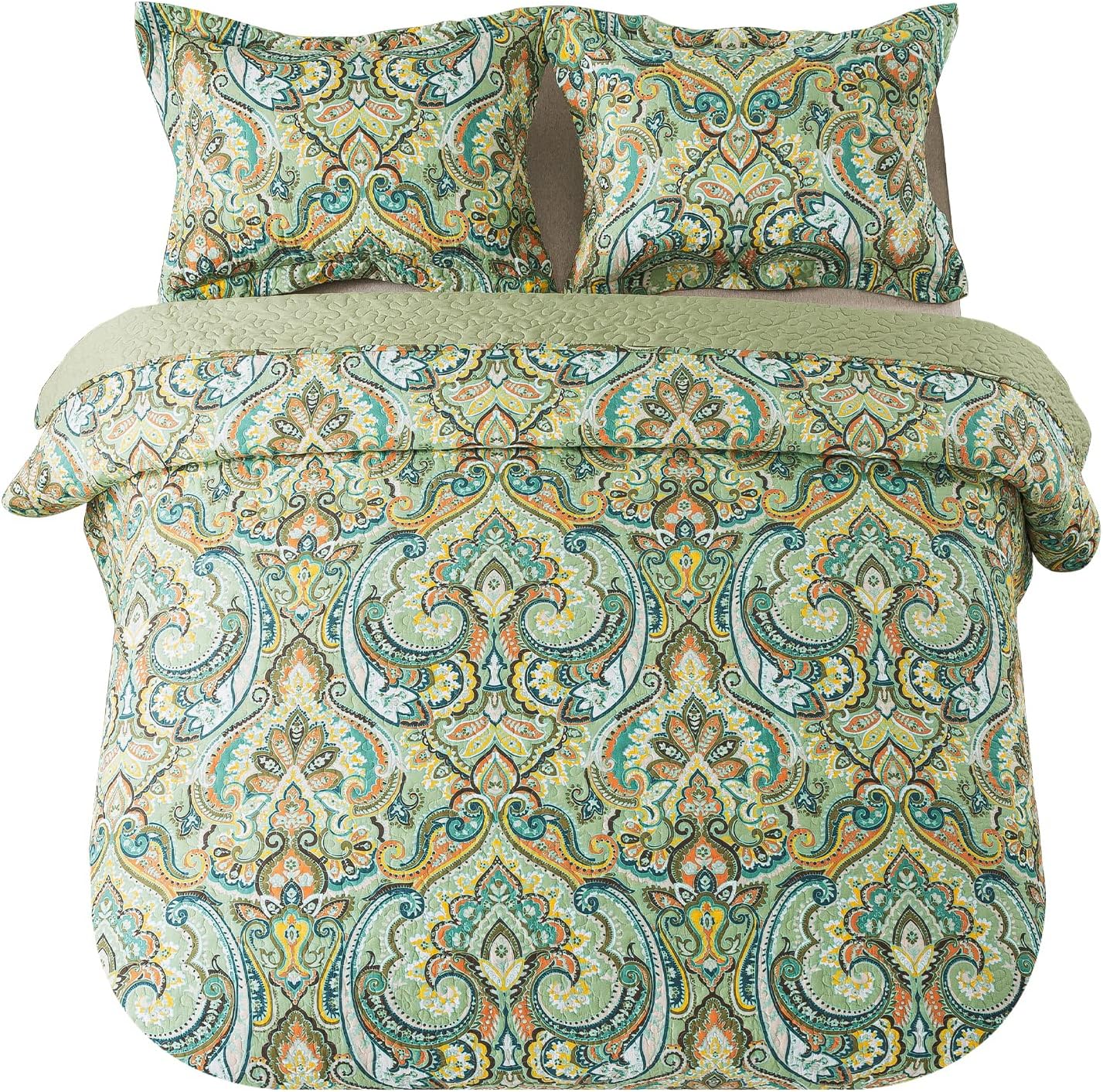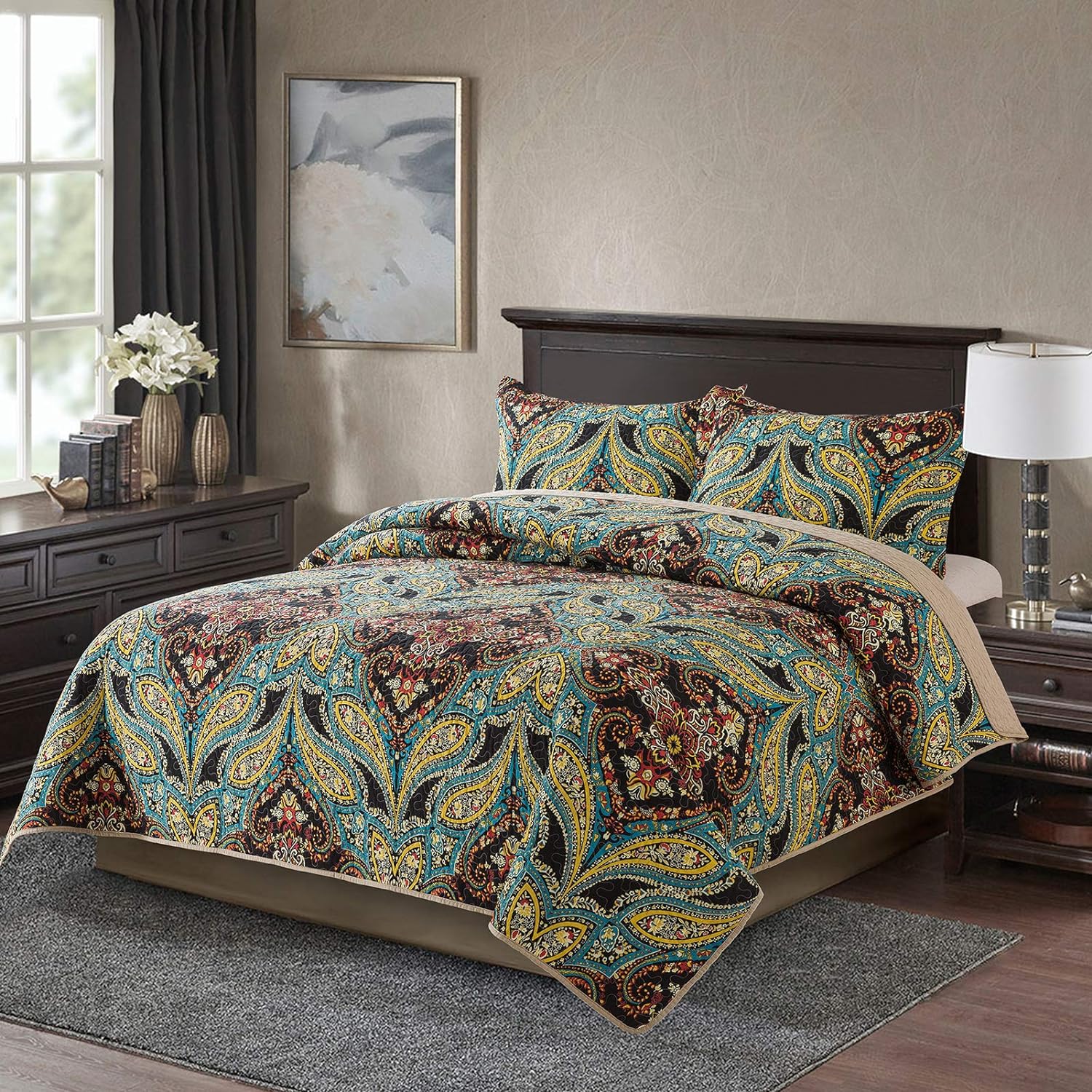 - Durable Bedding Quilt Set: a classical floral pattern on the whole bedspread and accented on the sides of the spread with a scalloped edges to complete the bed quilt