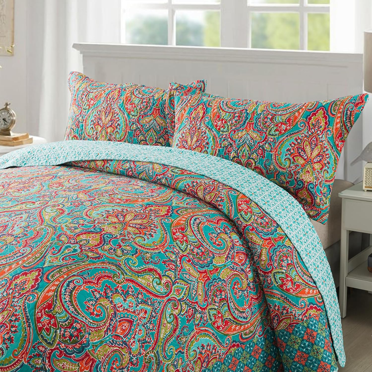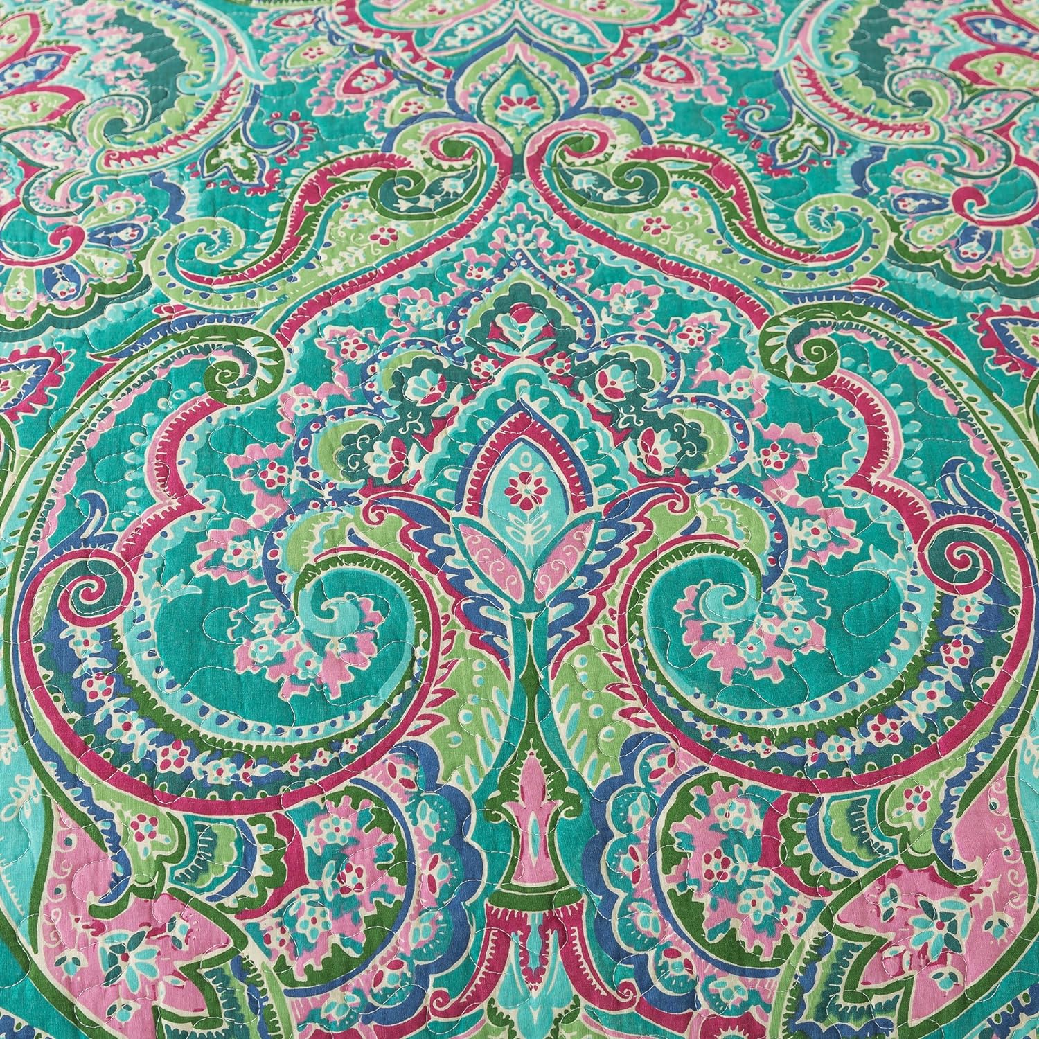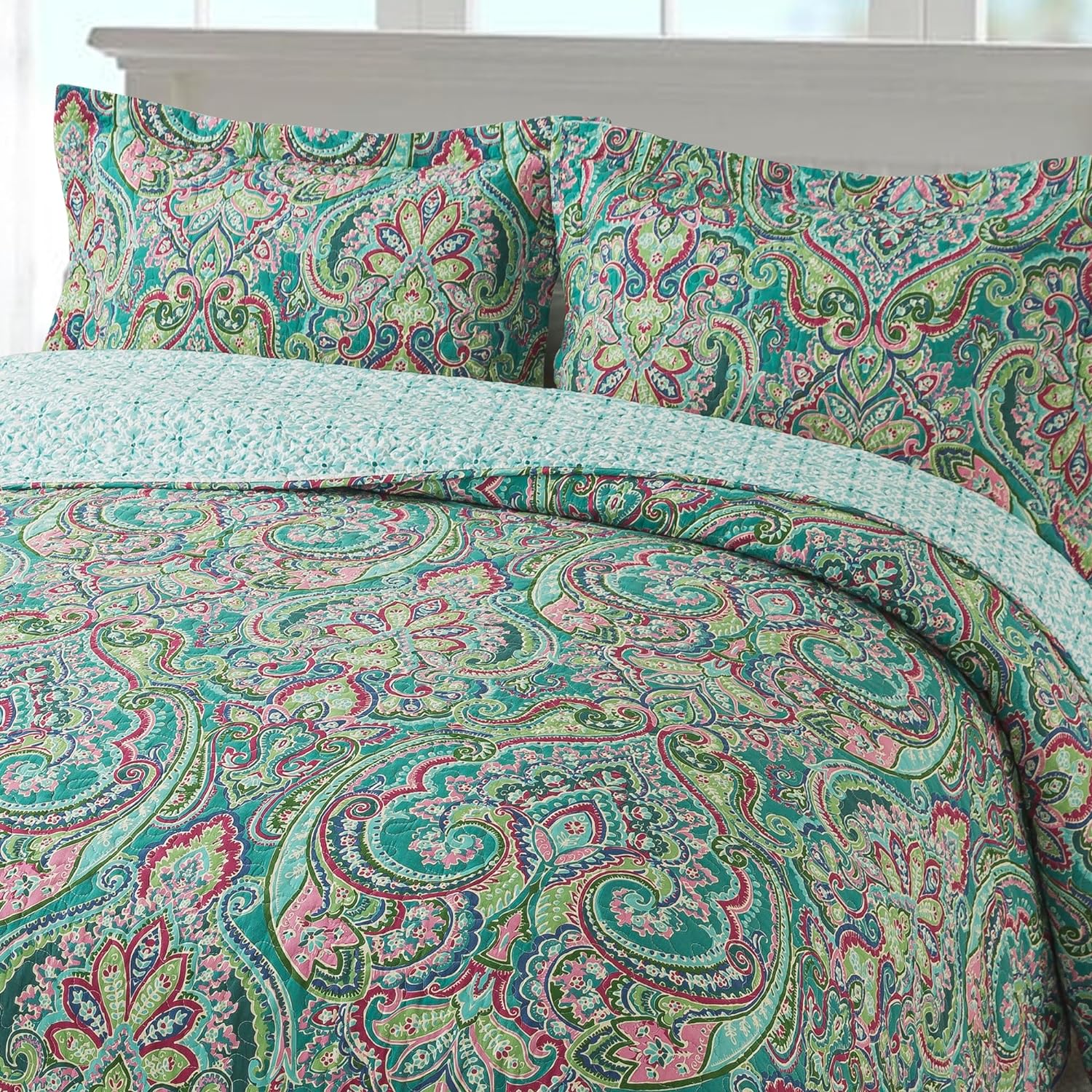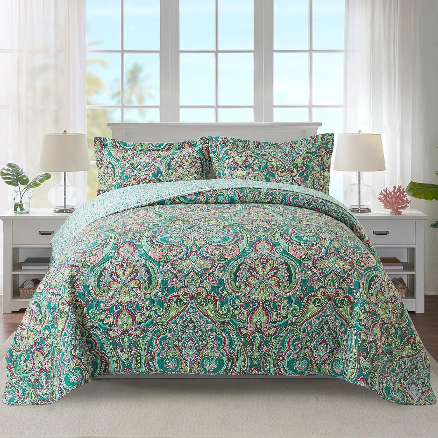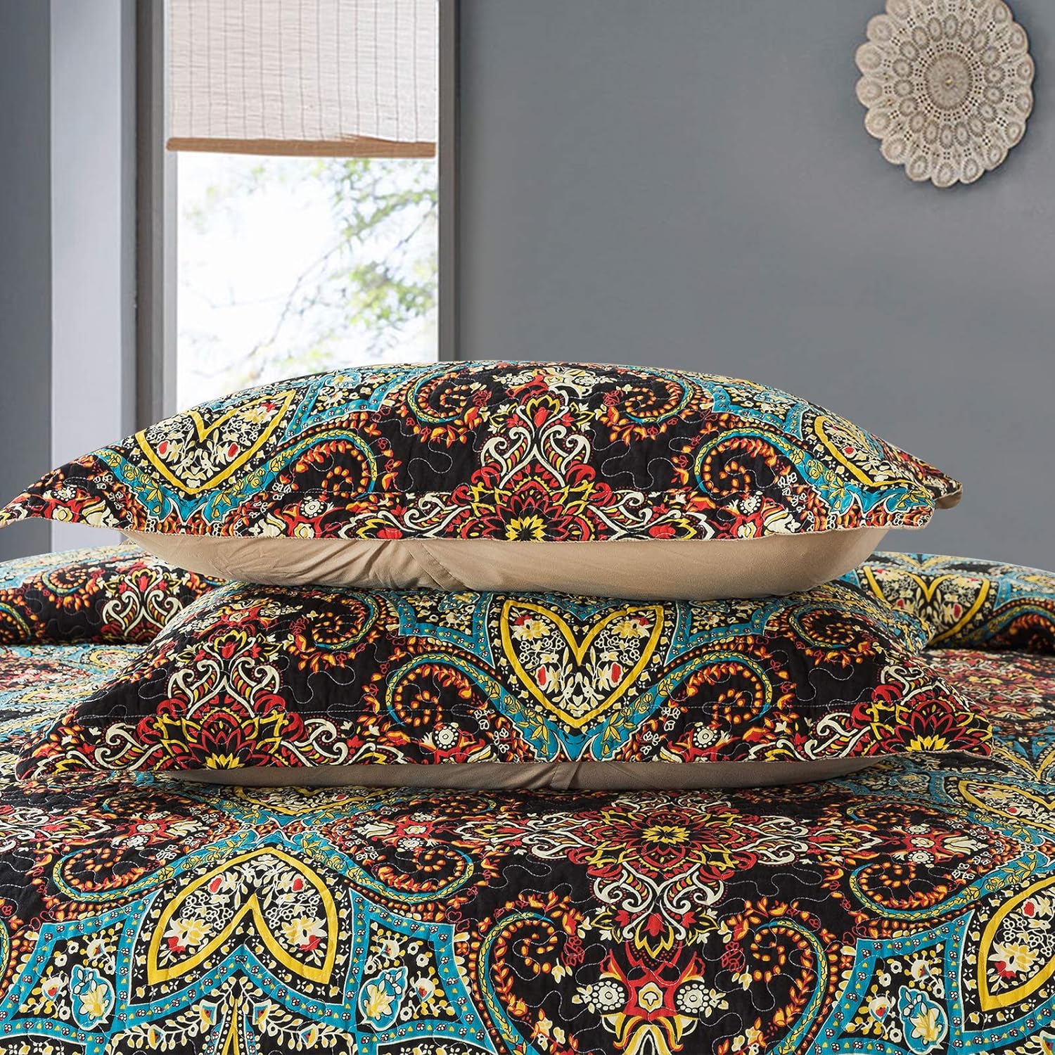 - Durable Bedding Quilt Set: a classical floral pattern on the whole bedspread and accented on the sides of the spread with a scalloped edges to complete the bed quilt