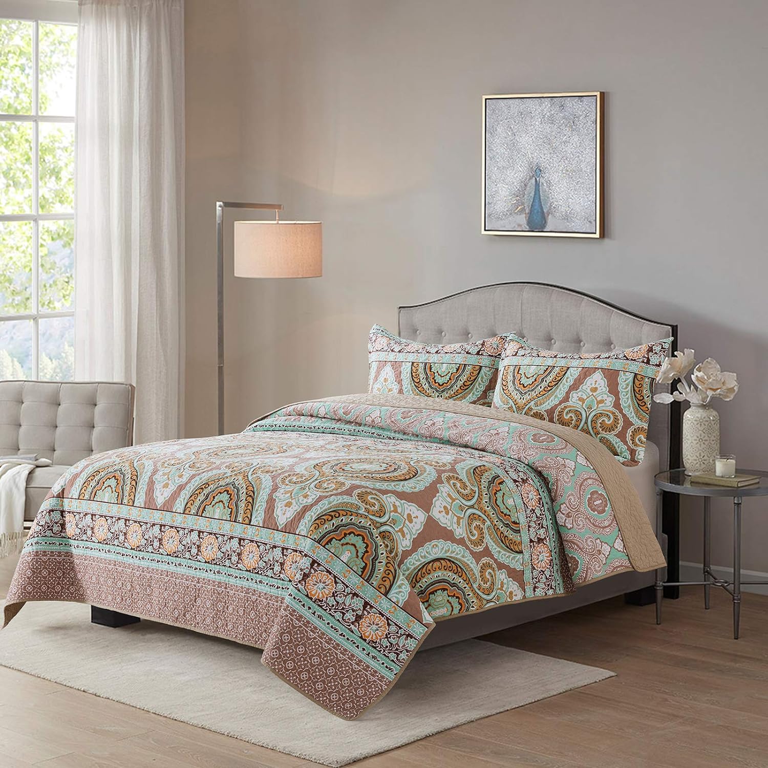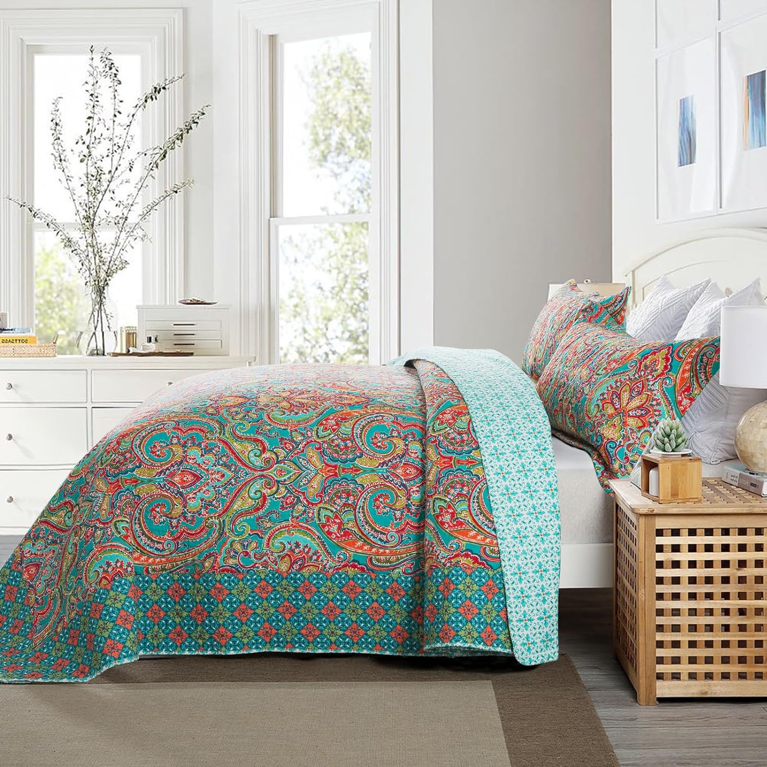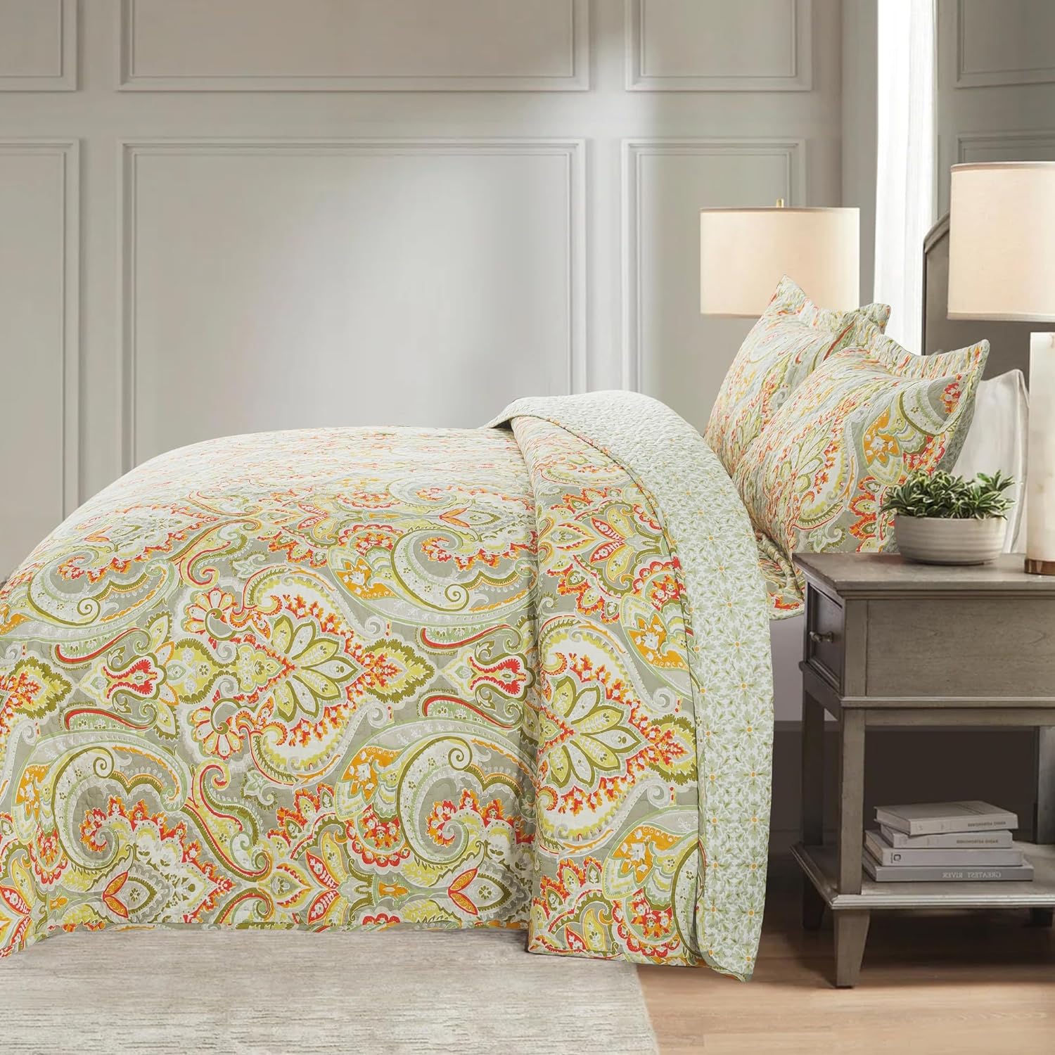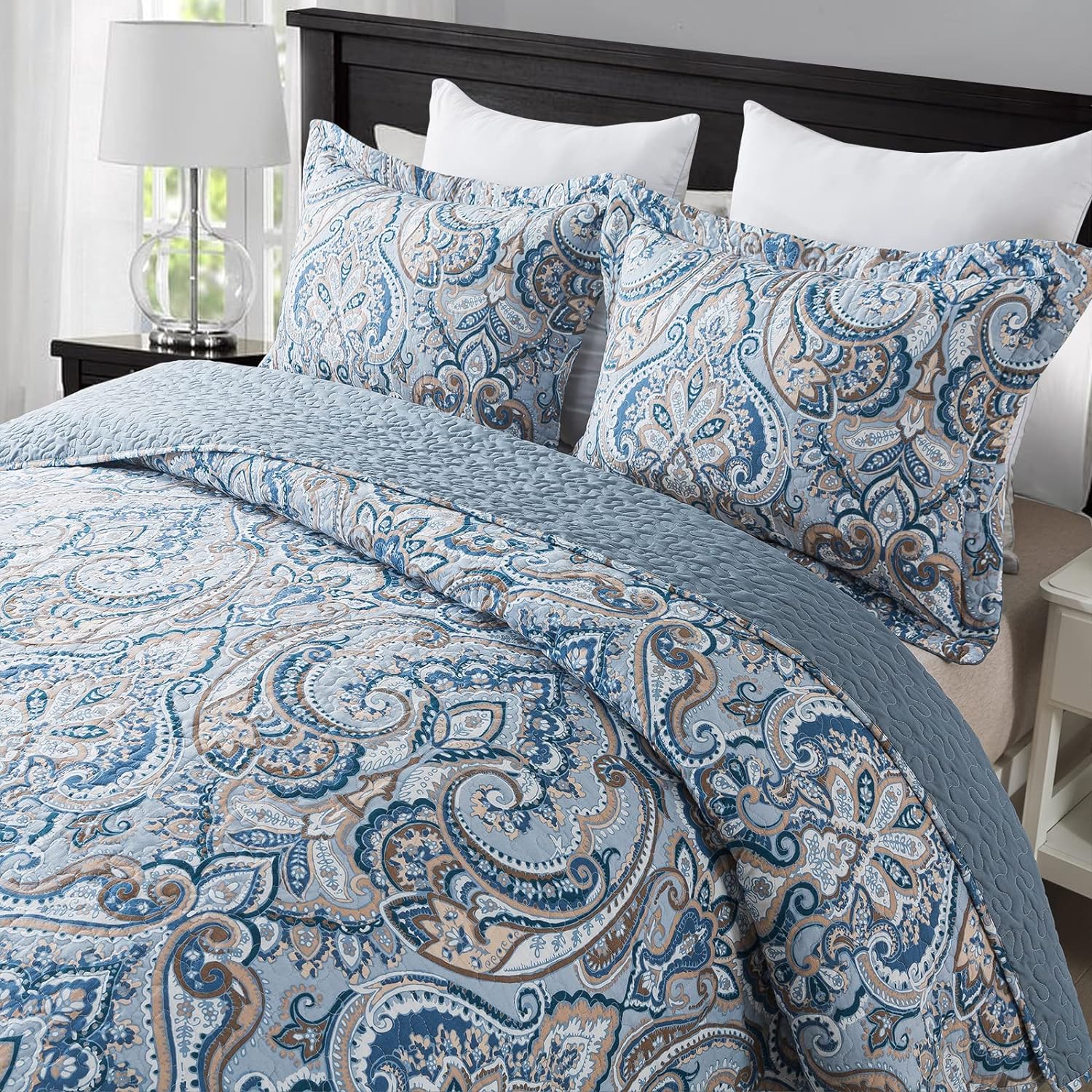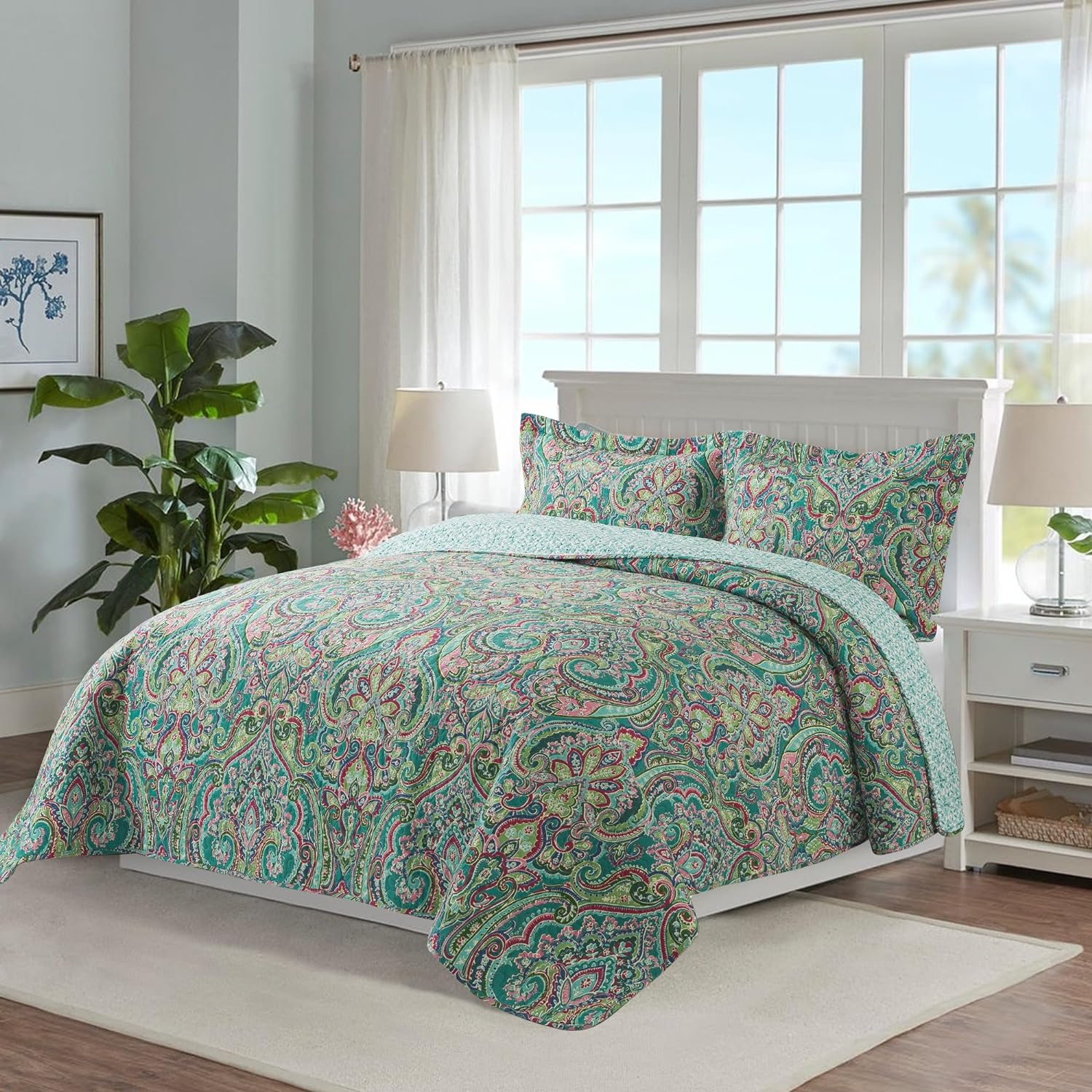 - Durable Bedding Quilt Set: a classical floral pattern on the whole bedspread and accented on the sides of the spread with a scalloped edges to complete the bed quilt